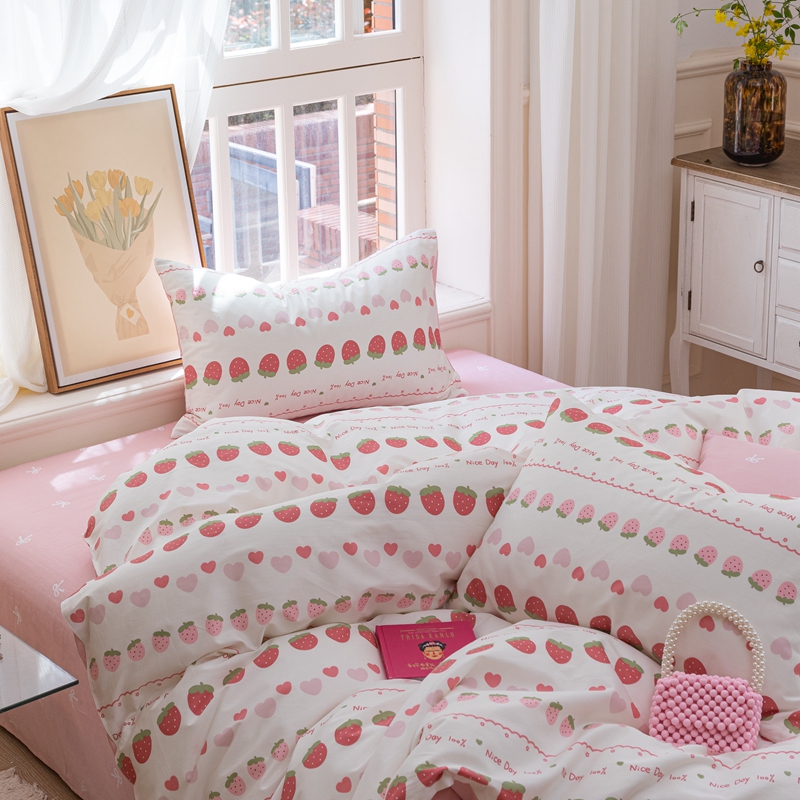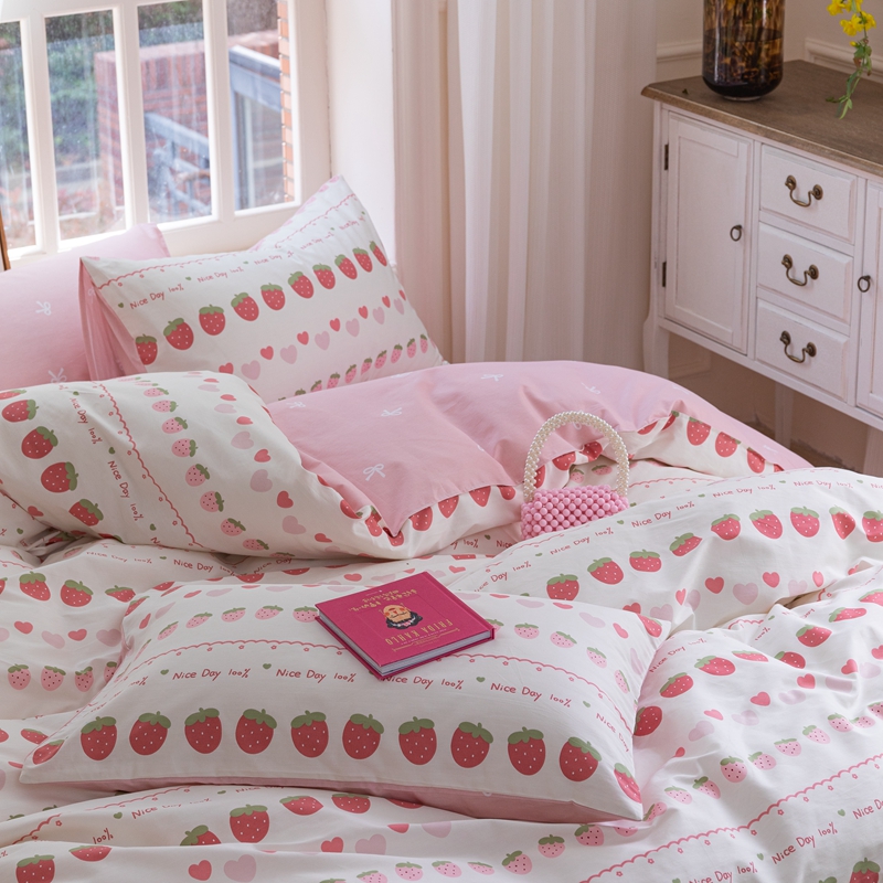 (总)时年家纺 2021新款13372全棉小可爱四件套,毕加索,草莓仙子,风花旅,花果