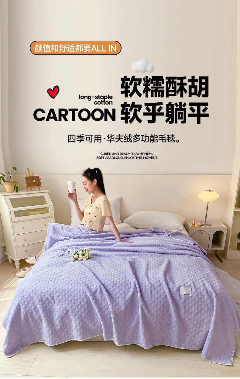 商品名称:艾佳软糯撸猫毯夏被毯四季空调毯华芙绒毛毯子双层复合毯 香芋紫