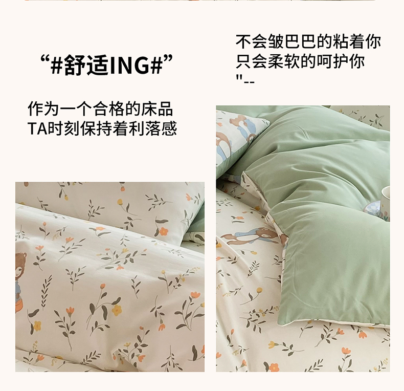 当前位置: 91家纺网 > 商品网购 > 床品套件 > 四件套 > 水洗棉四件套 > 妖妖家纺 2024新款超柔软糯水洗云朵棉印花四季款四件套 小熊乐园