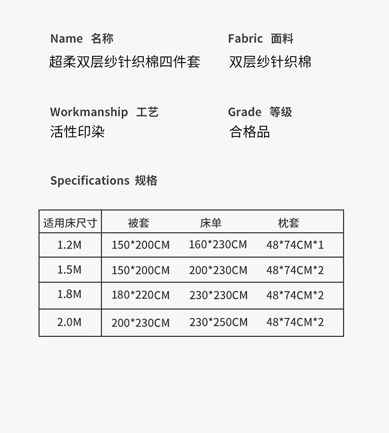 1.5m床笠款四件套(被套200*230cm) | ¥48.00 |