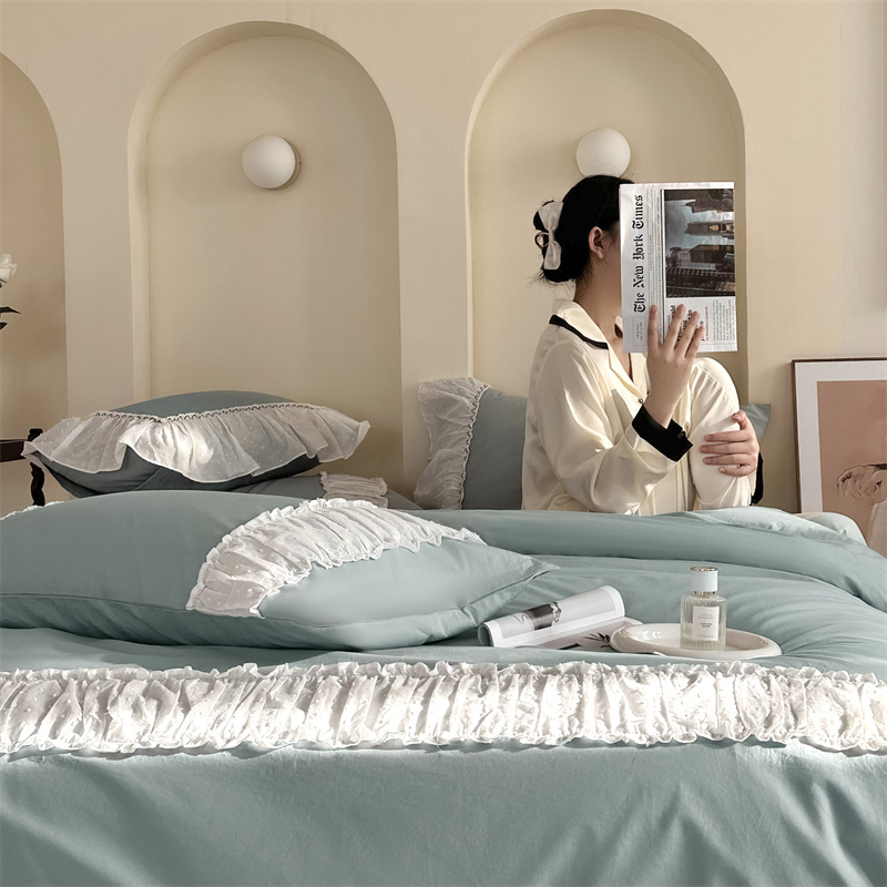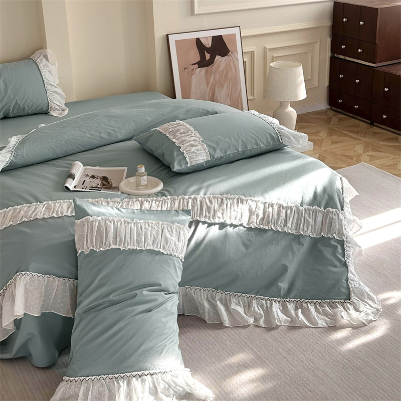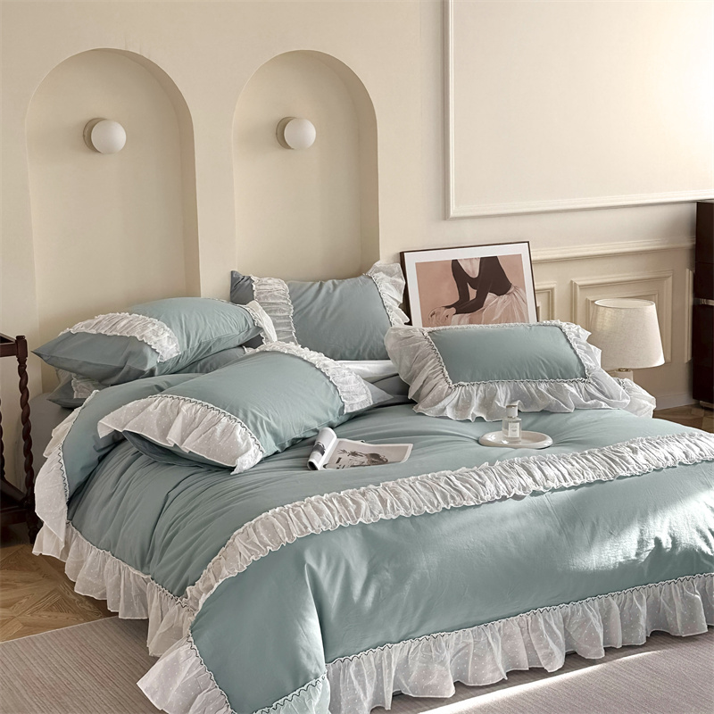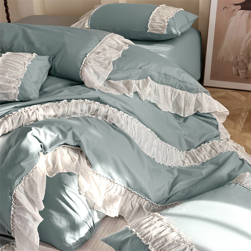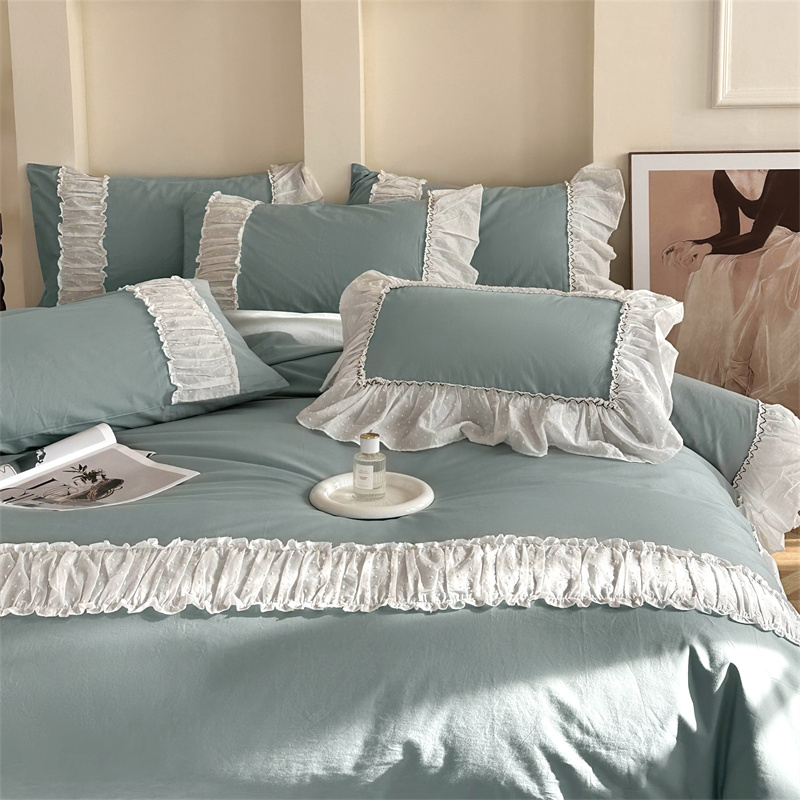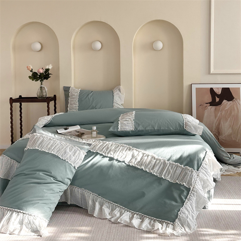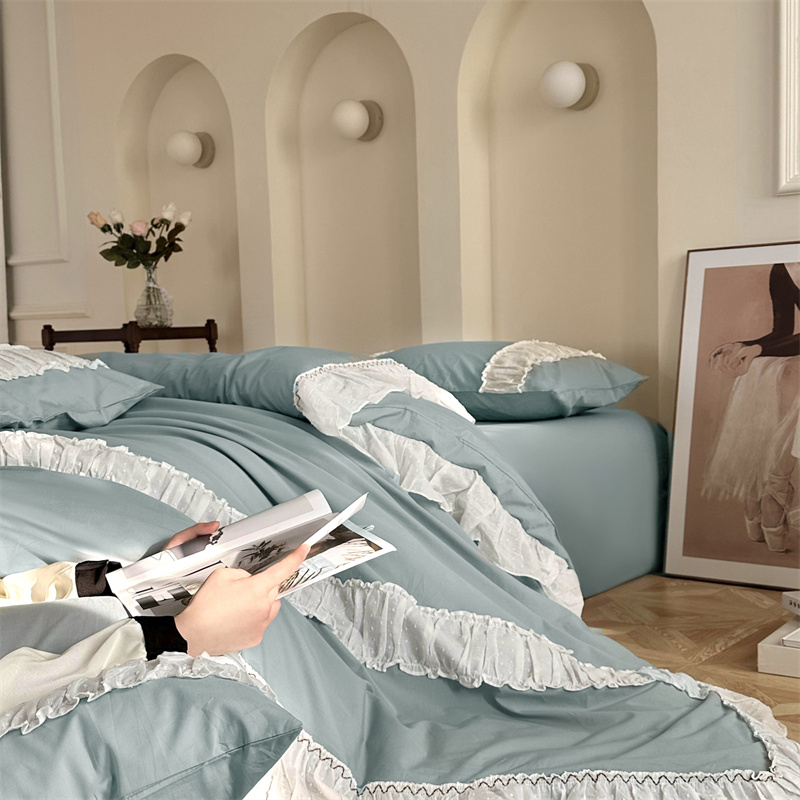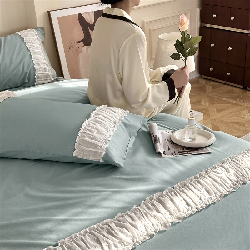 朗莎家纺 2023新款全棉水洗棉法式四件套 露华浓-兰