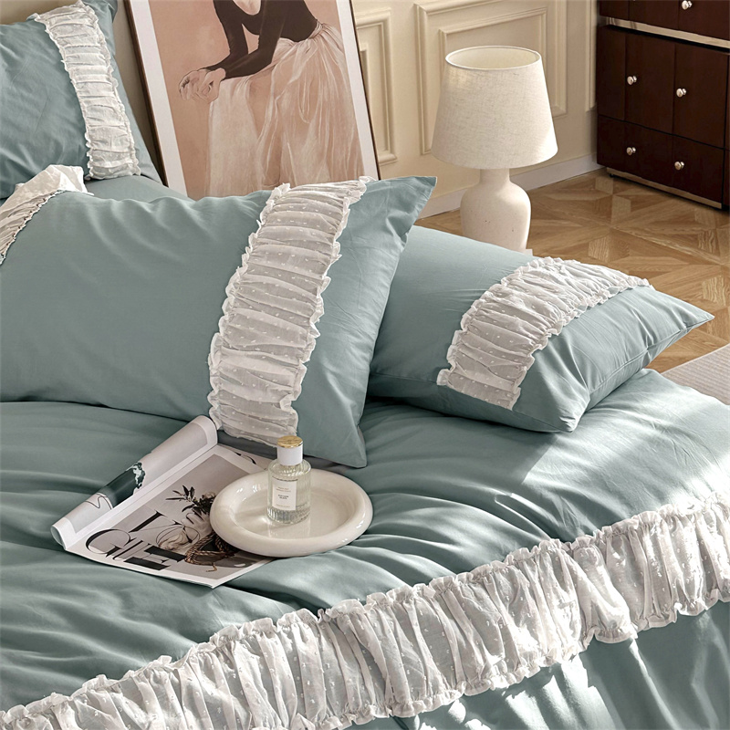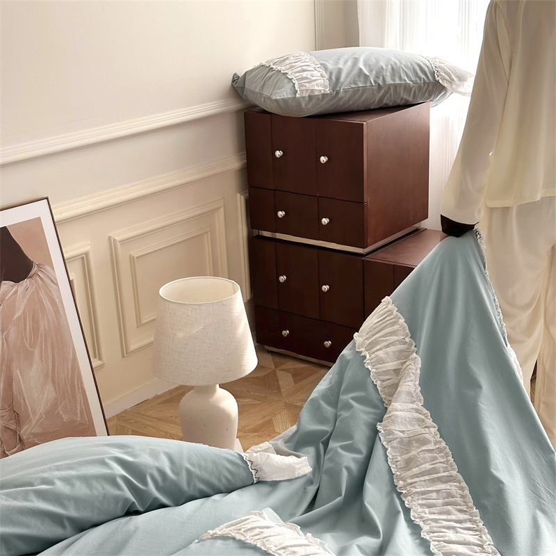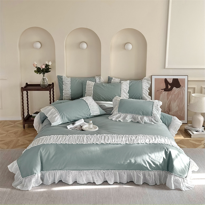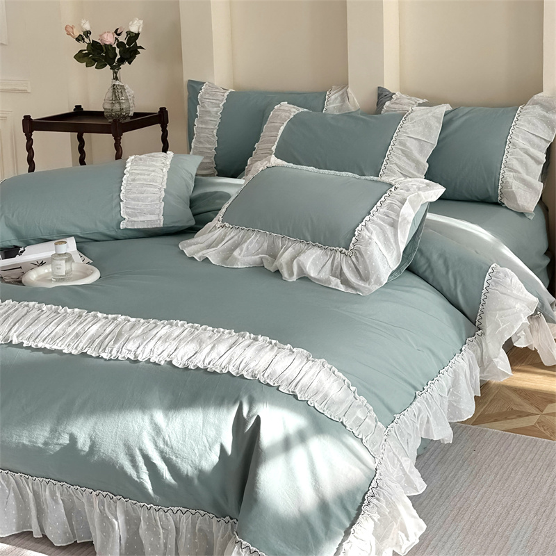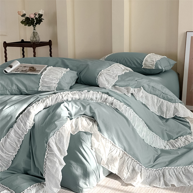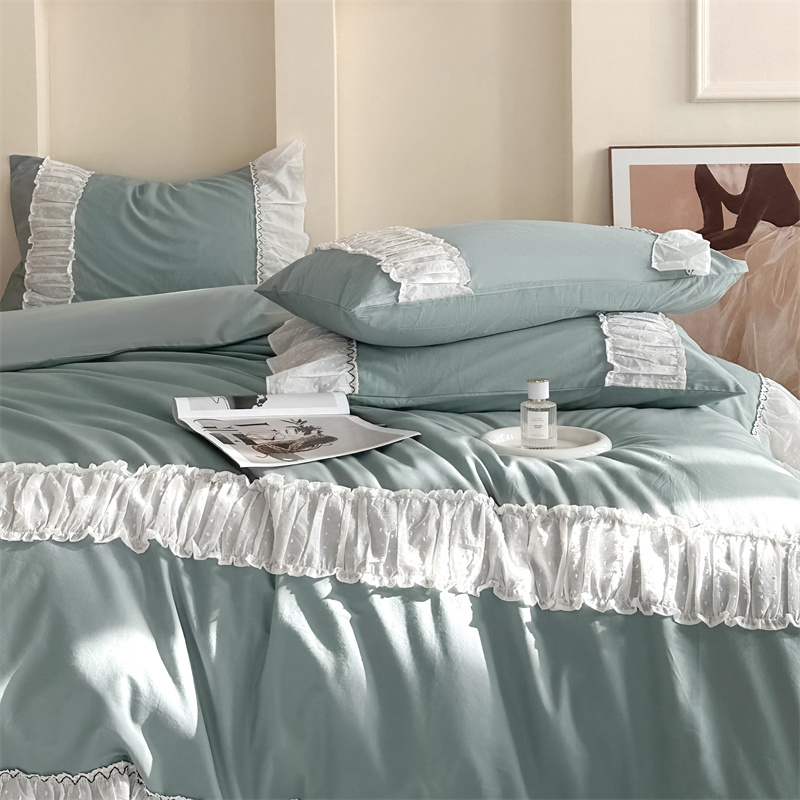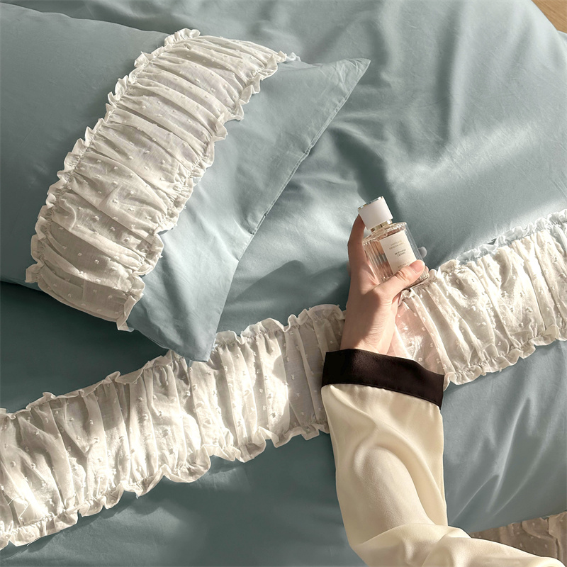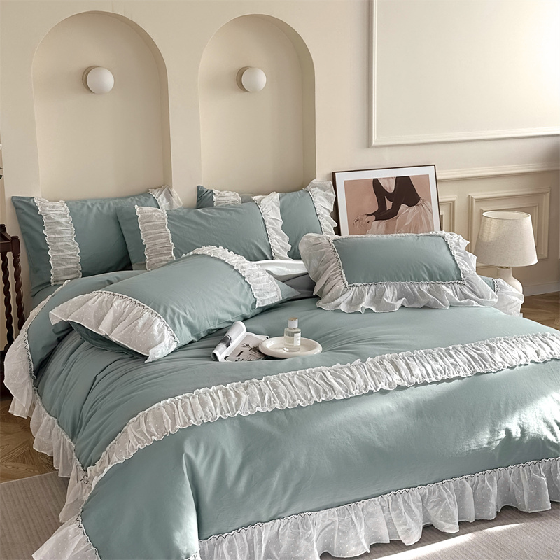 朗莎家纺 2023新款全棉水洗棉法式四件套 露华浓-兰