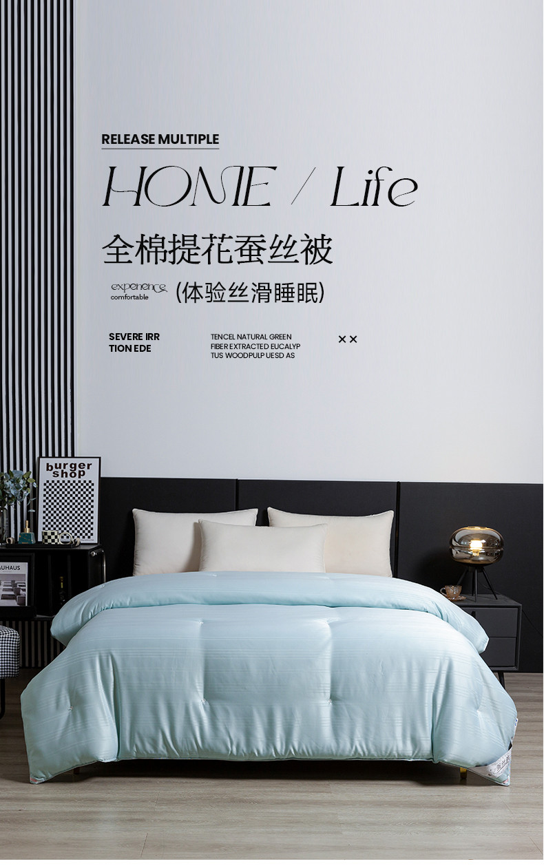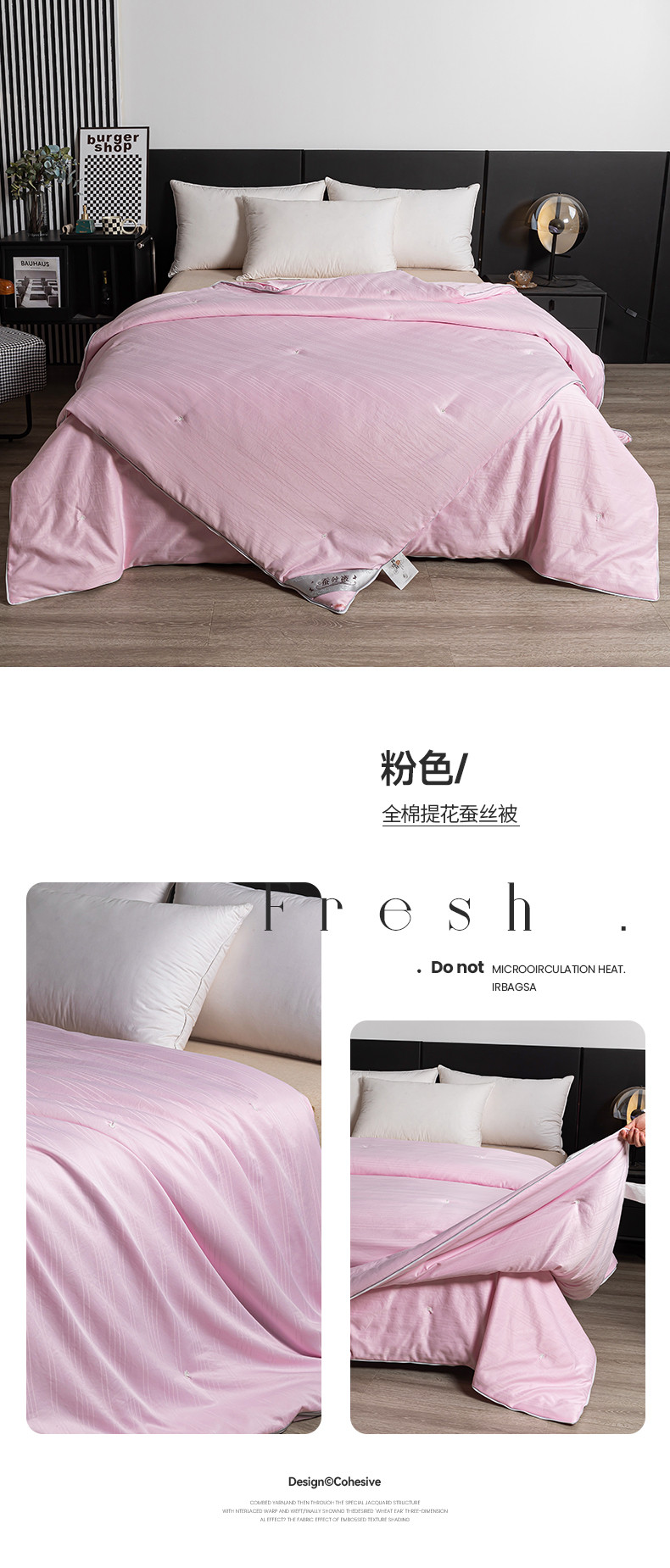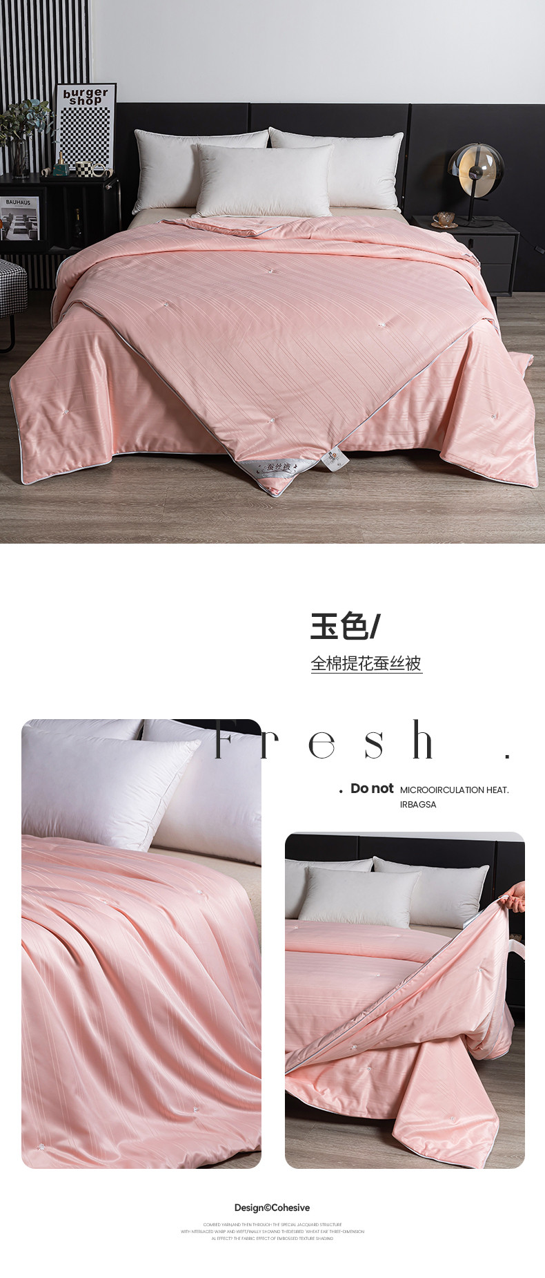 (总)恒鑫家纺 2025新款全棉提花蚕丝被,初恋粉,柔情玉,绅士灰,月光白,中国红,黄色