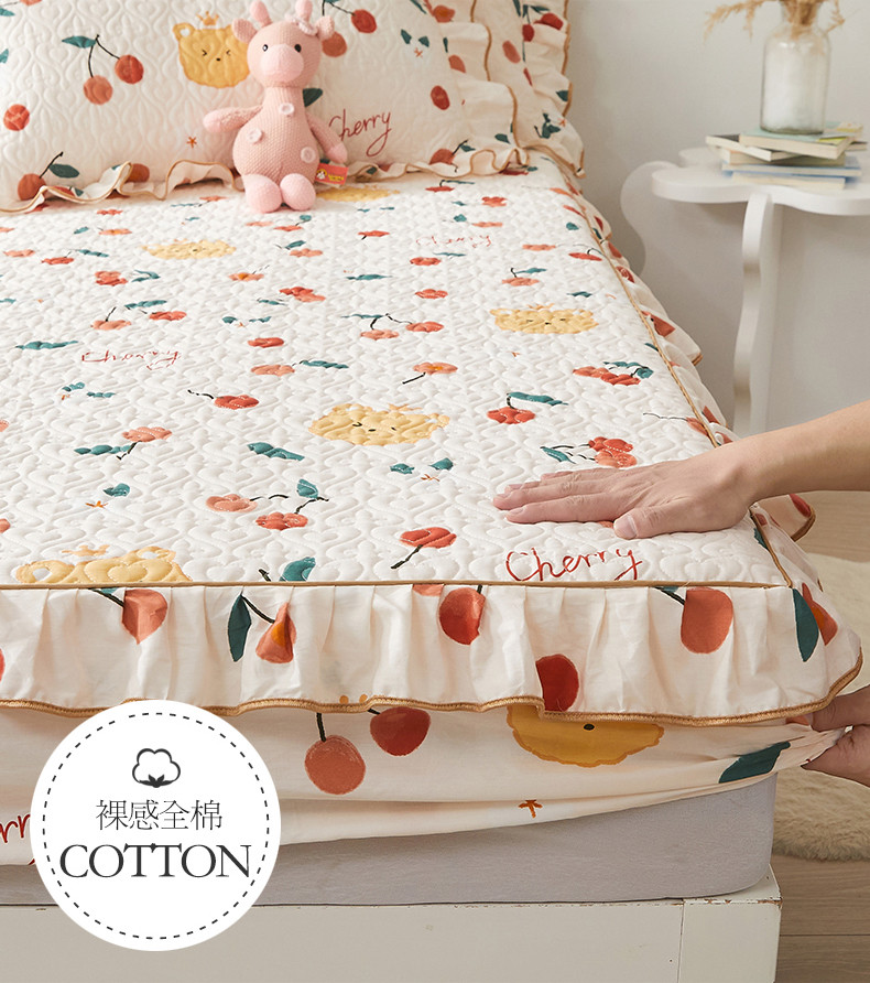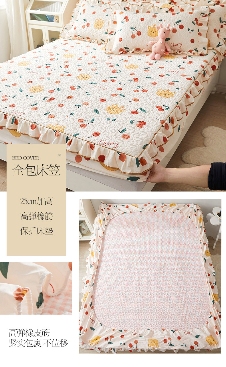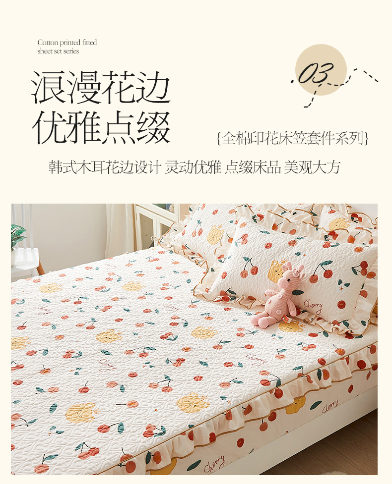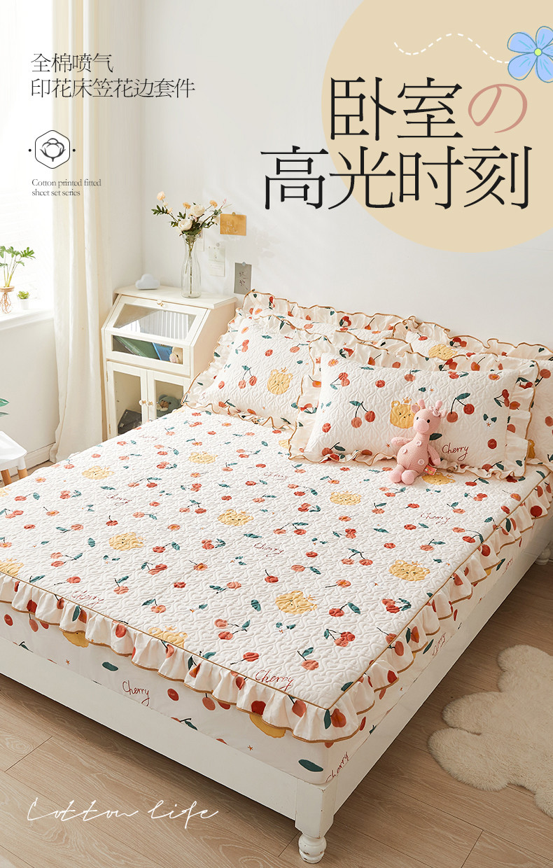 宜凡 2023新款全棉印花床笠三件套 樱桃熊