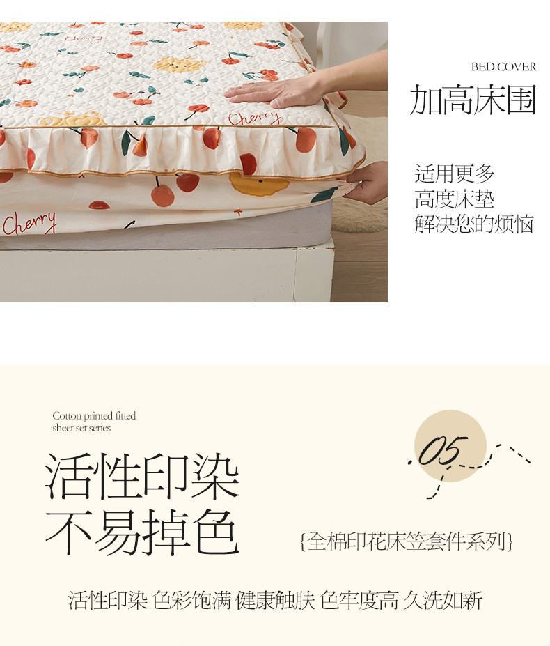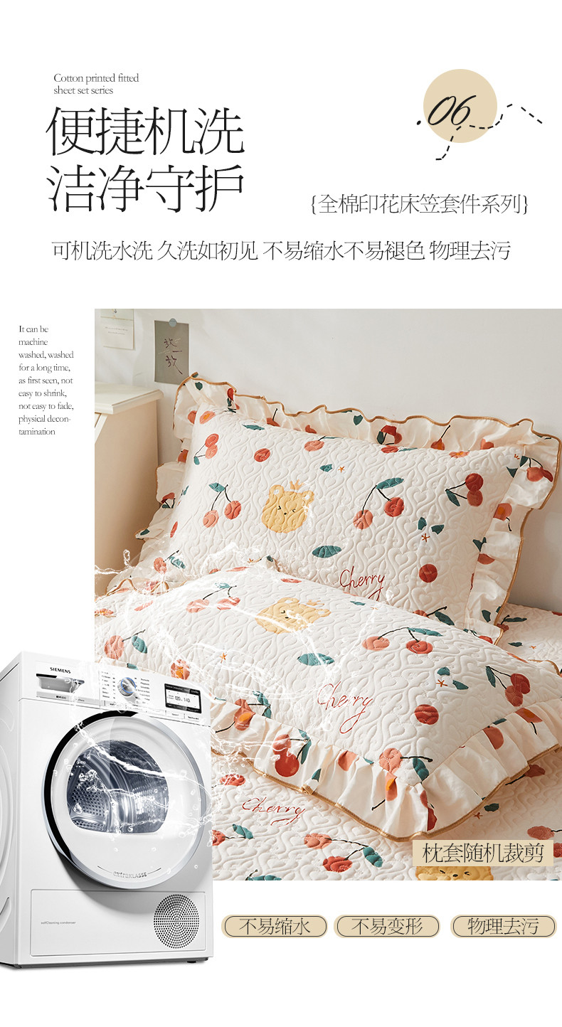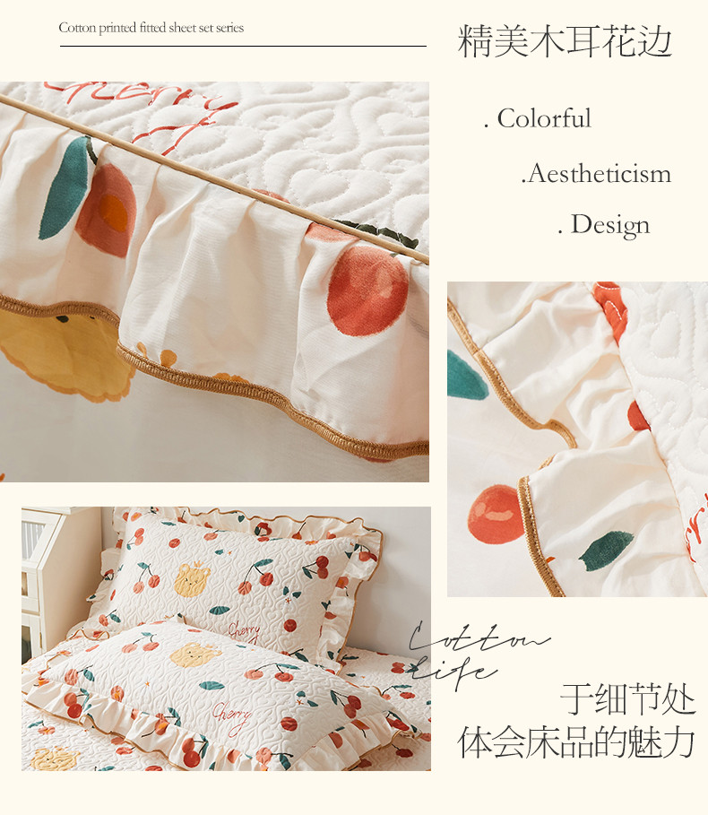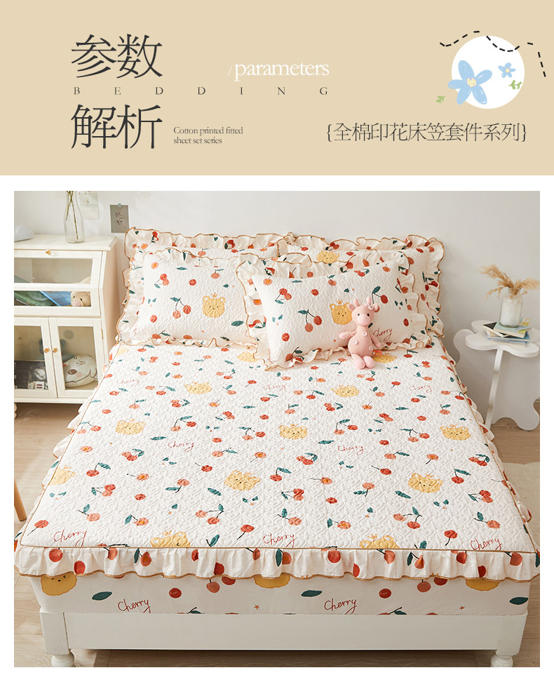 商品名称:宜凡 2023新款全棉印花床笠三件套 樱桃熊
