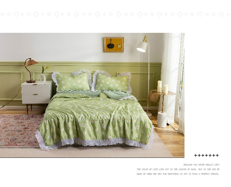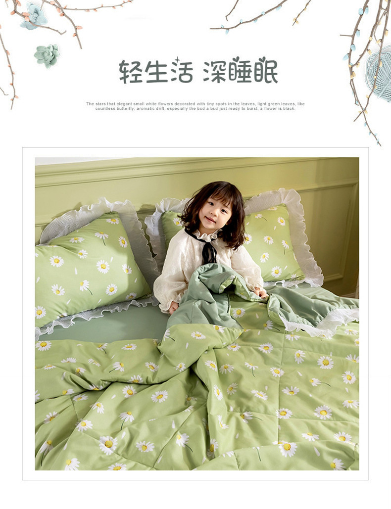 商品名称:十九色 2024新款柔赛丝雪纺花边夏被 雏菊绿