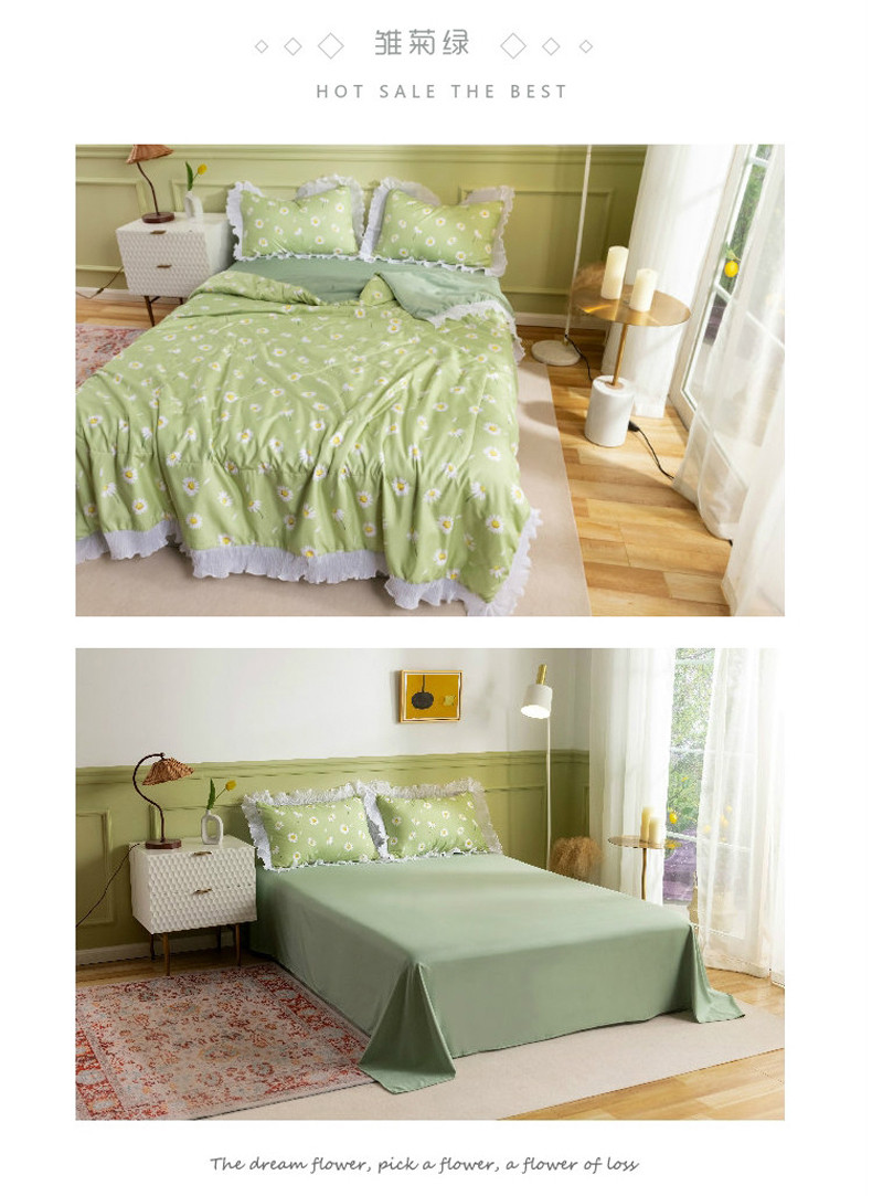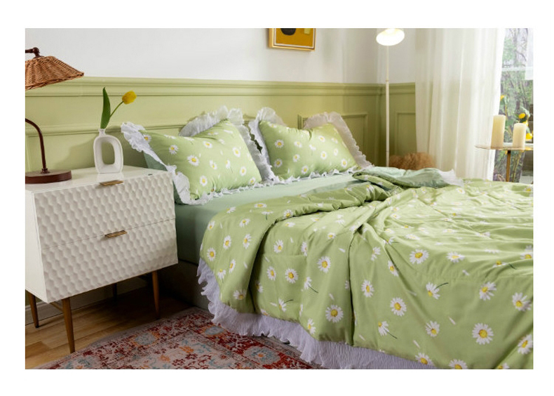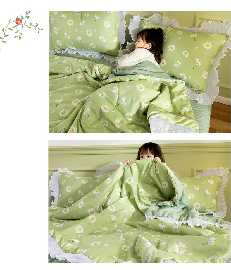 十九色 2024新款柔赛丝雪纺花边夏被 雏菊绿