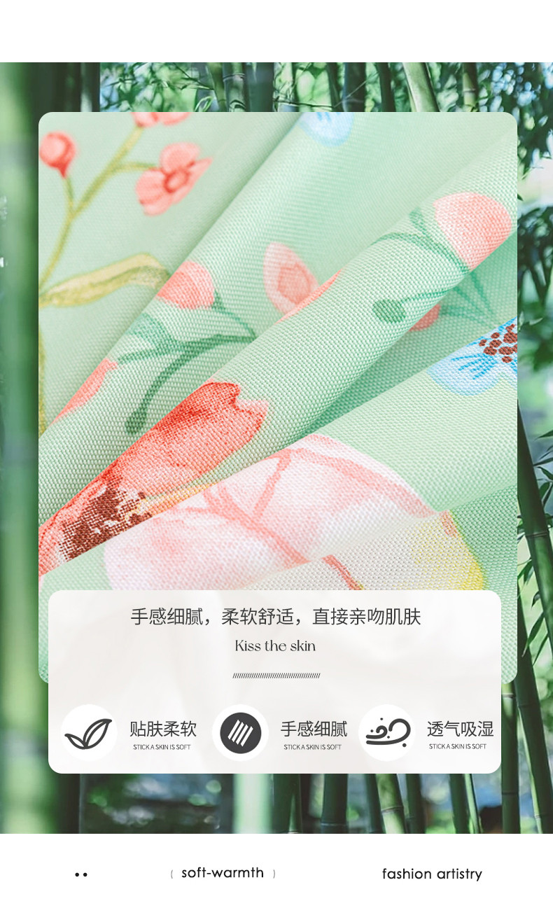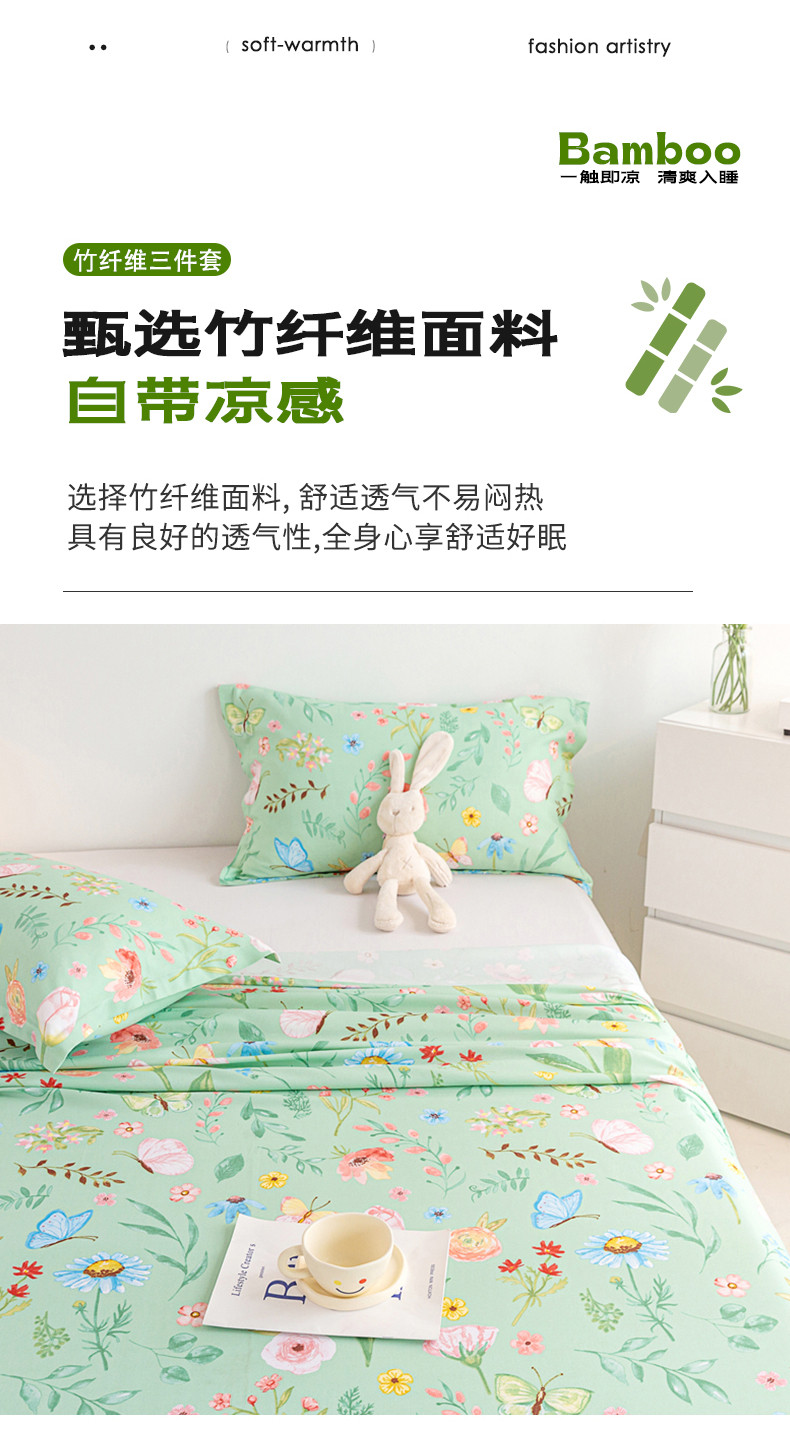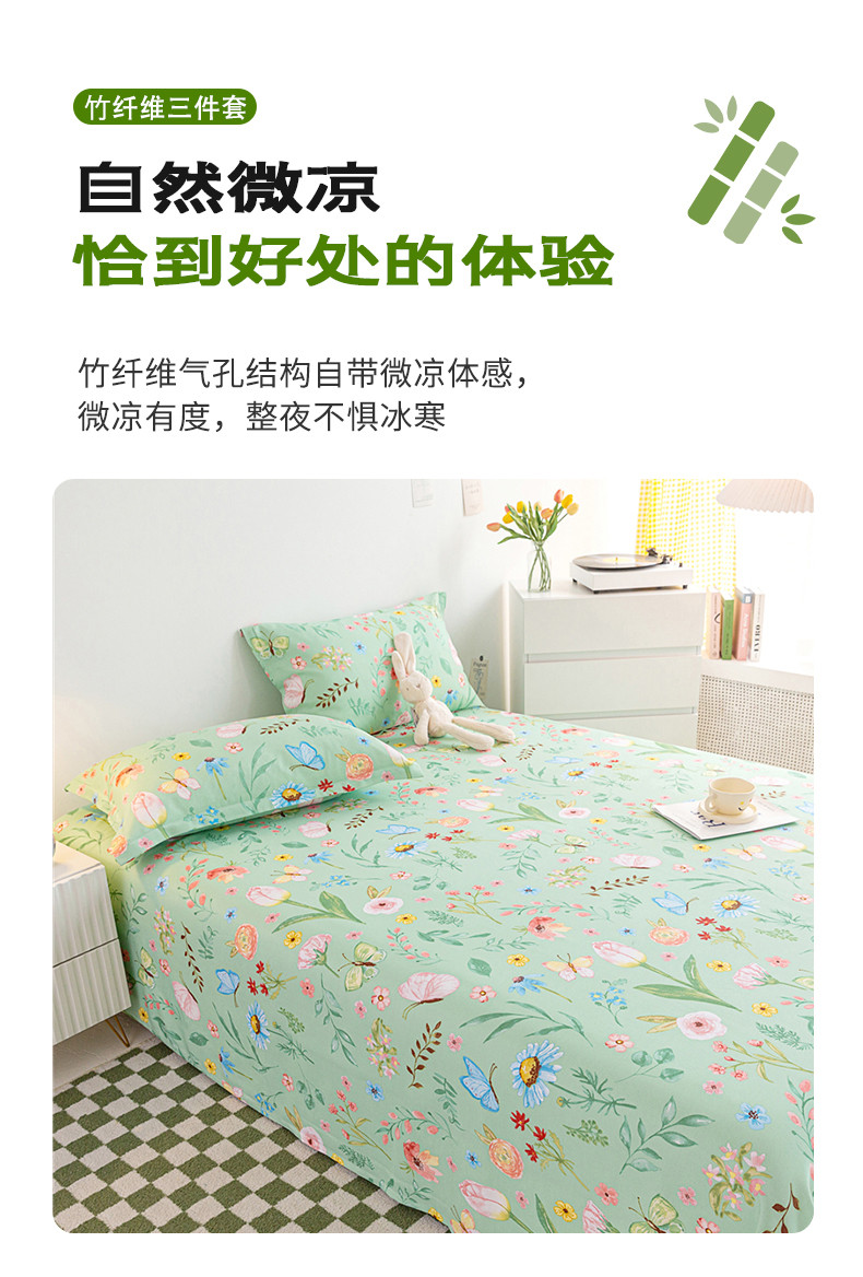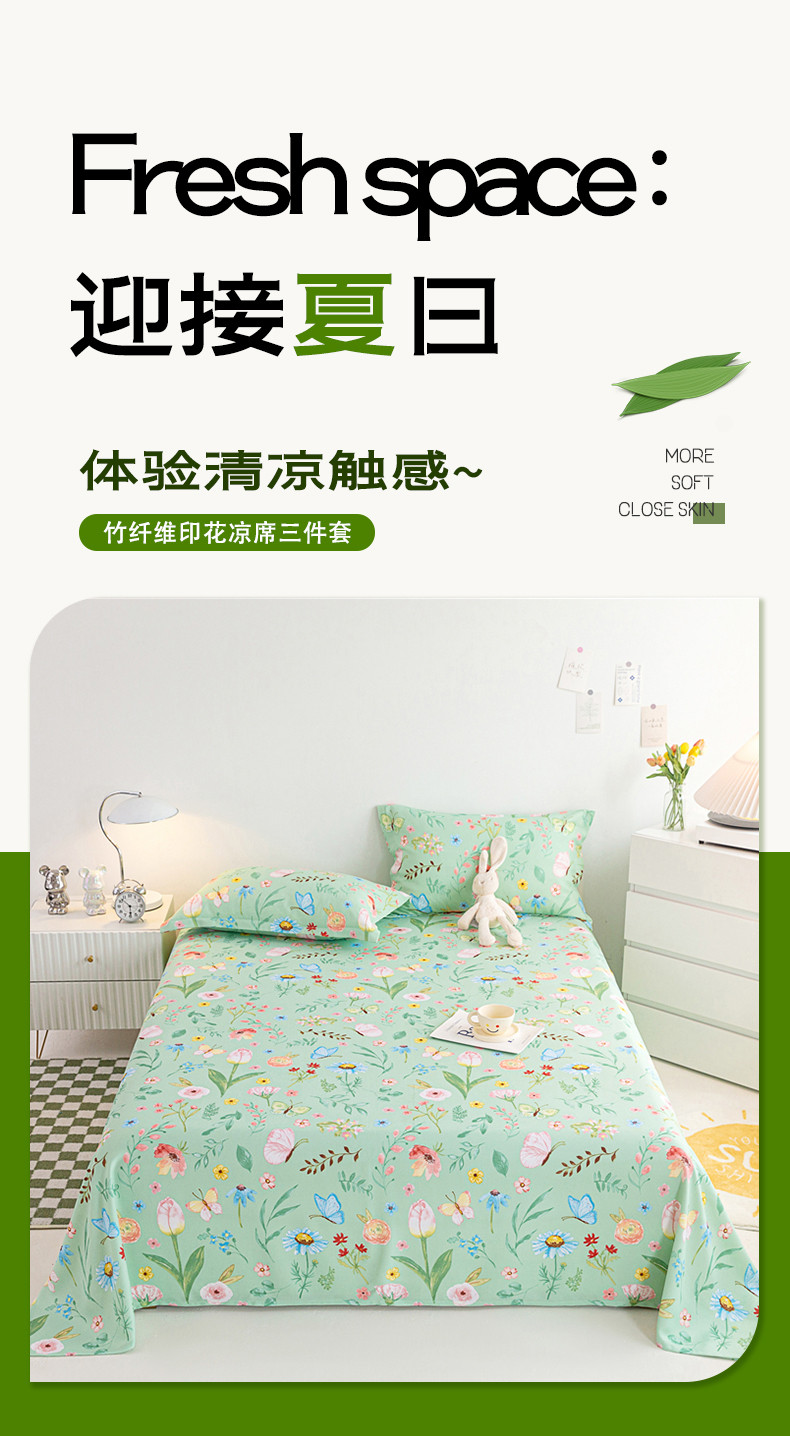 商品名称:棉乐町 2025新款竹纤维凉席三件套 繁花似锦-绿