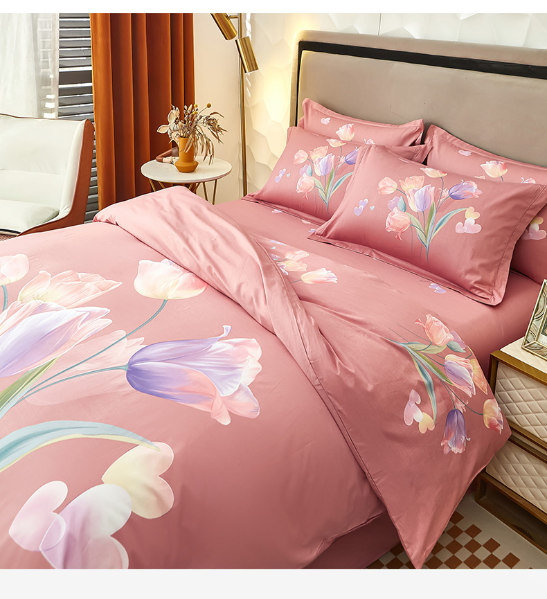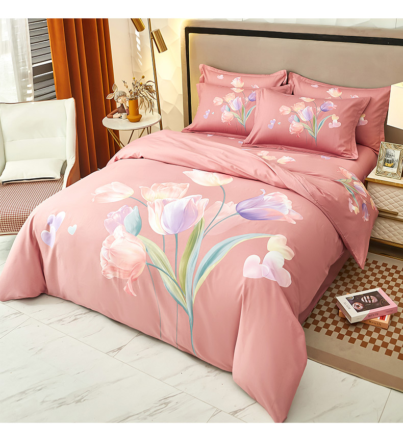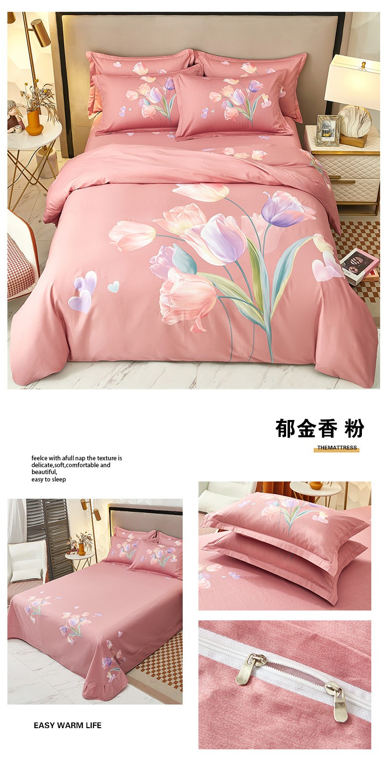 雲归梦 2023年新款加厚全棉生态磨毛大版四件套 郁金香-粉