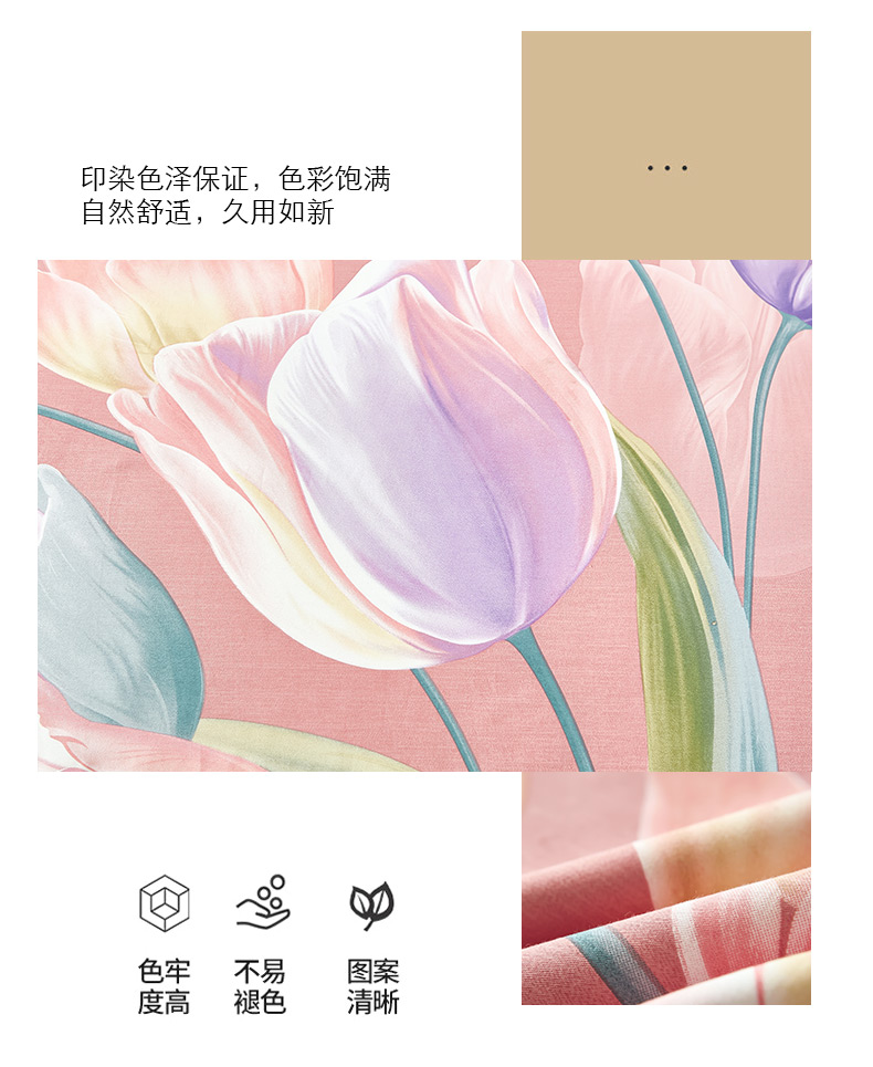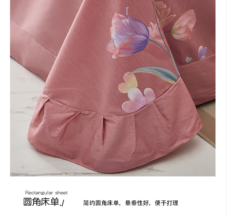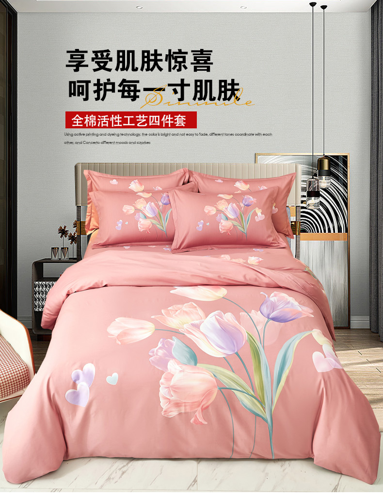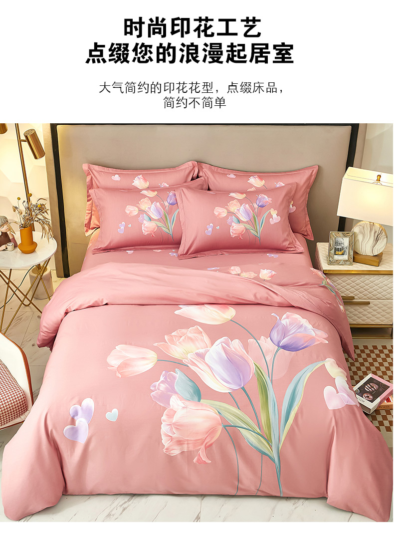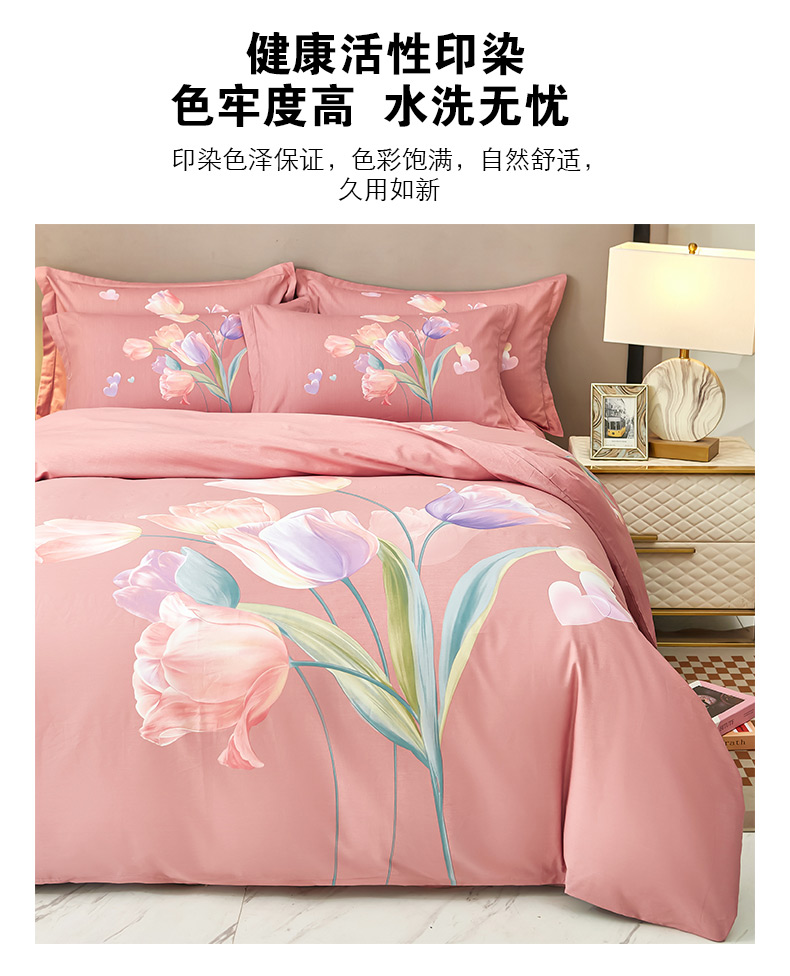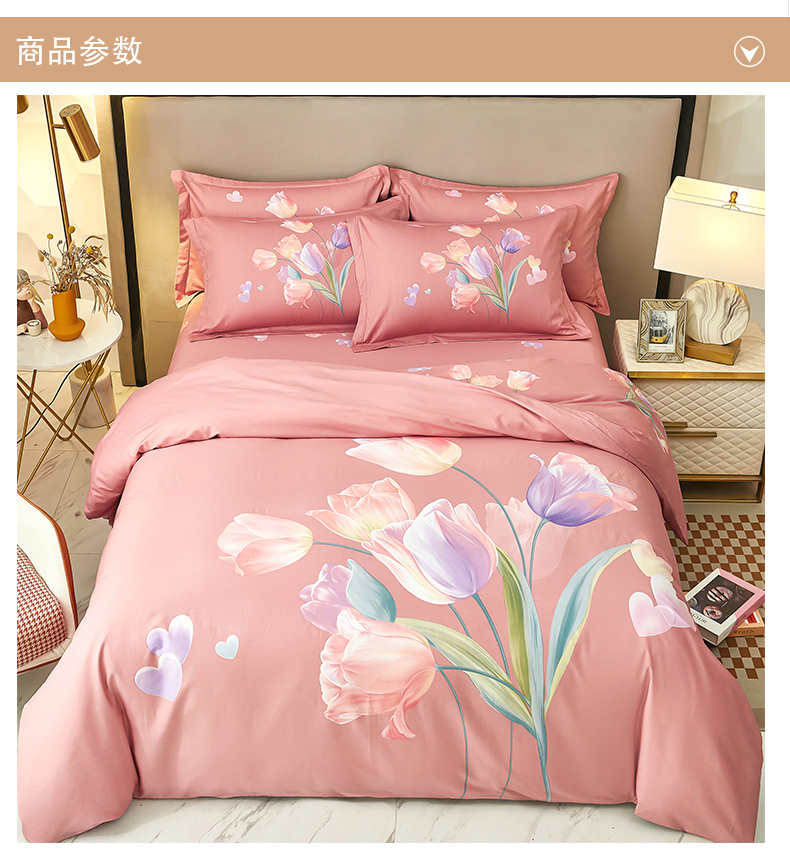 商品名称:雲归梦 2023年新款加厚全棉生态磨毛大版四件套 郁金香-粉