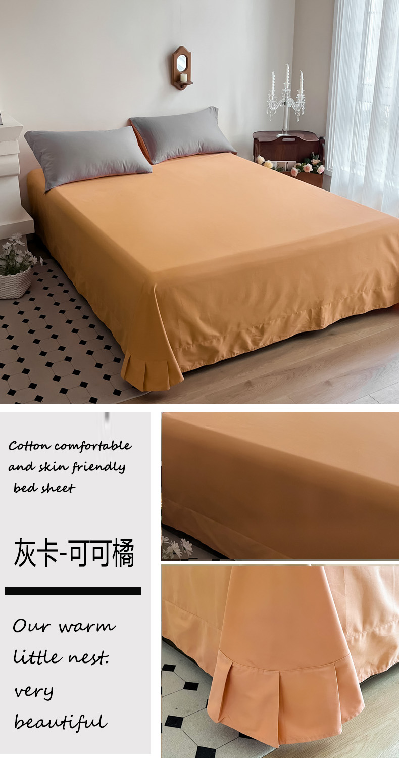 商品名称:艾迪尚家纺 2025新款100s生态全棉纯色磨毛单品床单 灰卡—可可橘