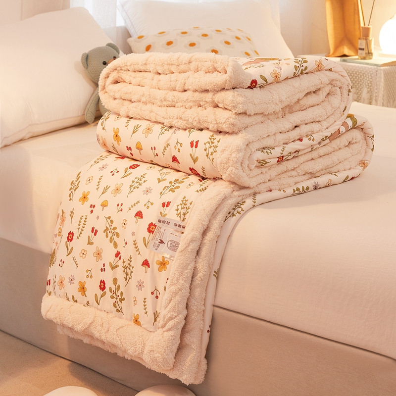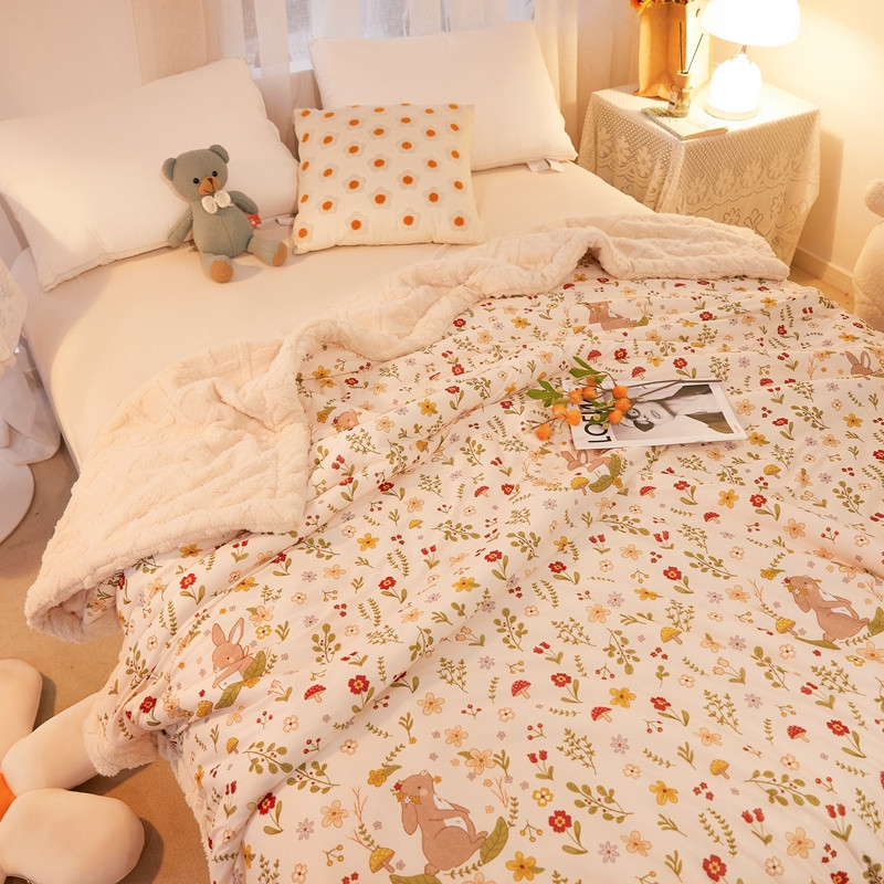 商品名称:蓝冰家纺 2023新款针织印花毛毯 白色小花