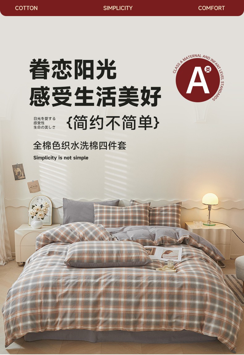 吉象 2023新款全棉色织水洗棉四件套 乔纳森