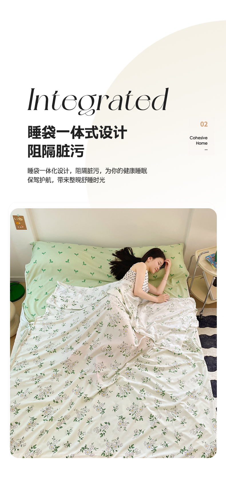 商品名称:曼陀罗 2025新款水洗棉印花隔脏睡袋 仙草