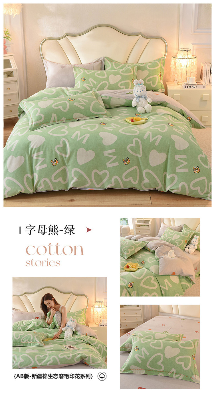 当前位置: 91家纺网 > 商品网购 > 床品套件 > 四件套 > 全棉普通四件套 > 巧玲珑2025新款AB版铂金生态四件套 字母熊绿