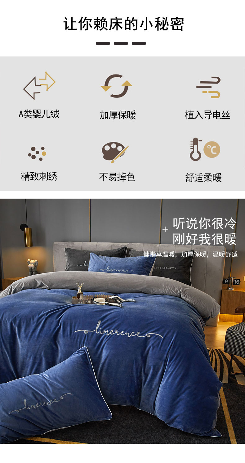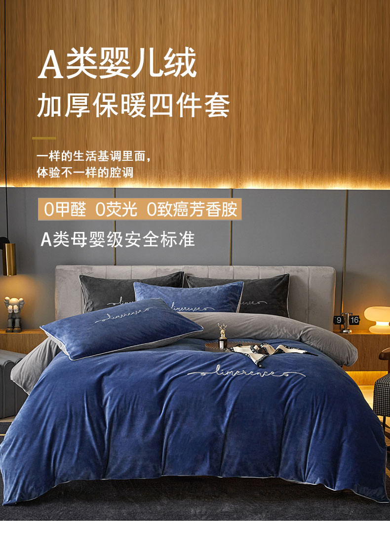 当前位置: 91家纺网 > 商品网购 > 床品套件 > 四件套 > 宝宝绒四件套 > 瑞驰家纺 2023新款A类婴儿绒加厚保暖四件套 宾利兰+摩登灰