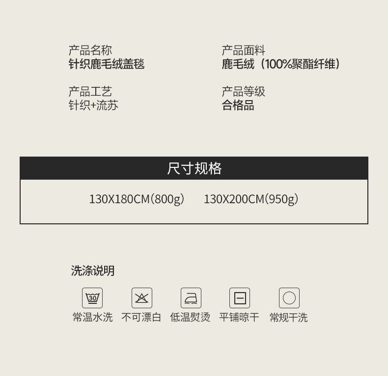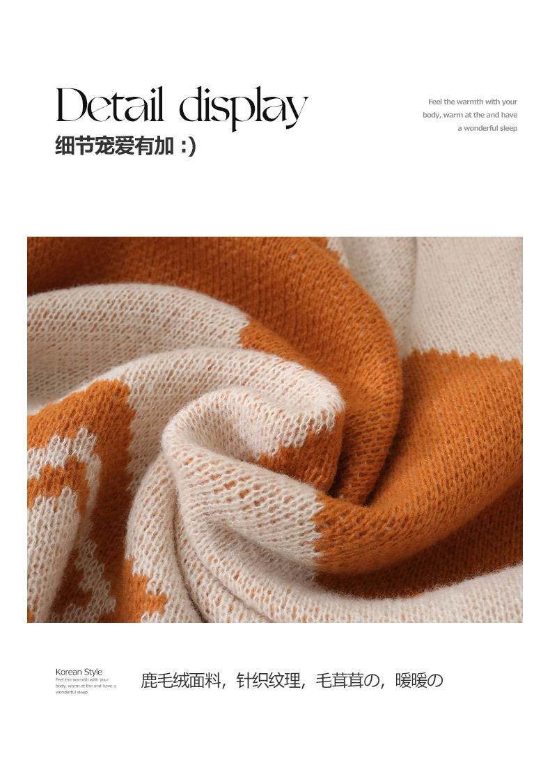 商品名称:肖恩 2025新款九宫格鹿毛绒针织毯毛毯 九宫格焦糖