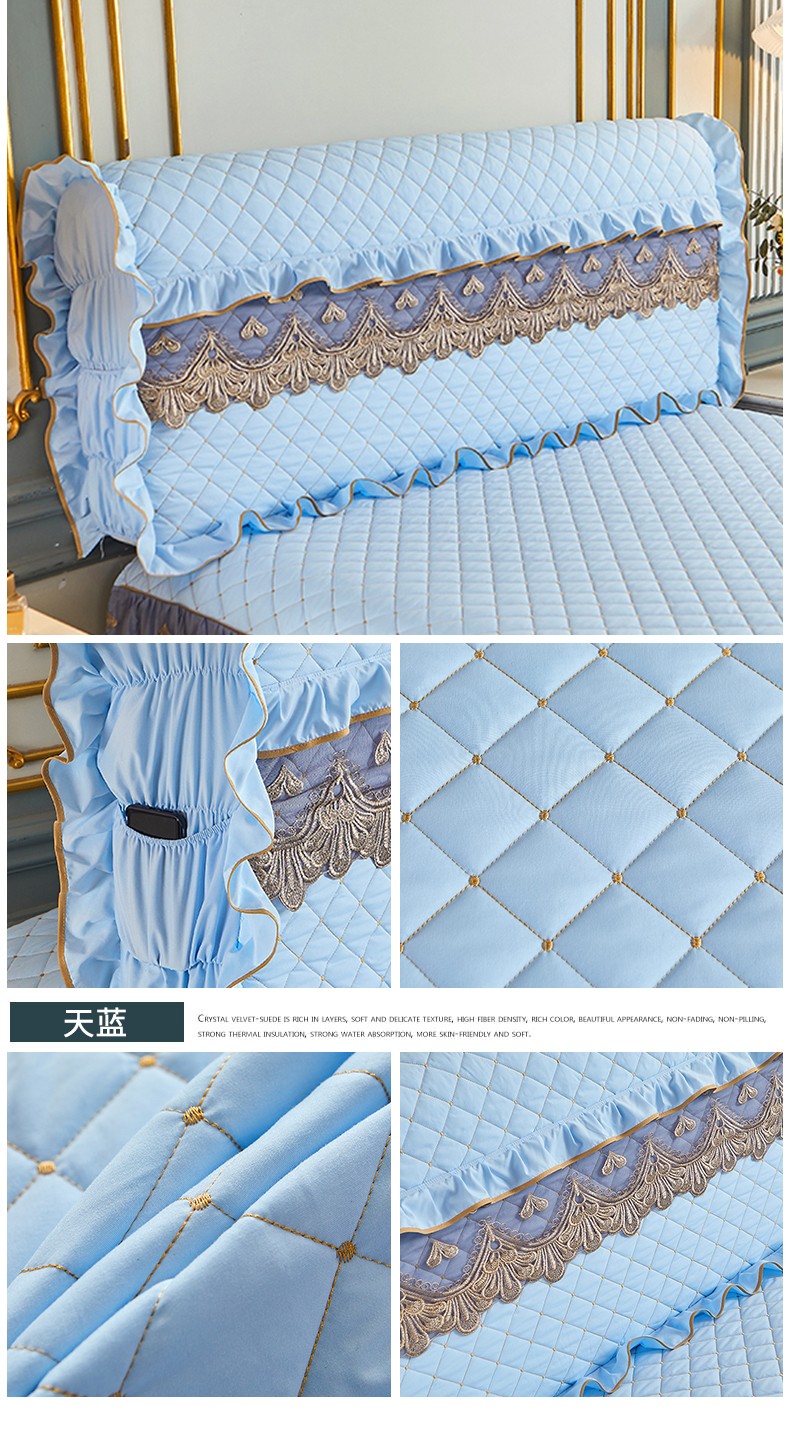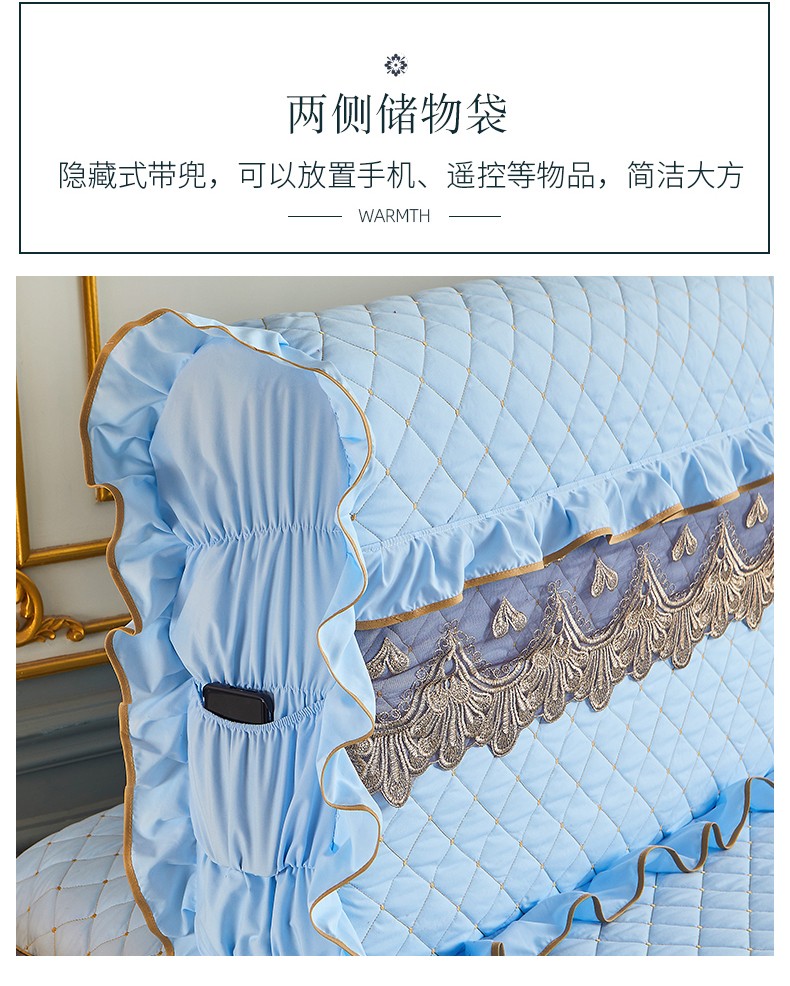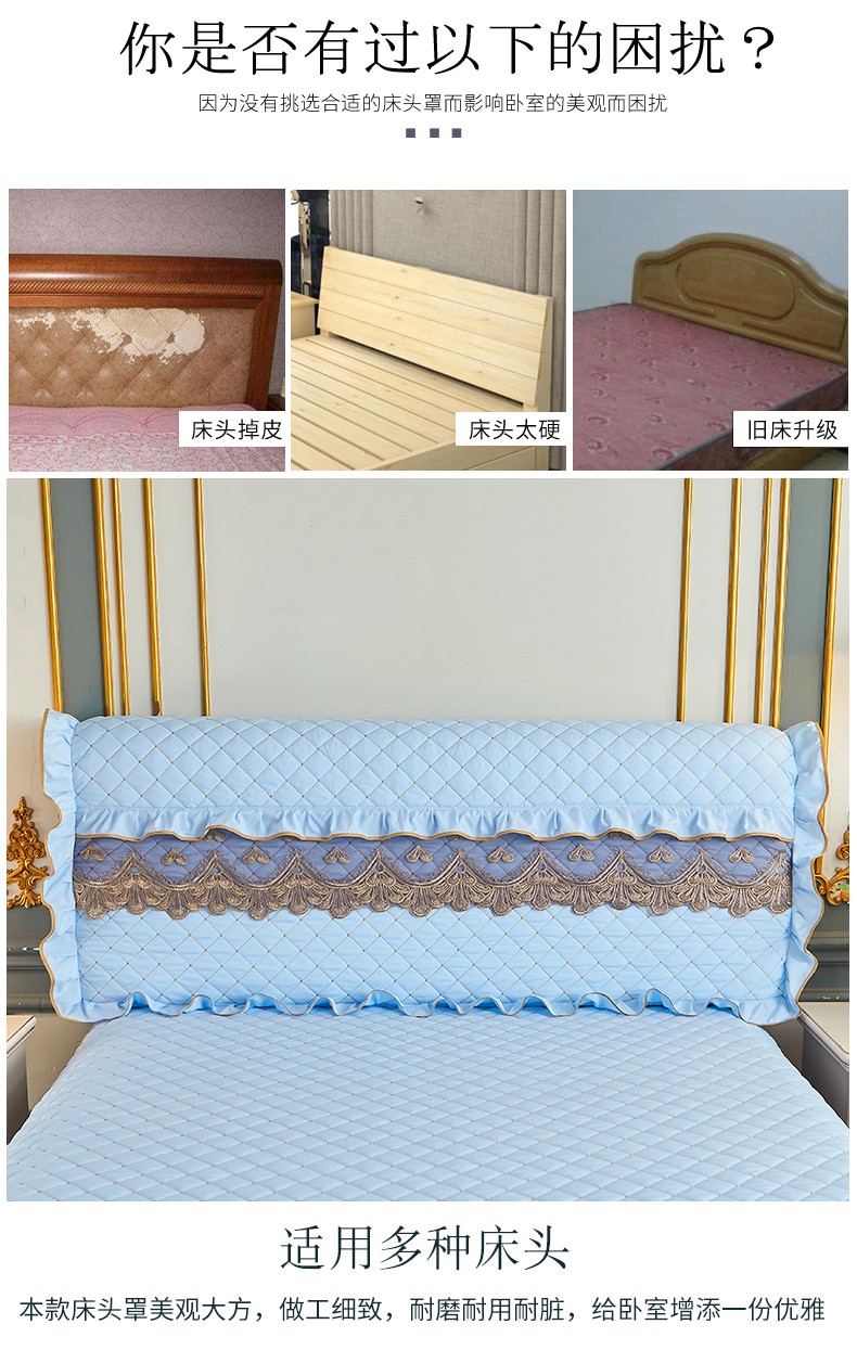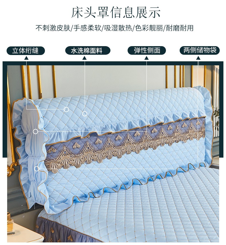 商品名称:屹成 2024新款水洗棉蕾丝四季款床笠床裙单品套件-床头罩 天蓝