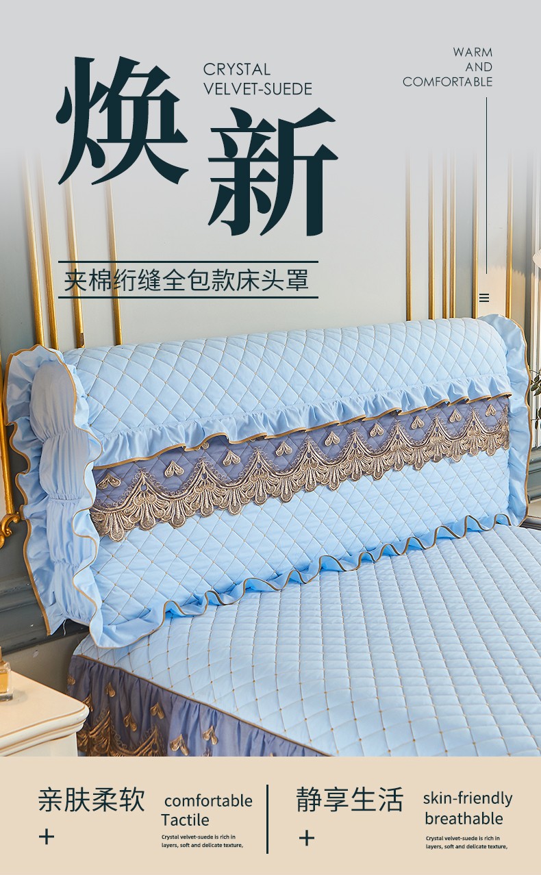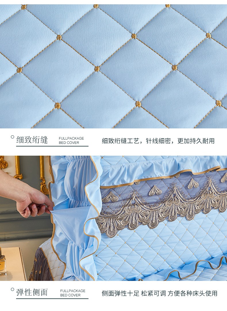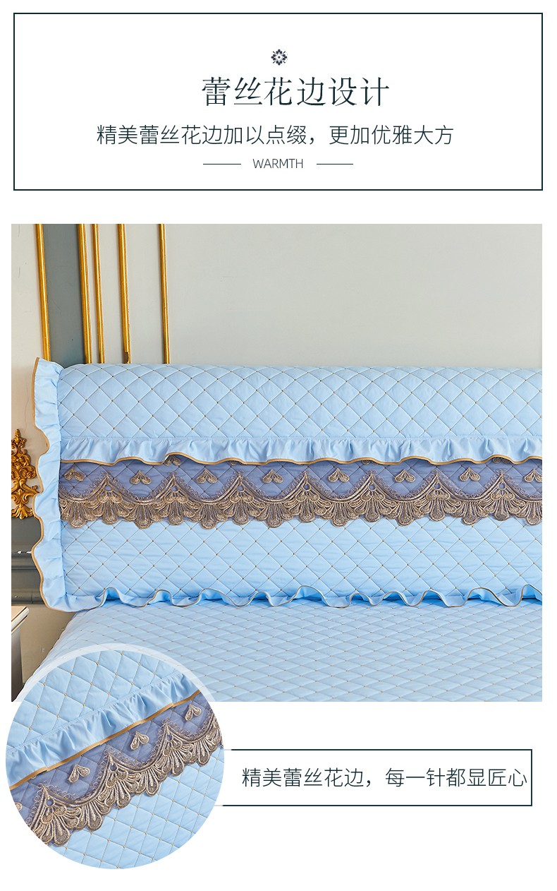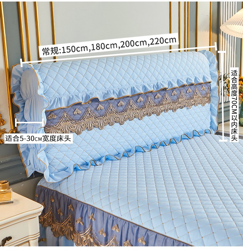 屹成 2024新款水洗棉蕾丝四季款床笠床裙单品套件-床头罩 天蓝