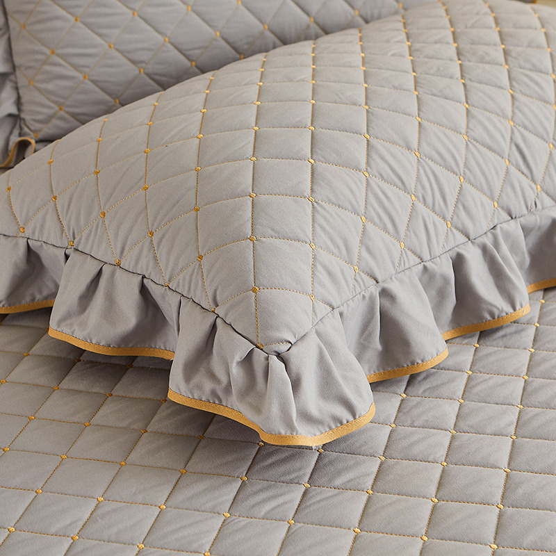 (总)屹成家纺2025新款水晶绒夹棉绗缝蕾丝床裙三件套(塞纳河畔)床裙单件起售价不低于105元,大红,豆沙,翡翠绿,粉玉,橄榄绿,蔚蓝,银灰