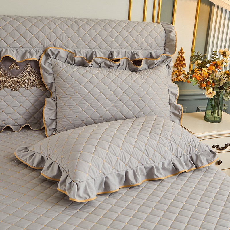 商品名称:屹成 2024新款水洗棉蕾丝四季款床笠床裙单品套件-枕套 银灰