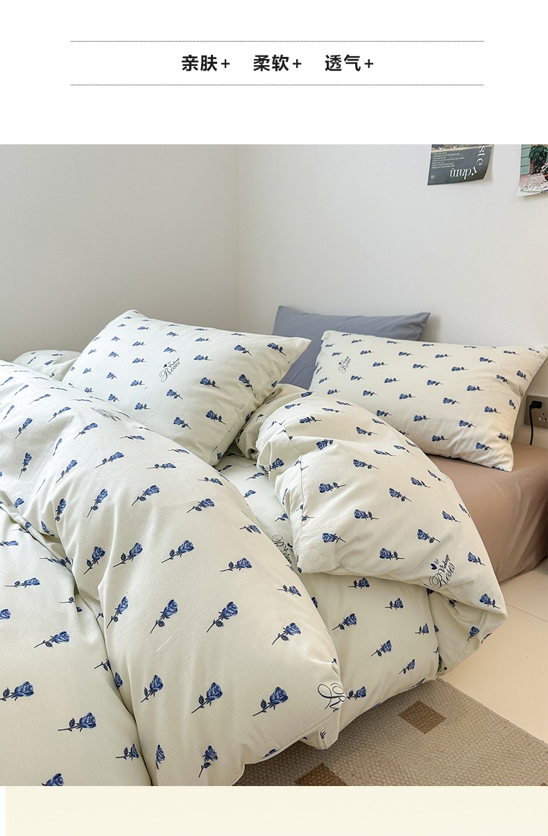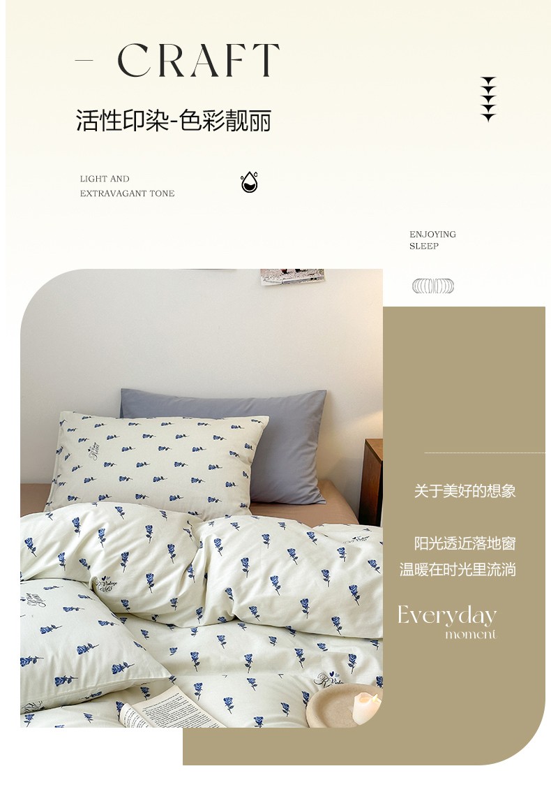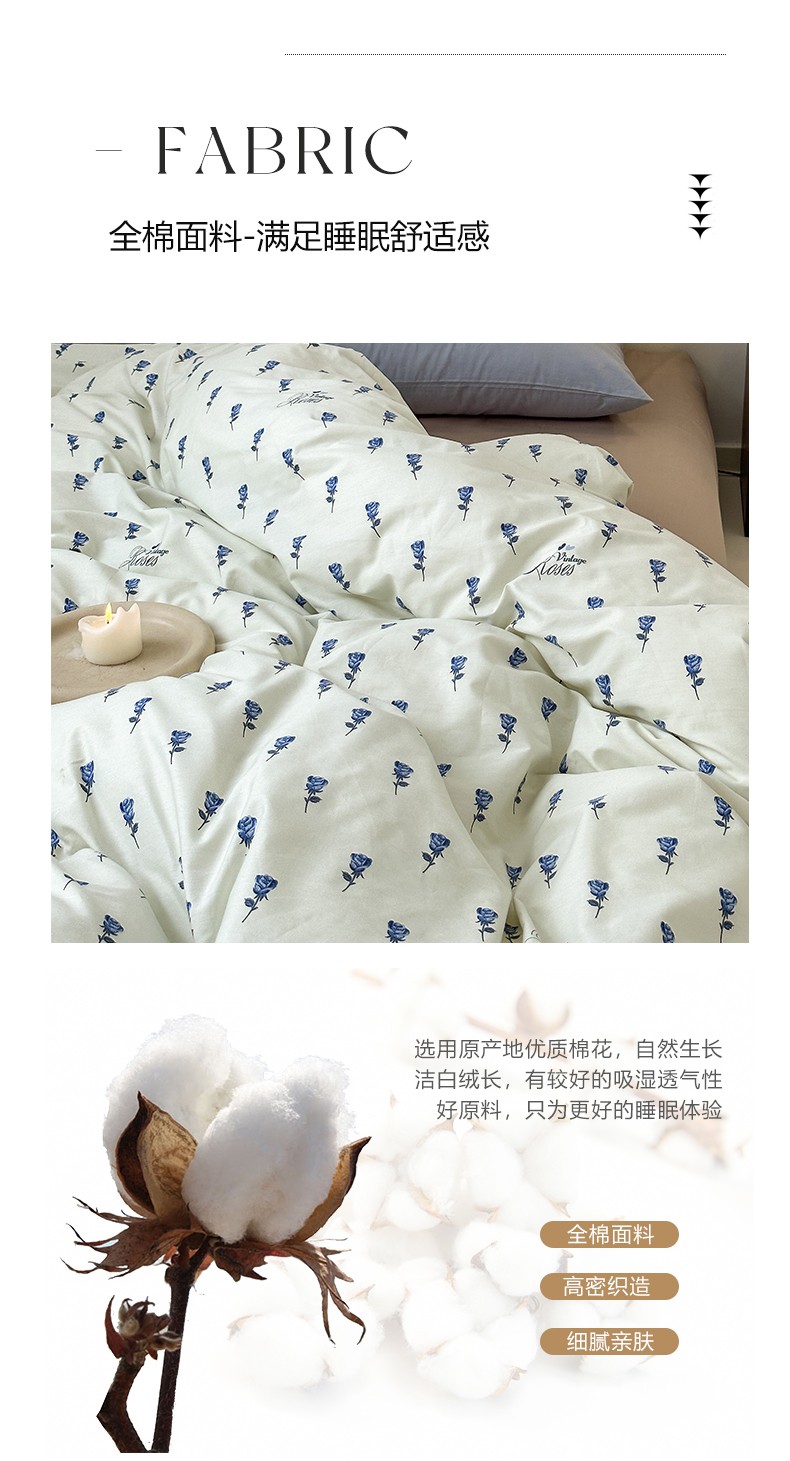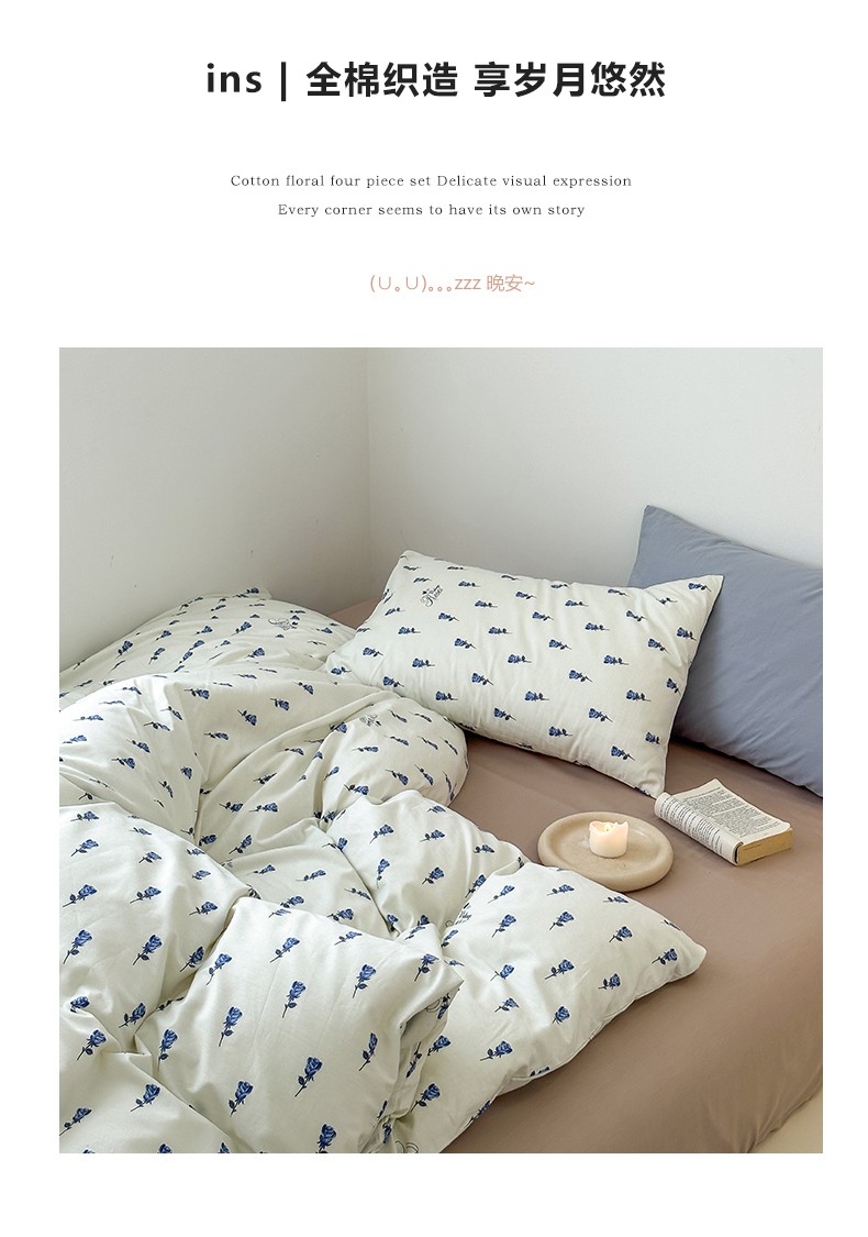 商品名称:捌月新款13372全棉田园风印花四件套小红书同款四件套直播新品 蓝之语