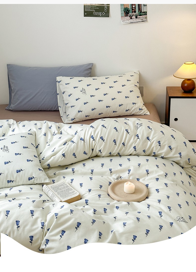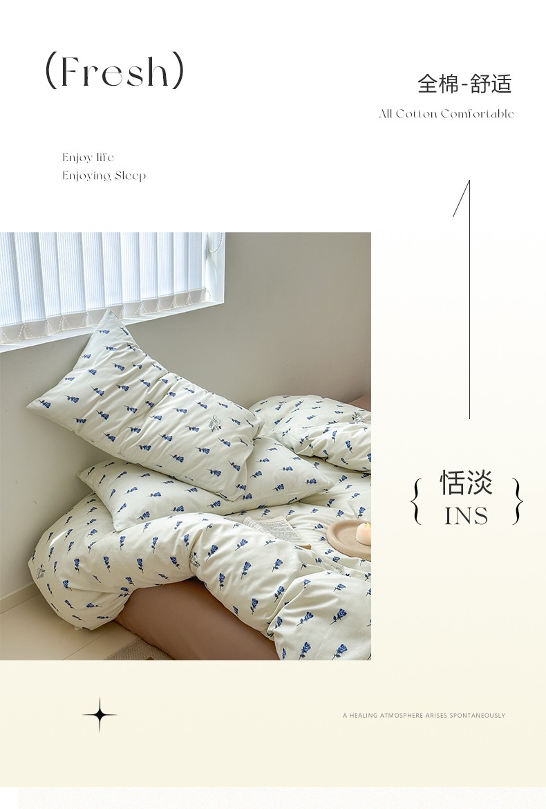 捌月新款13372全棉田园风印花四件套小红书同款四件套直播新品 蓝之语