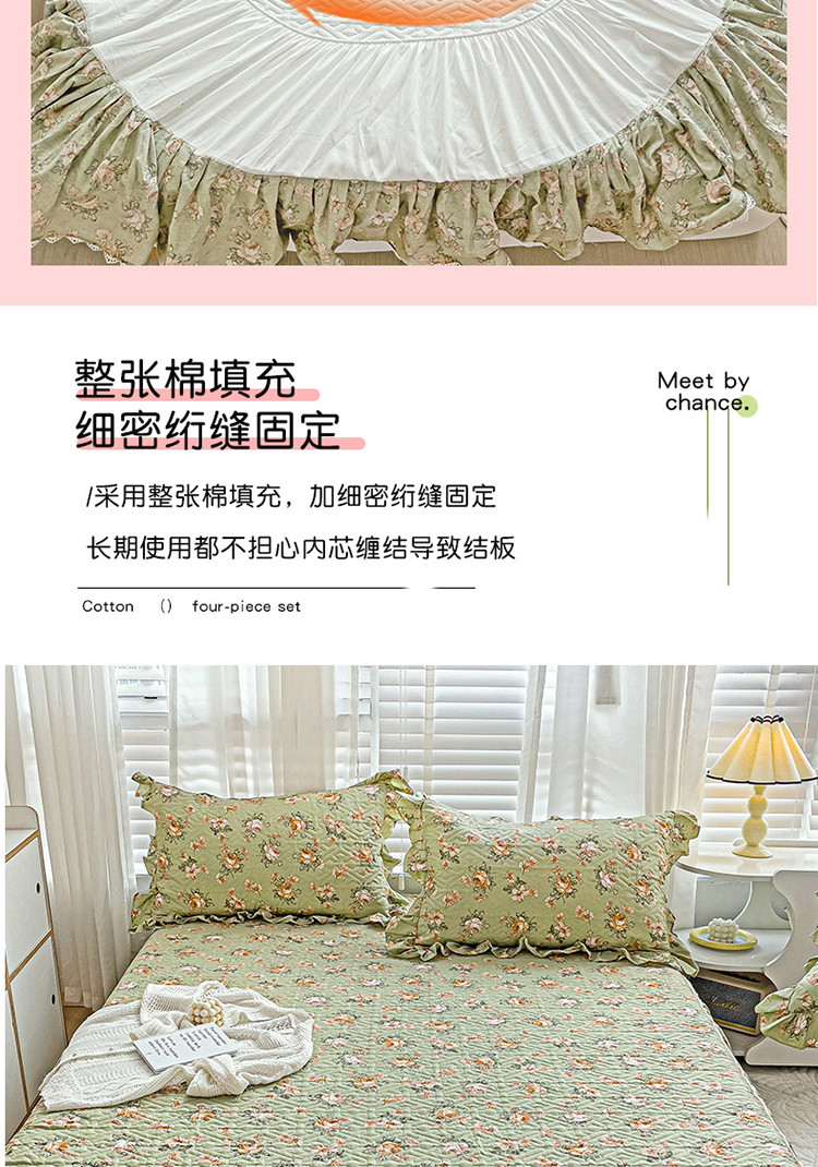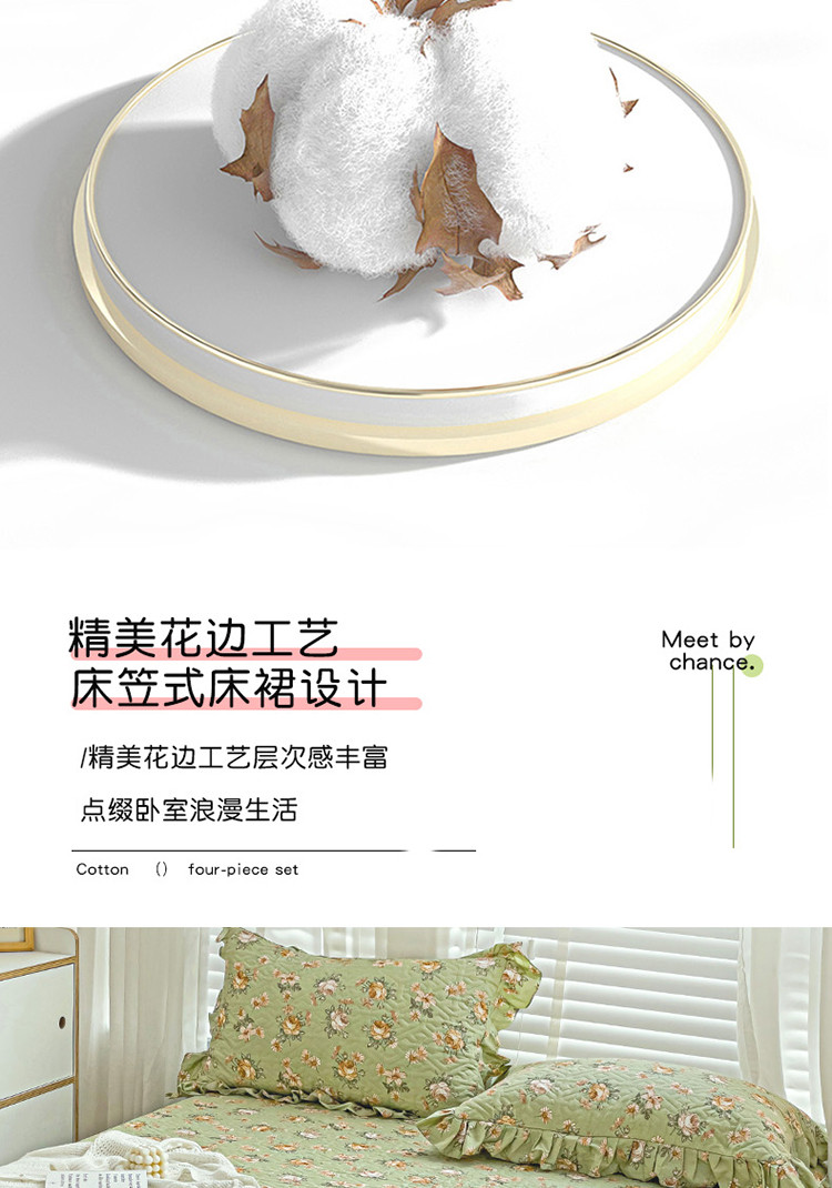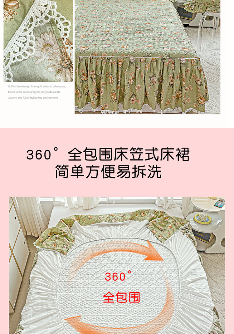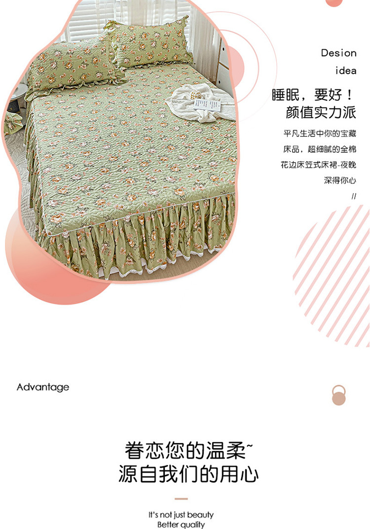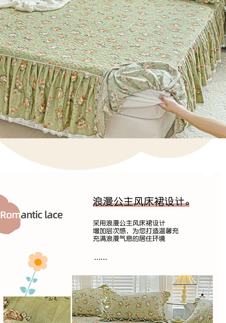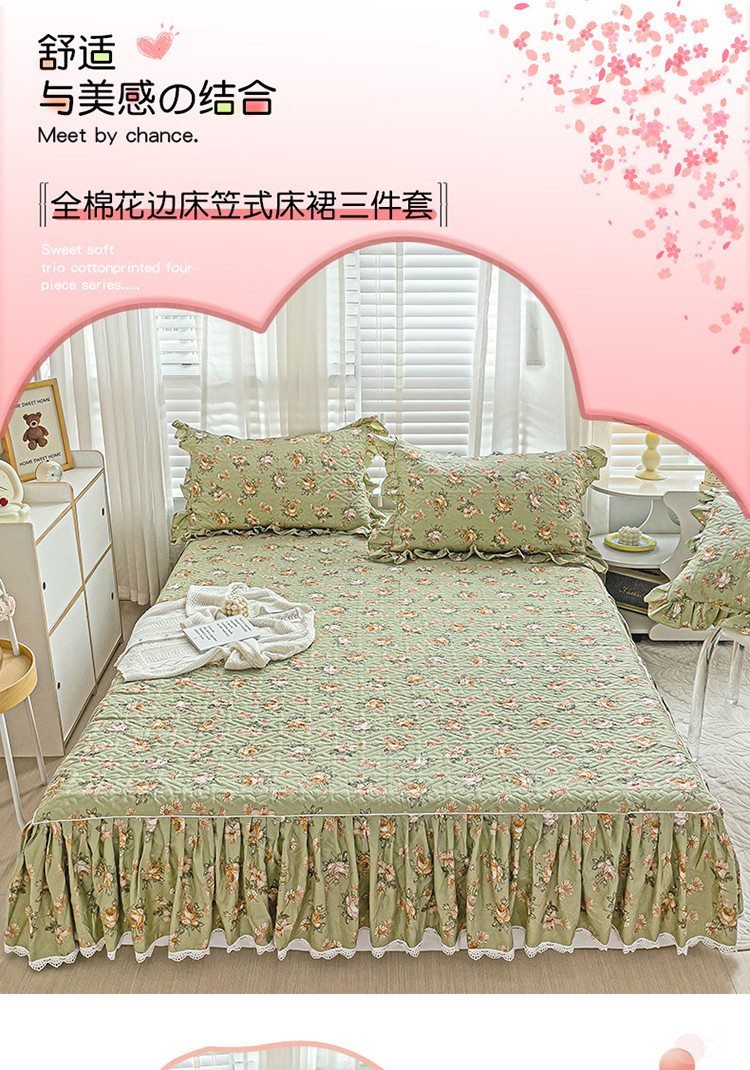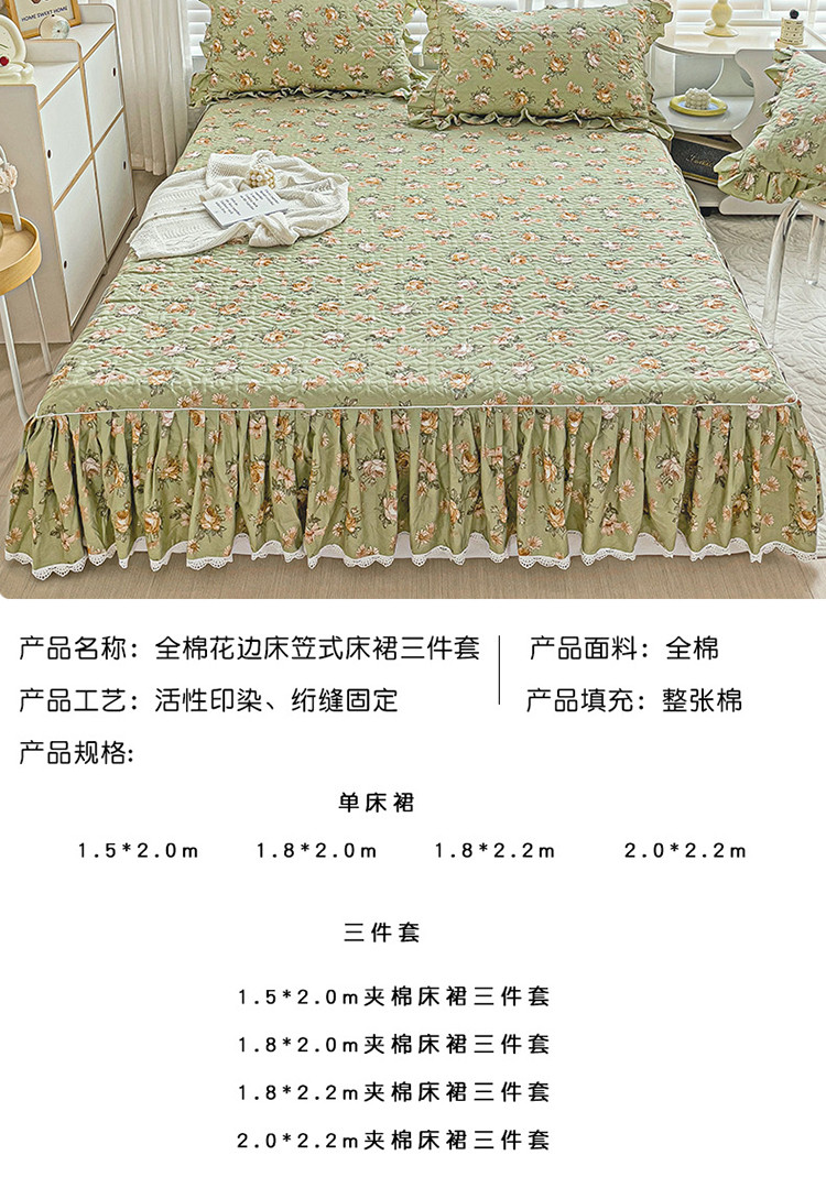 • 91家纺网 家纺一手货源 找家纺 罗艺轩 2024新款全棉花边床笠式夹棉床裙三件套波塞尔庄园花枝雅韵