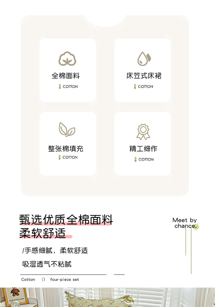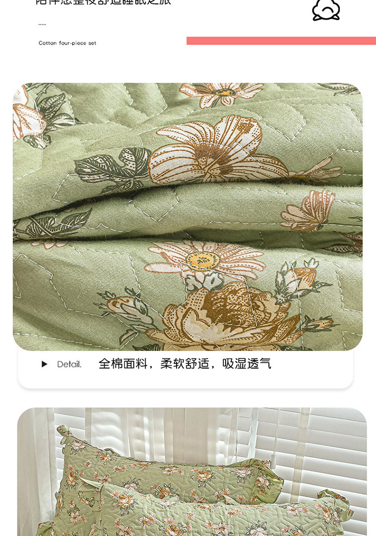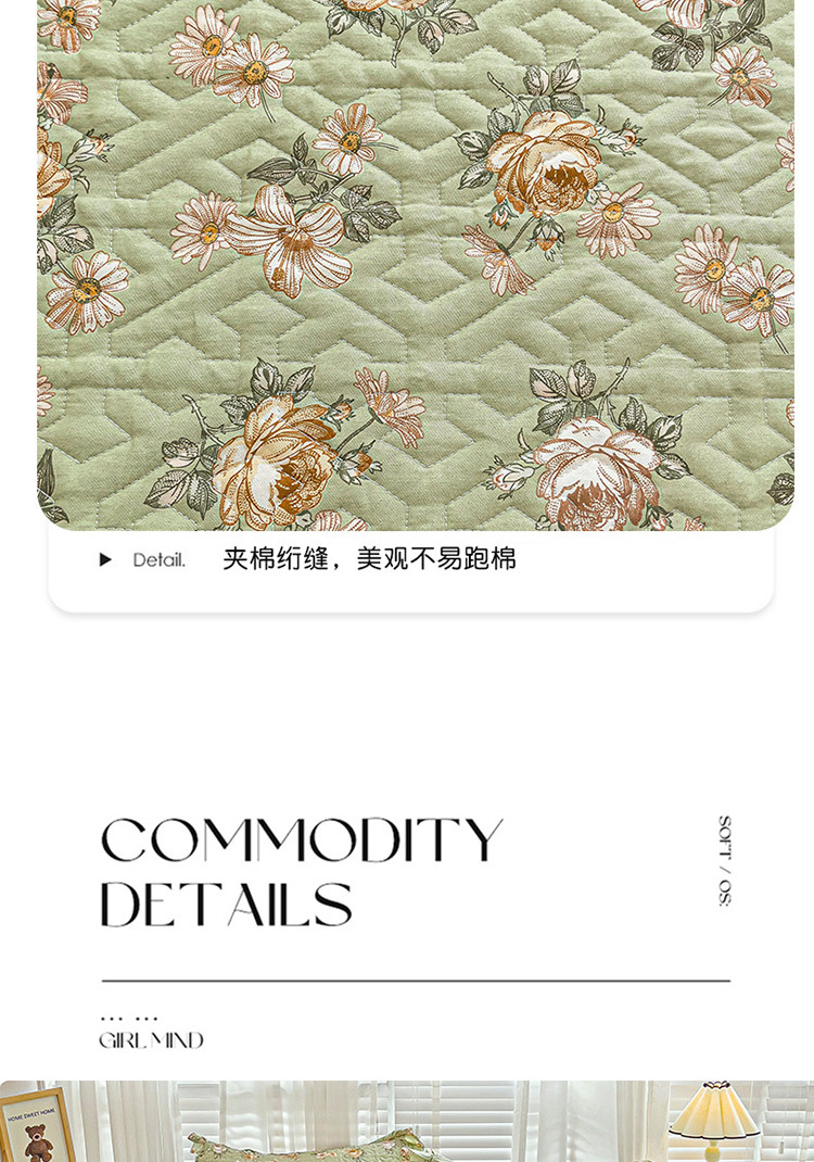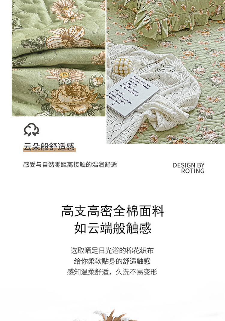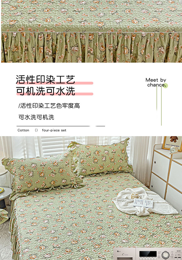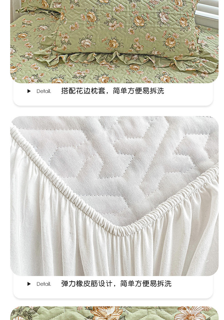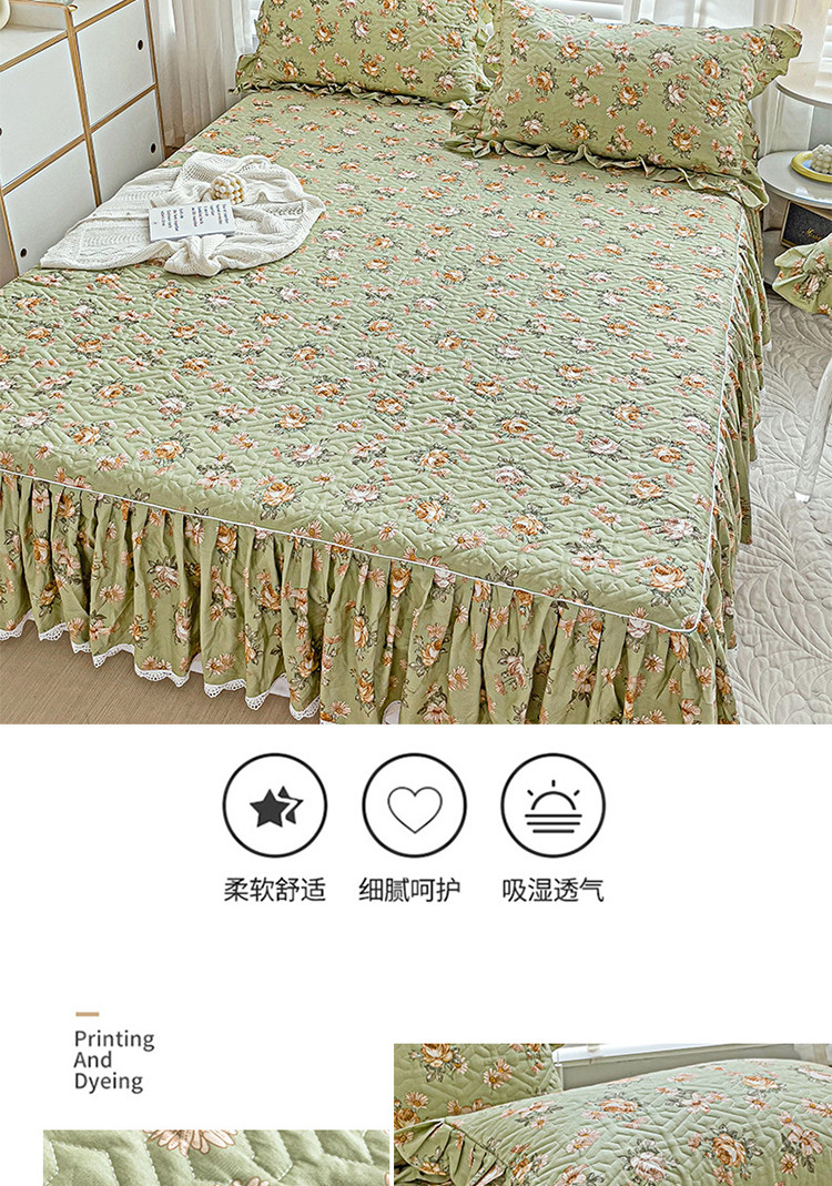 • 91家纺网 家纺一手货源 找家纺 罗艺轩 2024新款全棉花边床笠式夹棉床裙三件套波塞尔庄园花枝雅韵