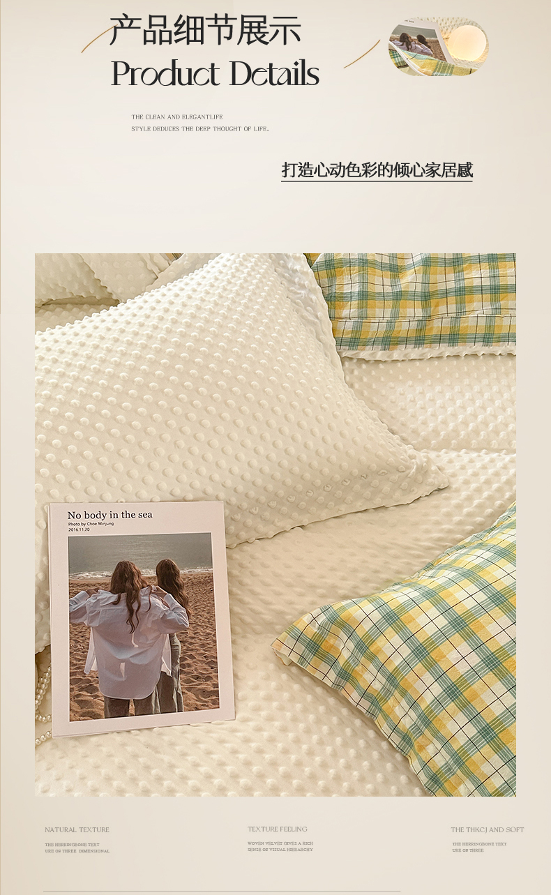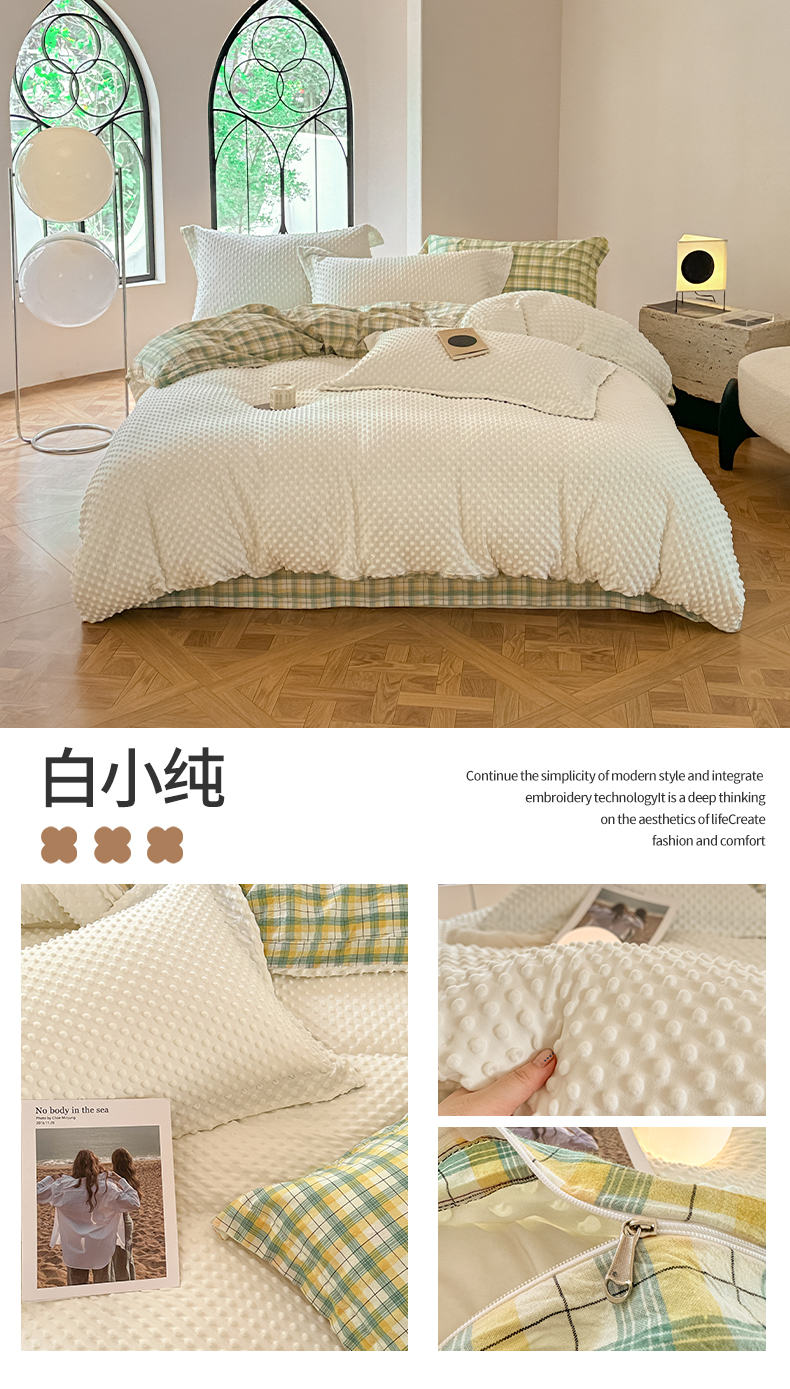 商品名称:换种生活 新款水洗色织全棉四件套 白小纯