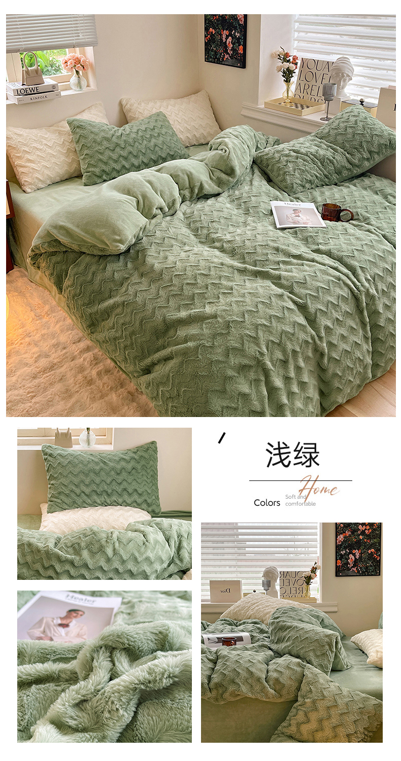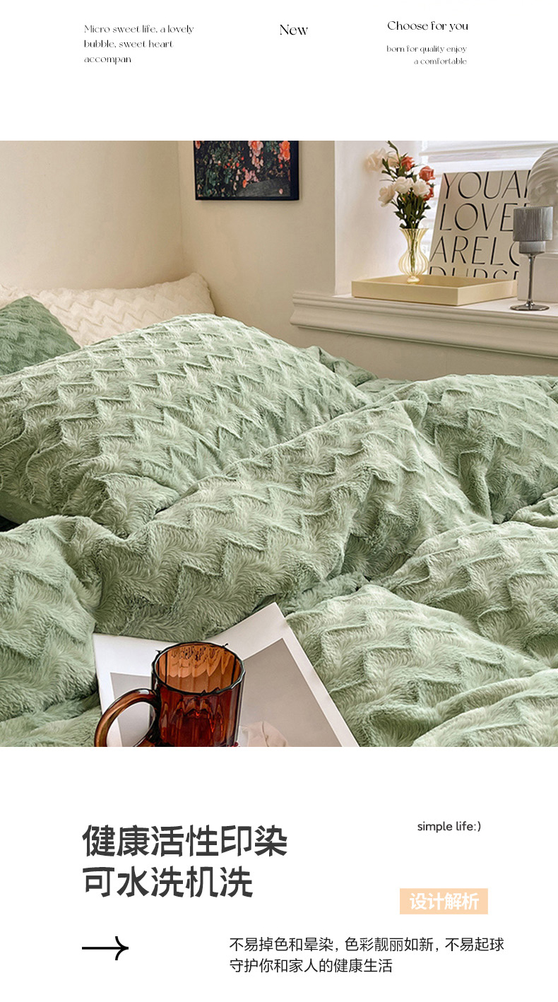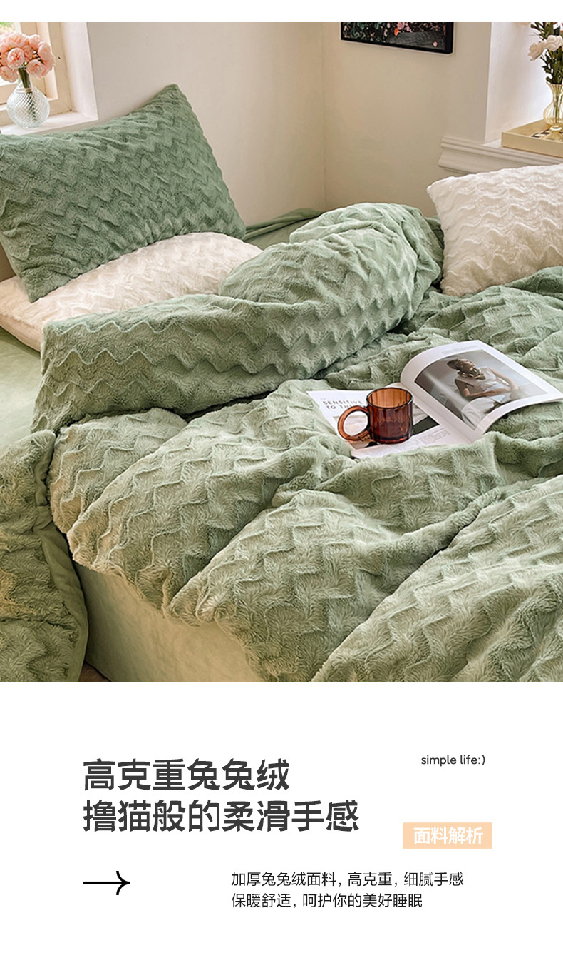 商品名称:七七 2025新款兔兔绒兔毛绒四件套 浅绿