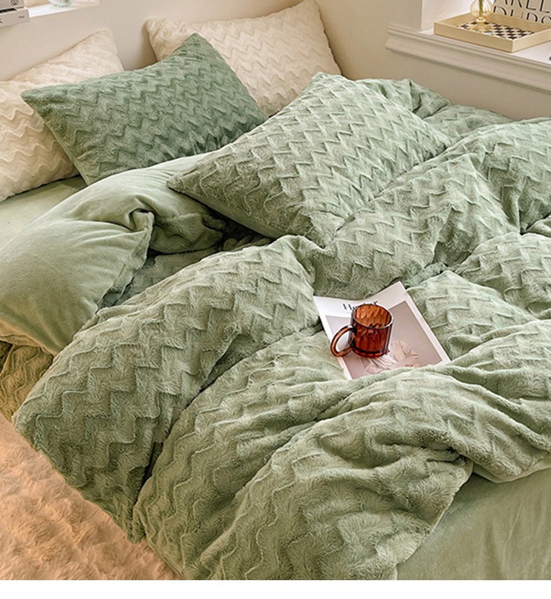 七七 2025新款兔兔绒兔毛绒四件套 浅绿
