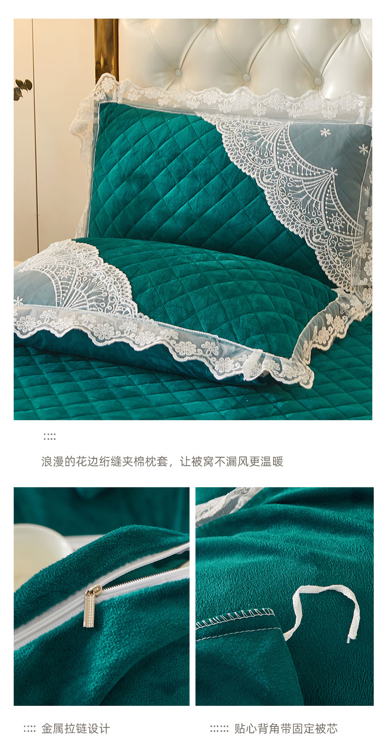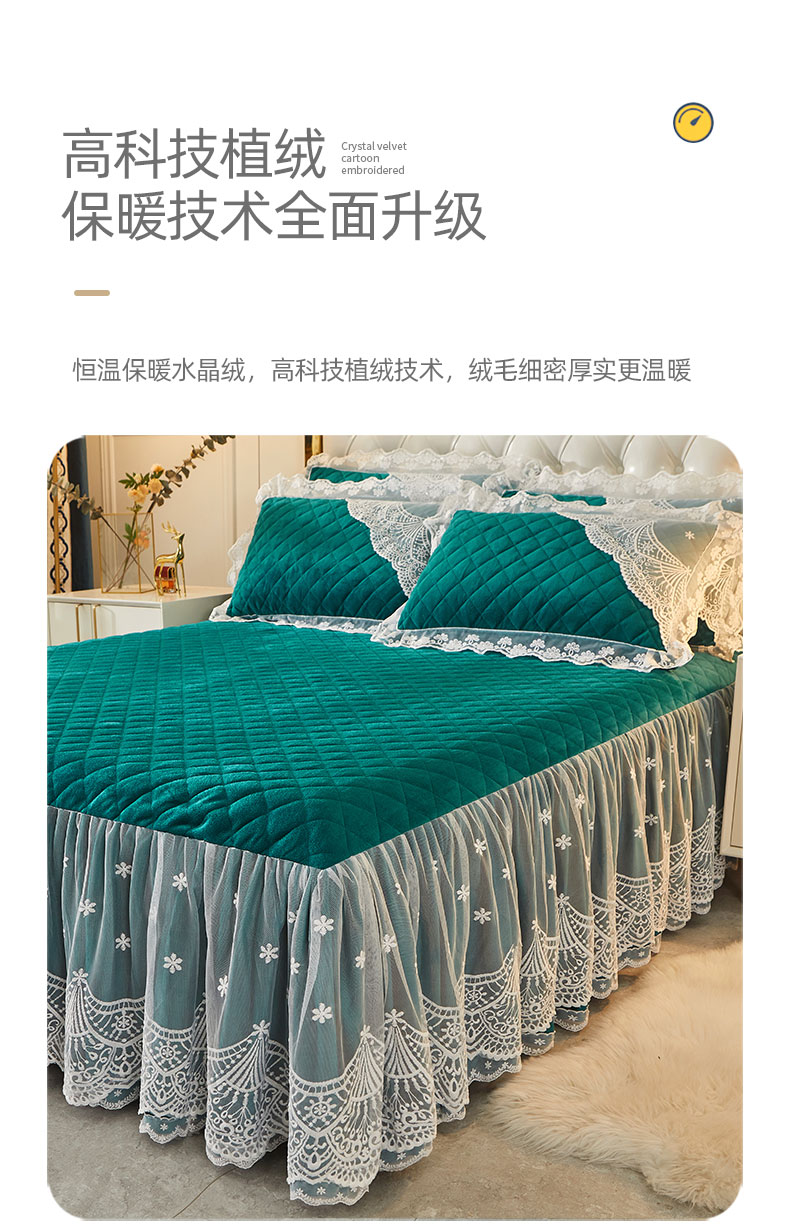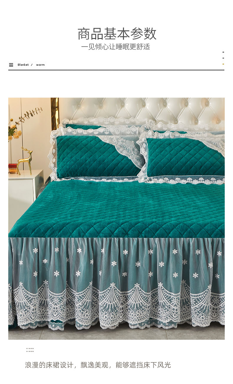 当前位置: 91家纺网 > 商品网购 > 床品套件 > 四件套 > 全棉普通四件套 > 2023新款水晶绒保暖床裙四件套爱妮系列 宝石绿