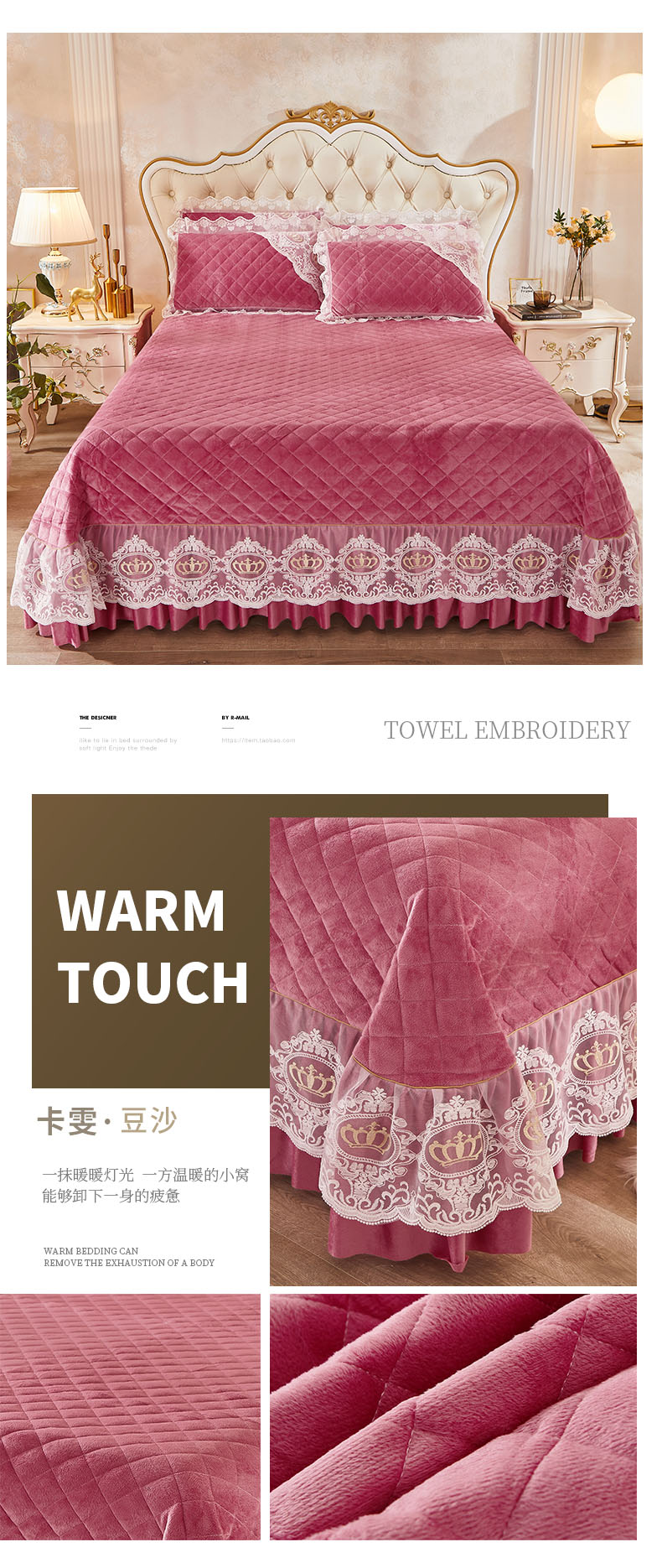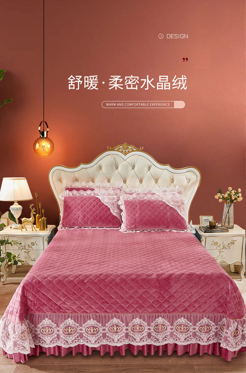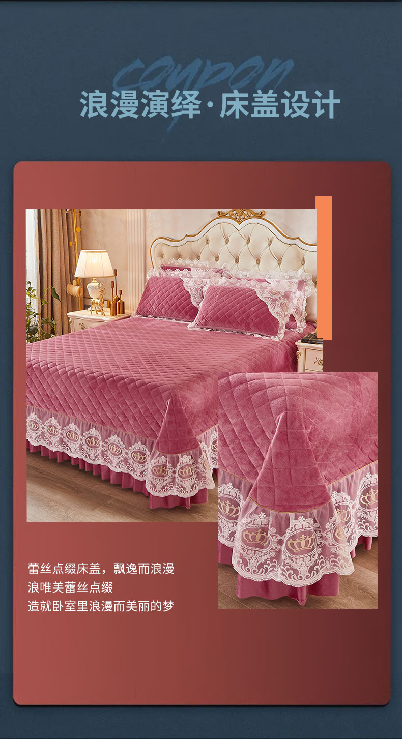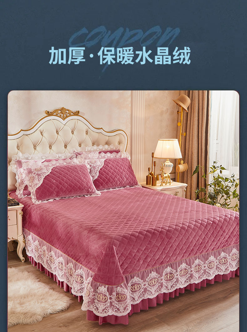 商品名称:恋尚 2023新款可脱卸水晶绒夹棉床盖卡雯系列 豆沙