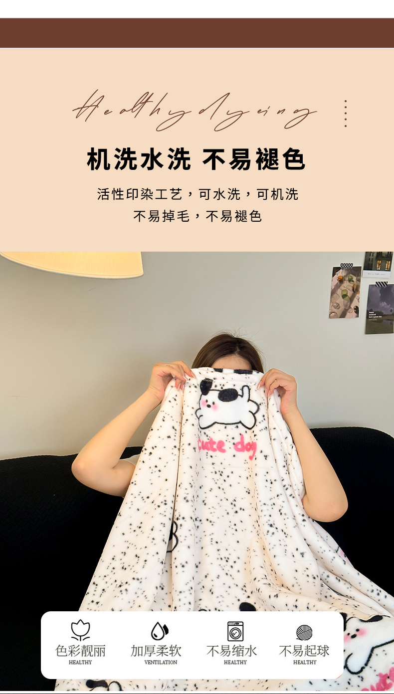商品名称:桃喜2024新款双面牛奶绒毛毯 可爱修狗