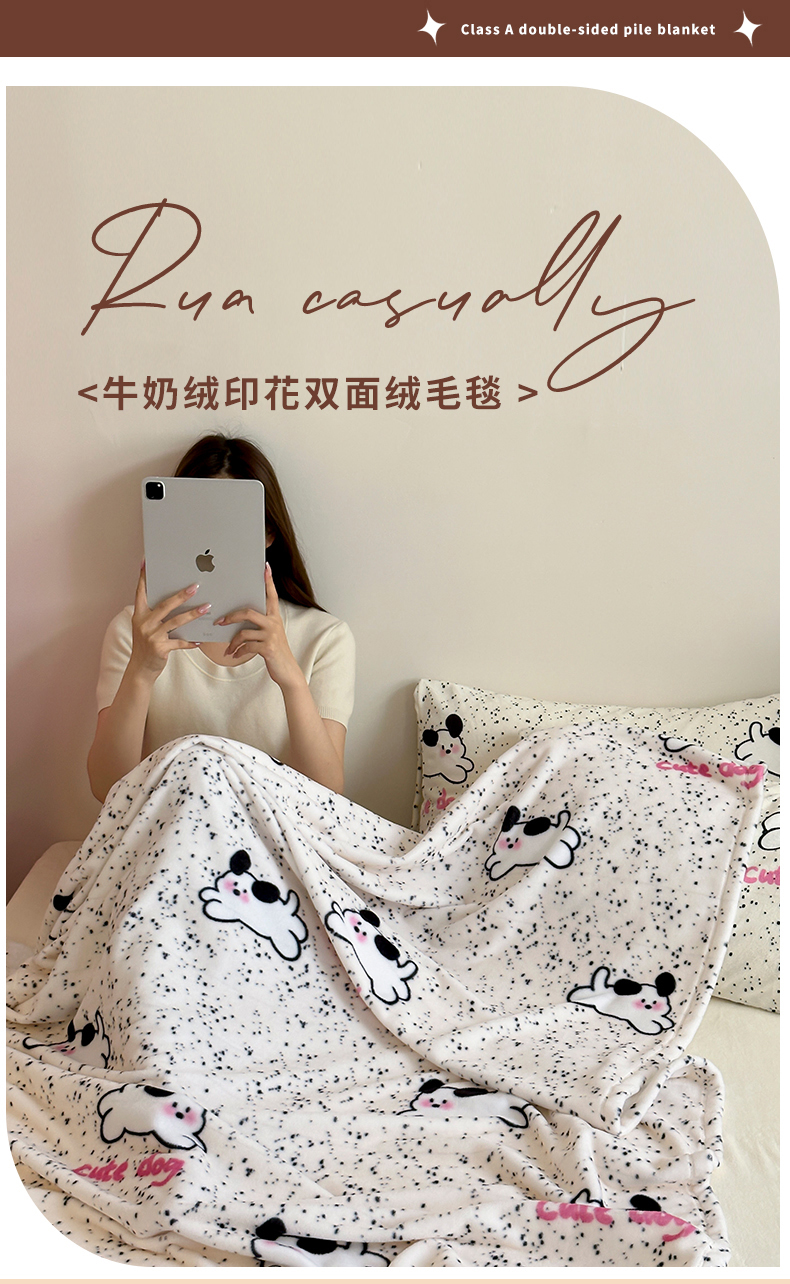 桃喜2024新款双面牛奶绒毛毯 可爱修狗