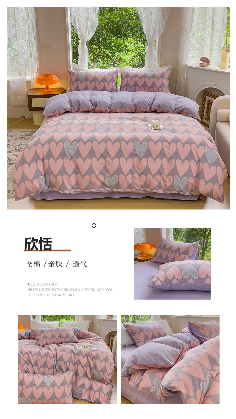 (总)感遇家纺2025新款全棉双层纱纤柔四件套,格子爱心蓝,花开半夏,滑板小狗,七彩虹,少女甜心,晚香玉,小美好,心心相印,樱桃,叠拍图仅供参考