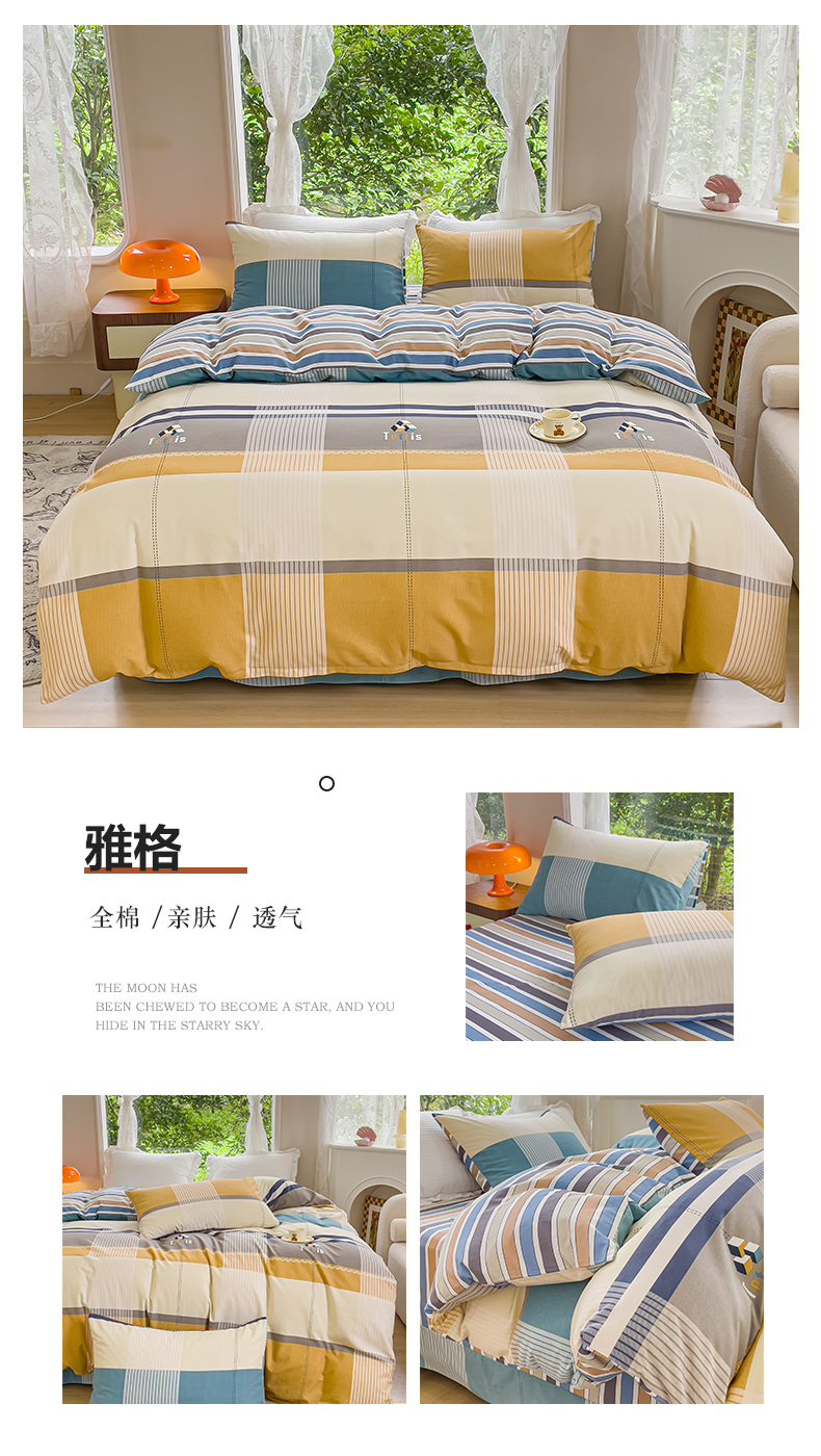 (总)感遇家纺 2022新款全棉印花四件套,格子小花,黑格恐龙,蓝色心情,浅暖