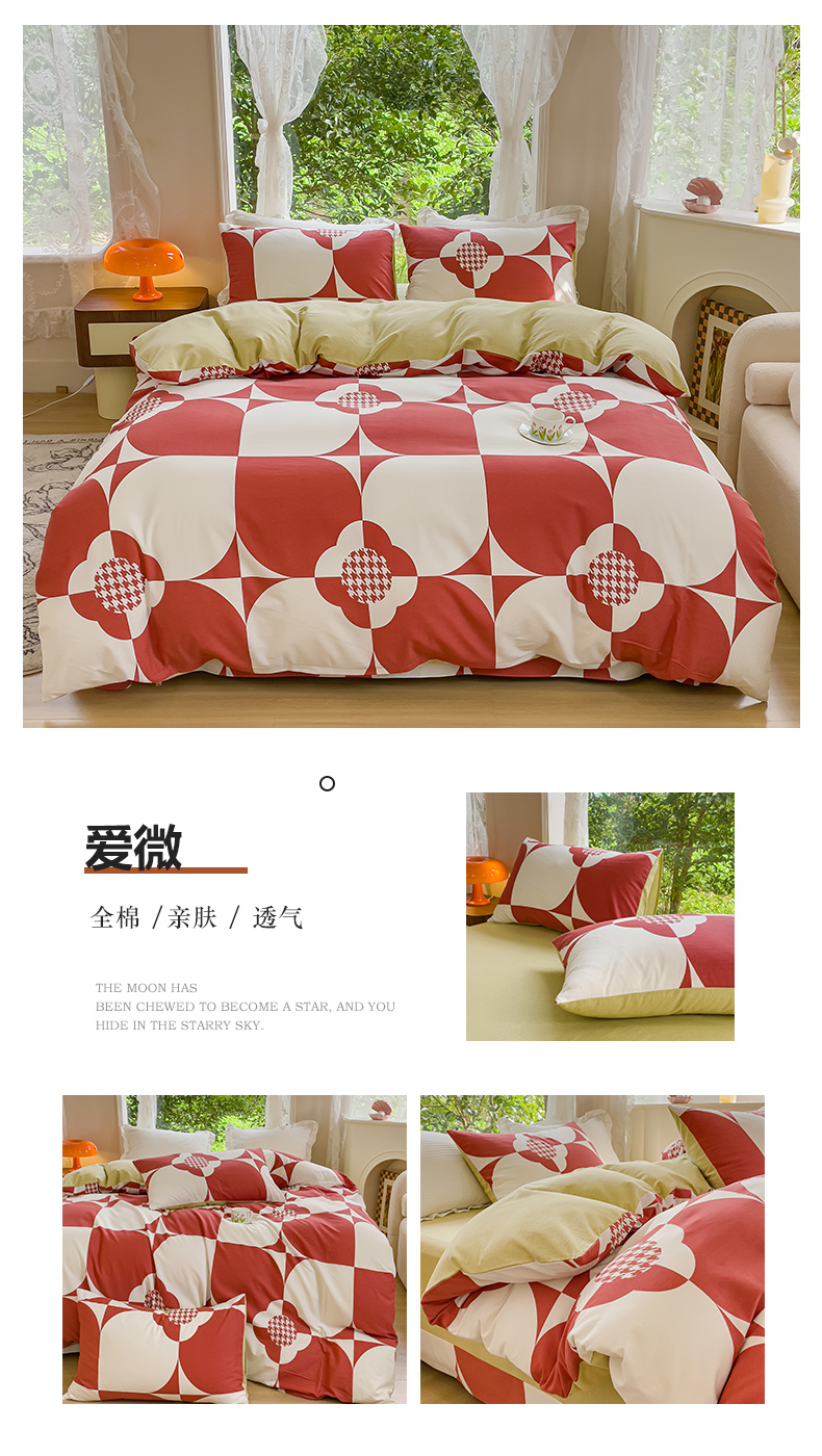 (总)感遇家纺 2025新款小清新甜系全棉四件套,百丽兔,波点小女孩,点点小狗,复古樱桃,格子草莓,格子樱桃,花间牧歌,灰条猫咪,奶绿,宁夏,森林小熊猫,甜心波点