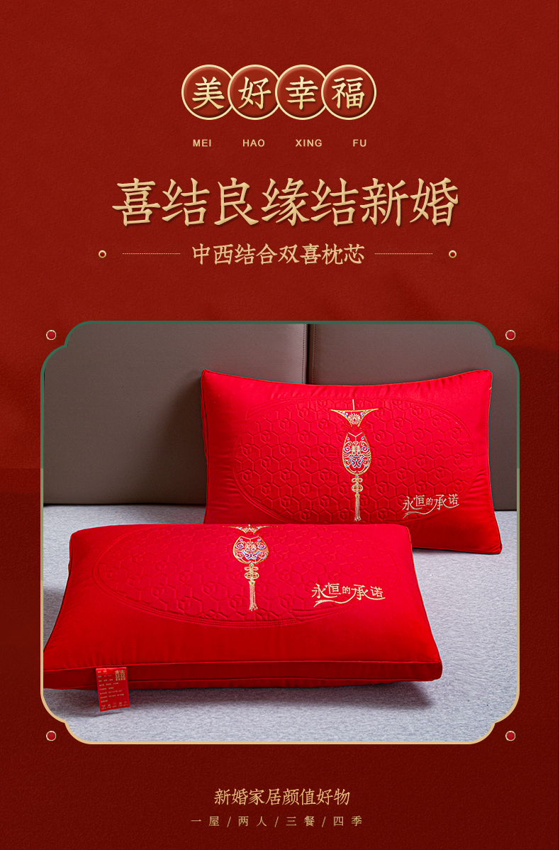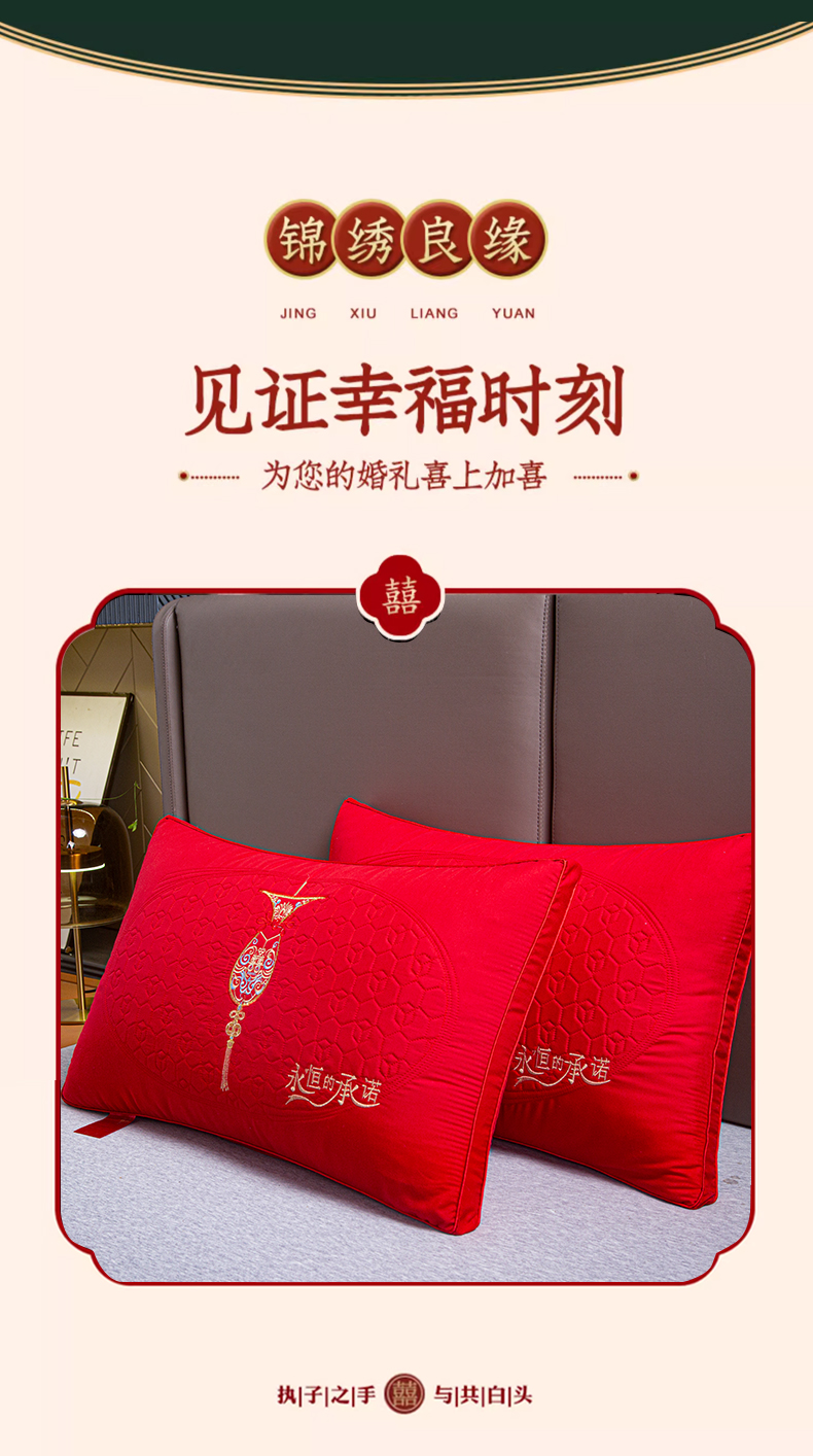 当前位置: 91家纺网 > 商品网购 > 枕头/枕芯/保健枕/颈椎枕 > 普通枕芯 > 芯宜佳 2023新款全棉婚庆枕系列 永恒的承诺
