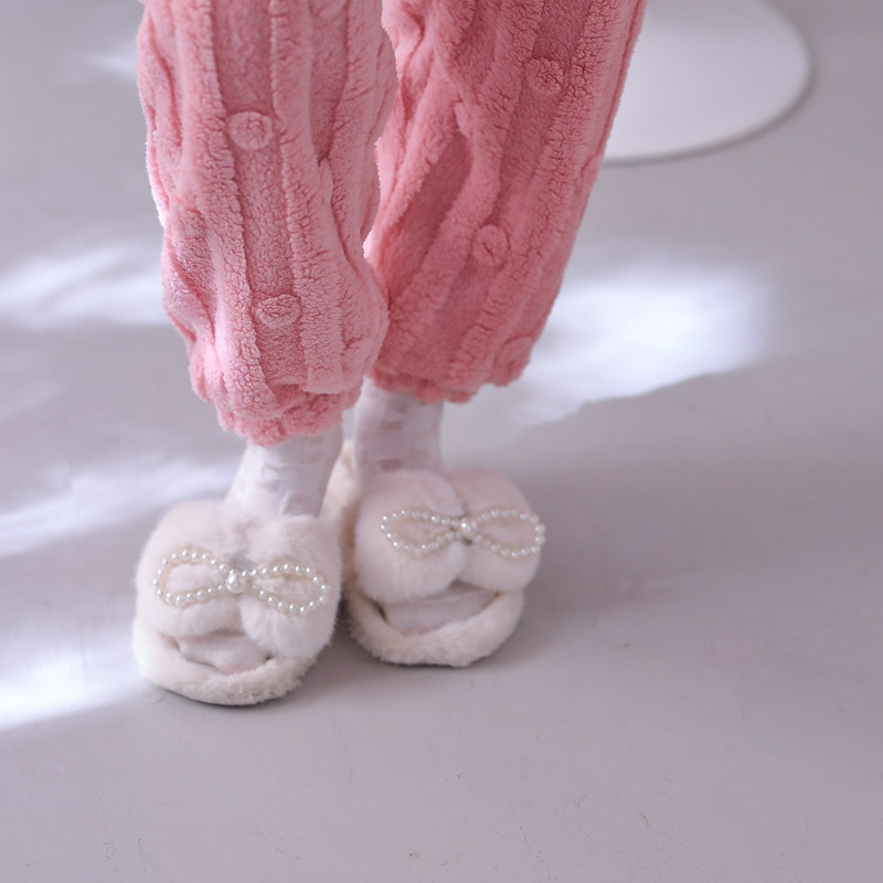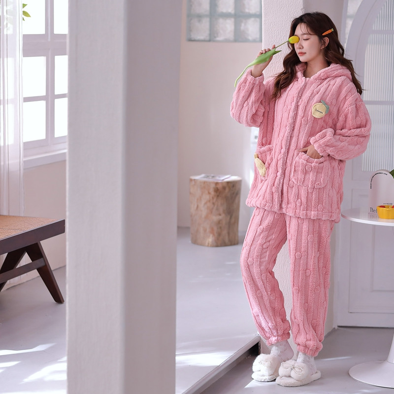(总)洛兰沙家居馆 2024新款清新睡衣女秋冬三层夹棉珊瑚绒加厚保暖两件套女士可外穿加绒家居服,粉色,灰色,白色,玉色