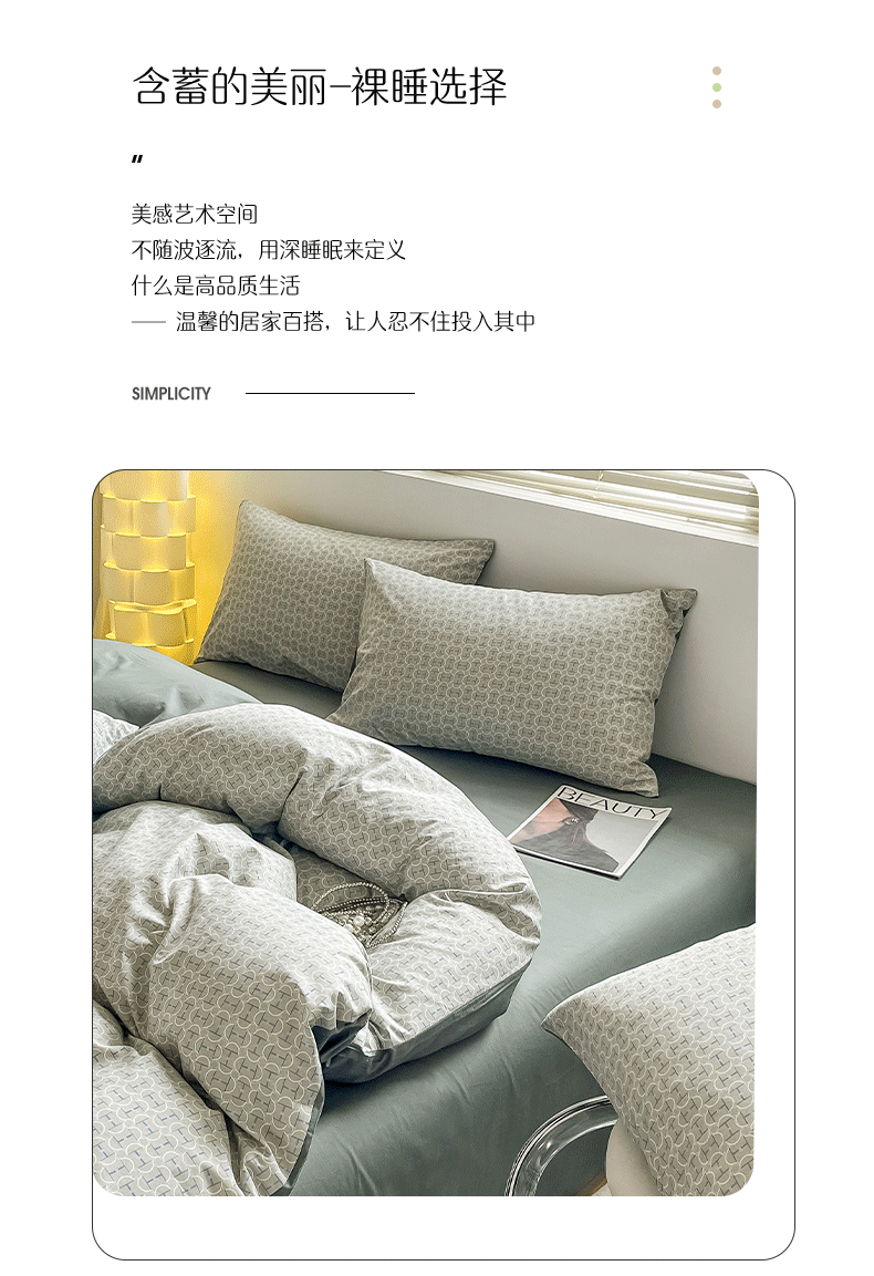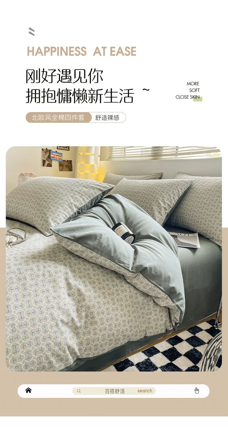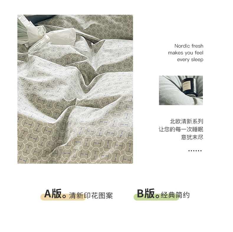 商品名称:小懒猪 2024新款春夏全棉北欧简约风系列四件套-风格三 尼特