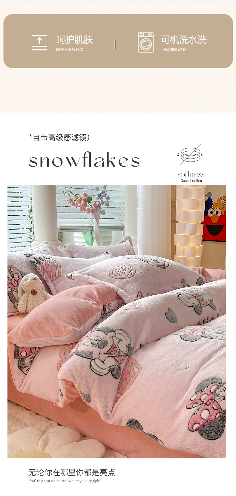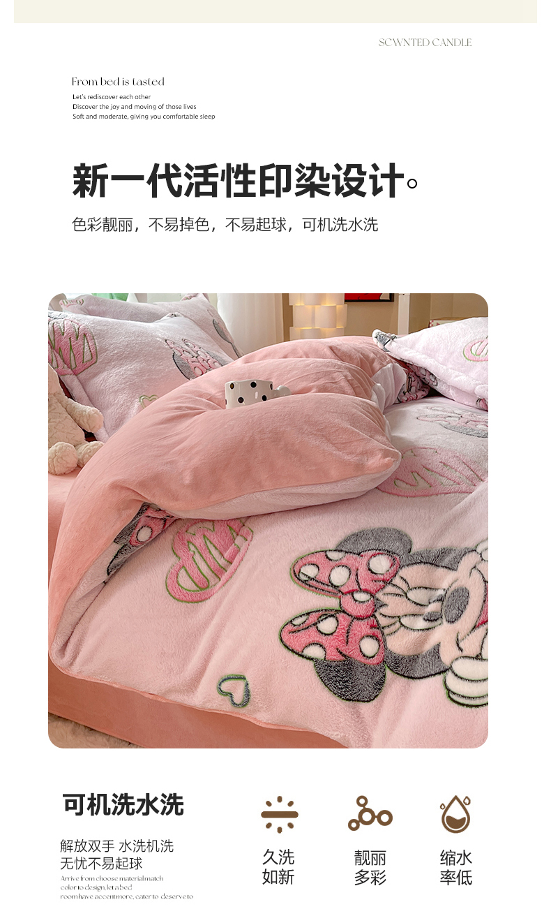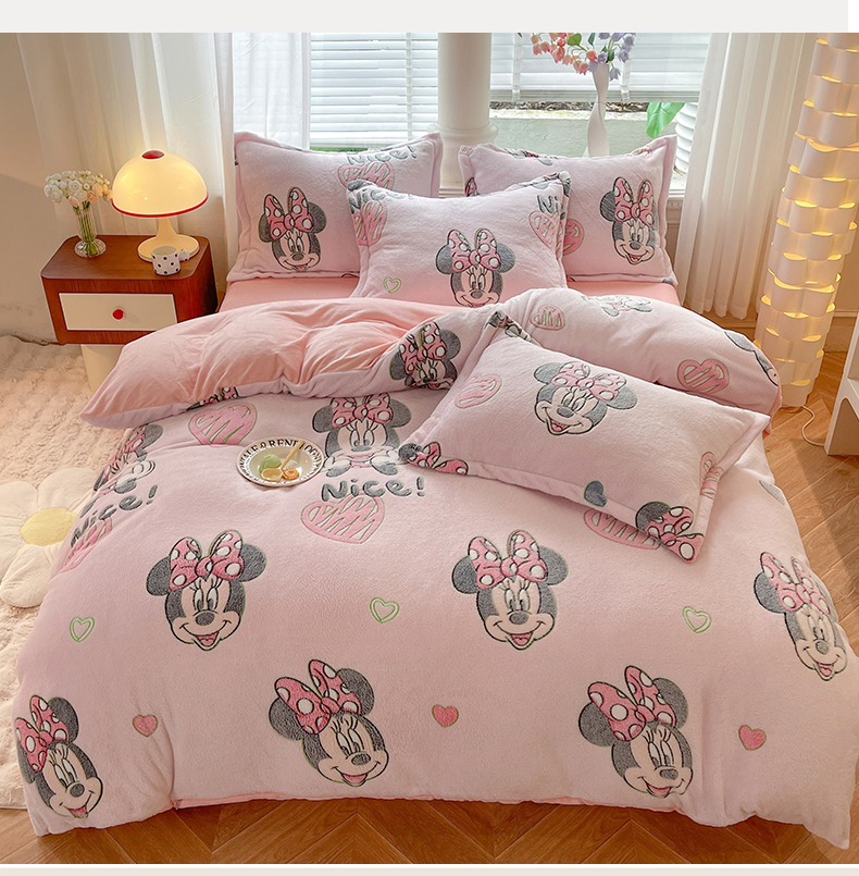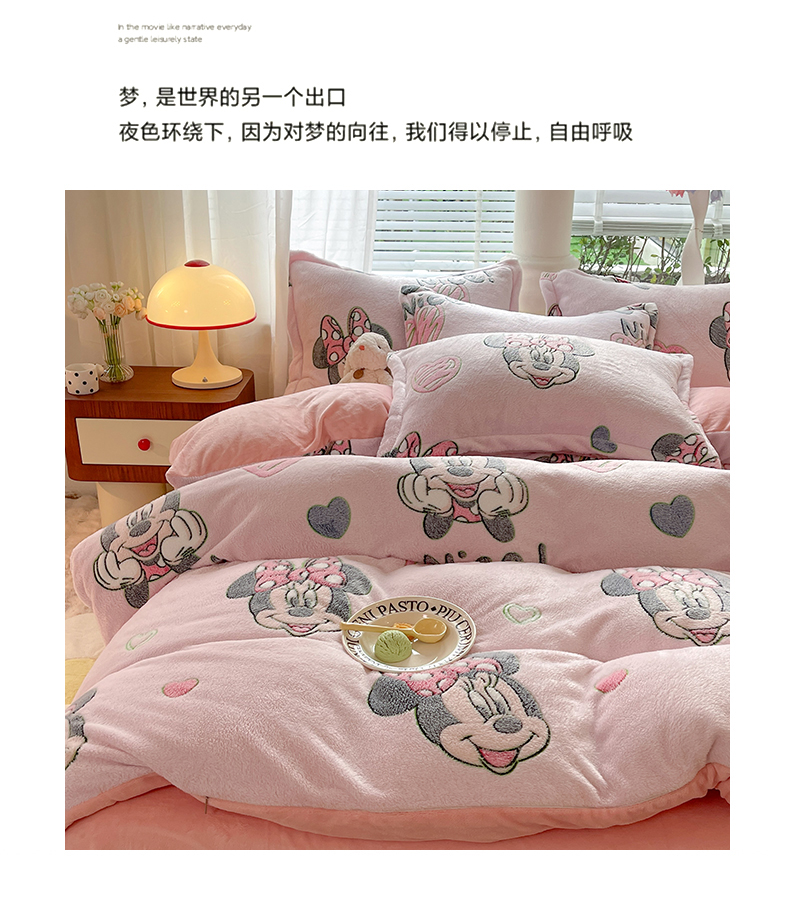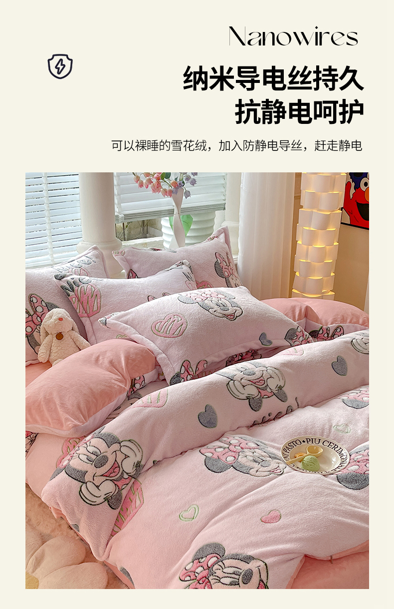 当前位置: 91家纺网 > 商品网购 > 床品套件 > 四件套 > 全棉普通四件套 > 妖妖家纺 2023新款妖妖雪花绒单品三四件套 甜心米妮