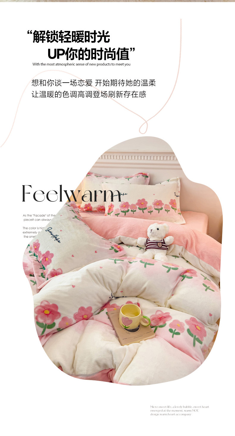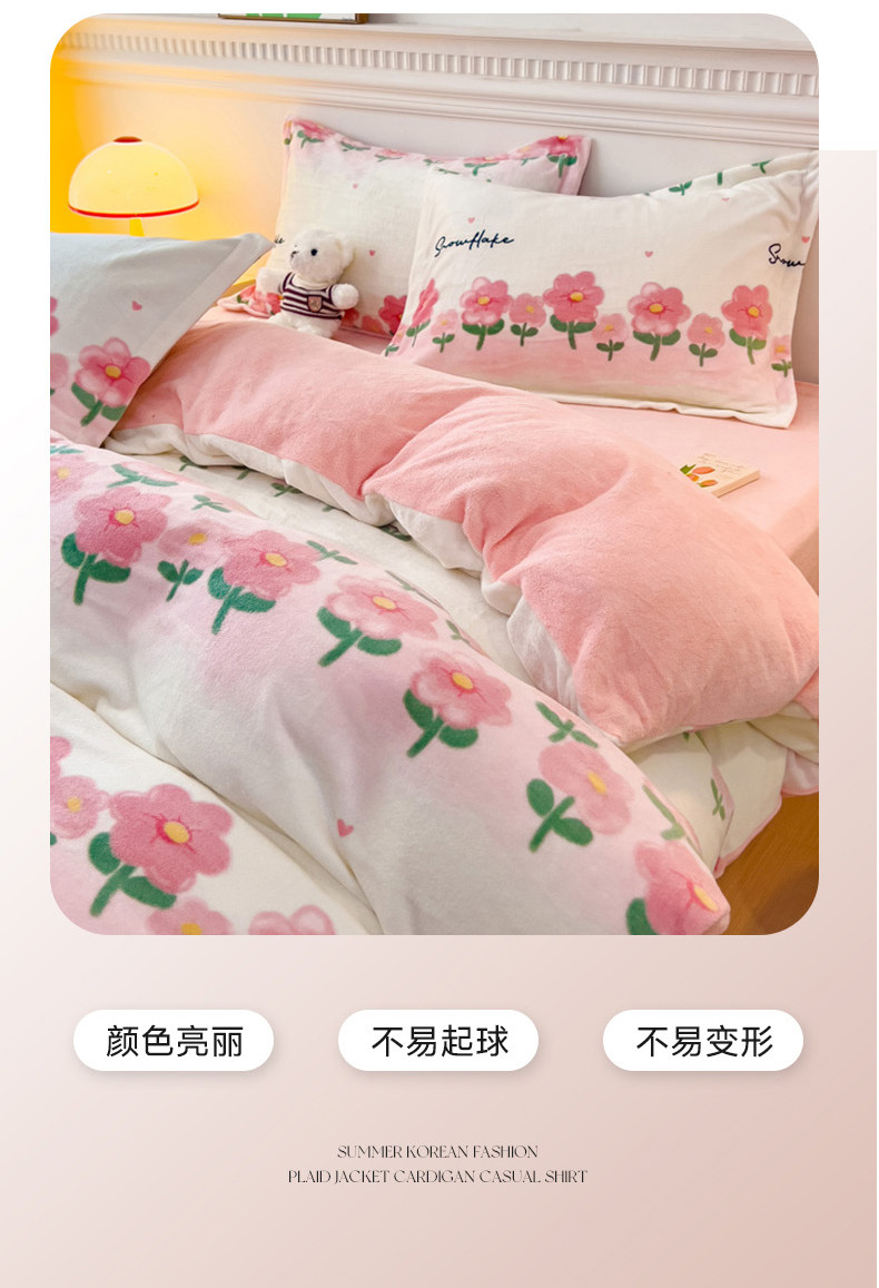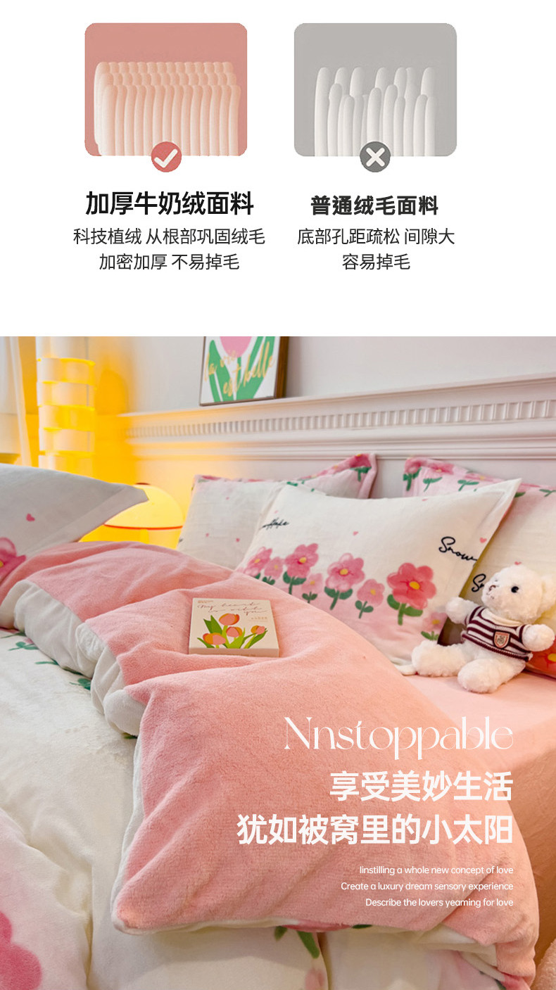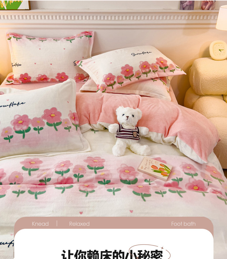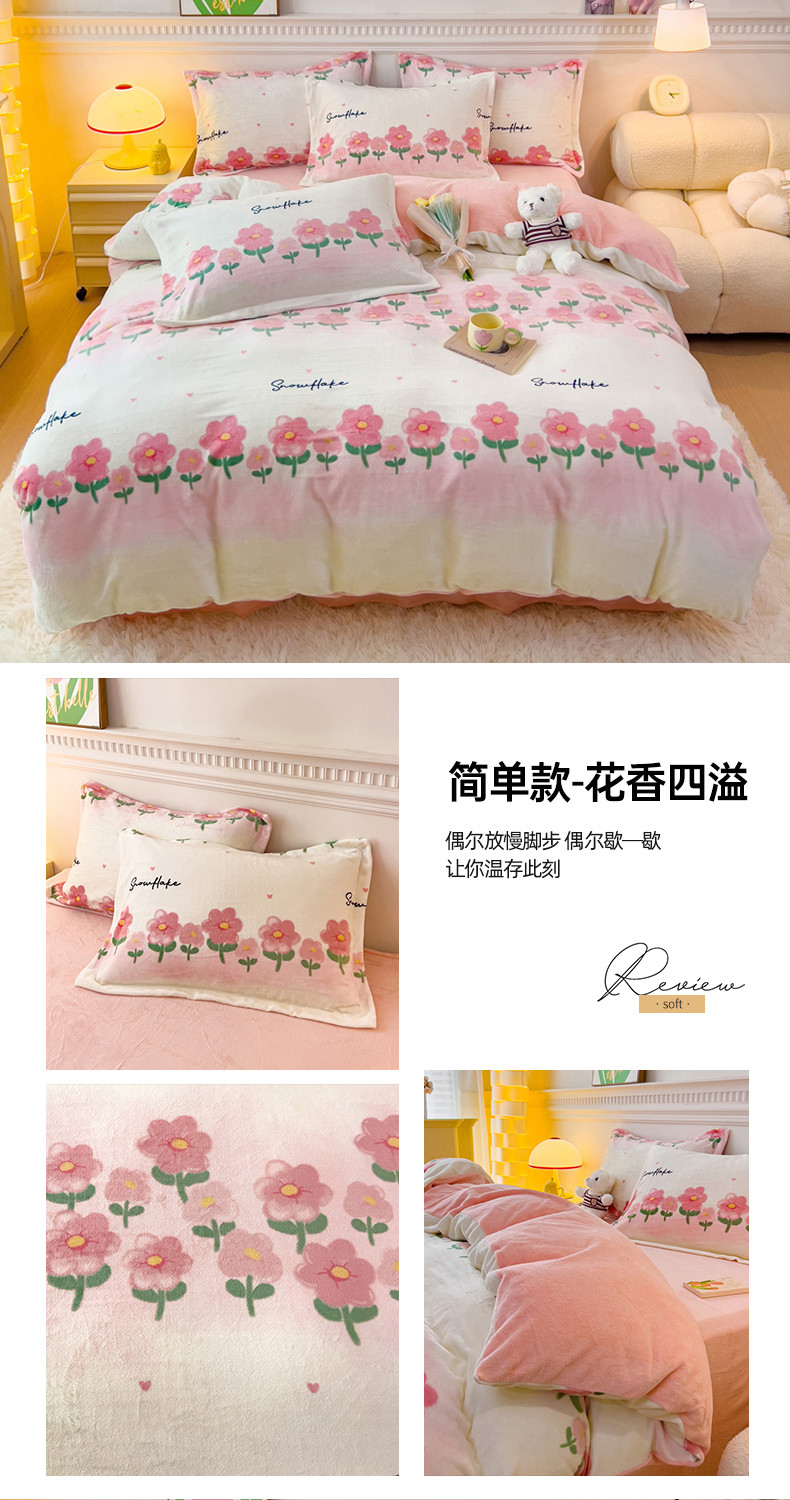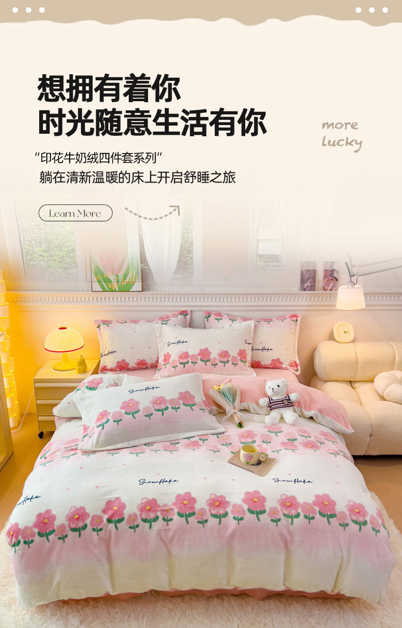 商品名称:宜家坊 2023新款小清新加厚印花牛奶绒四件套 简单款-花香四溢