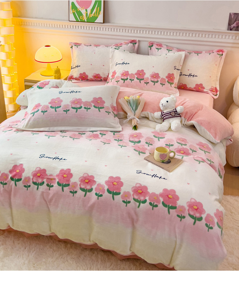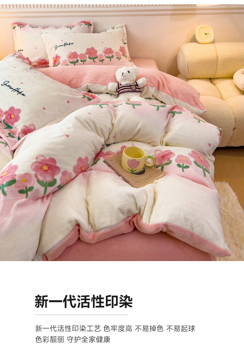 宜家坊 2023新款小清新加厚印花牛奶绒四件套 简单款-花香四溢