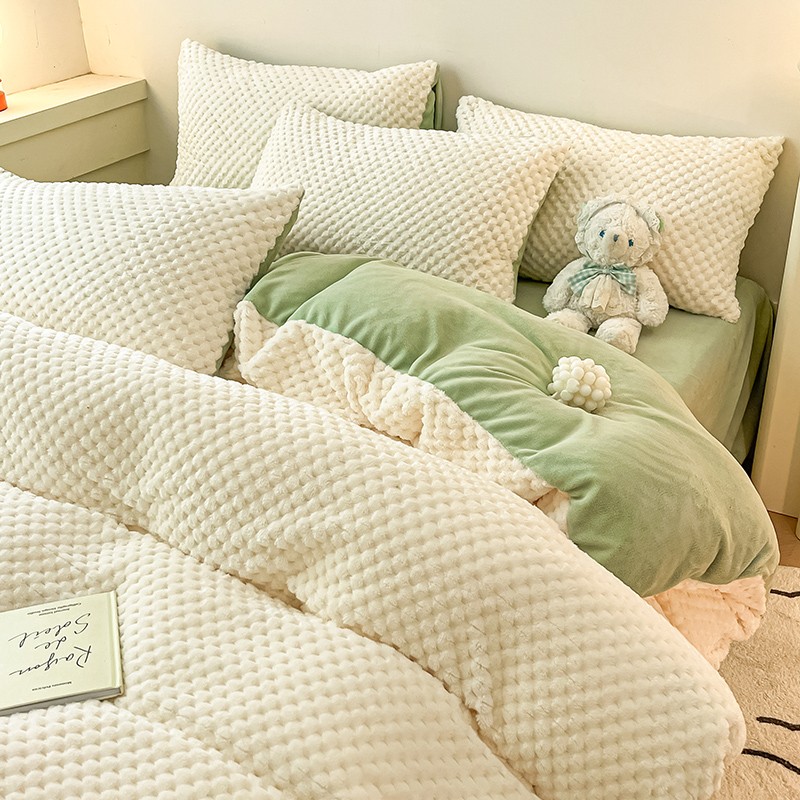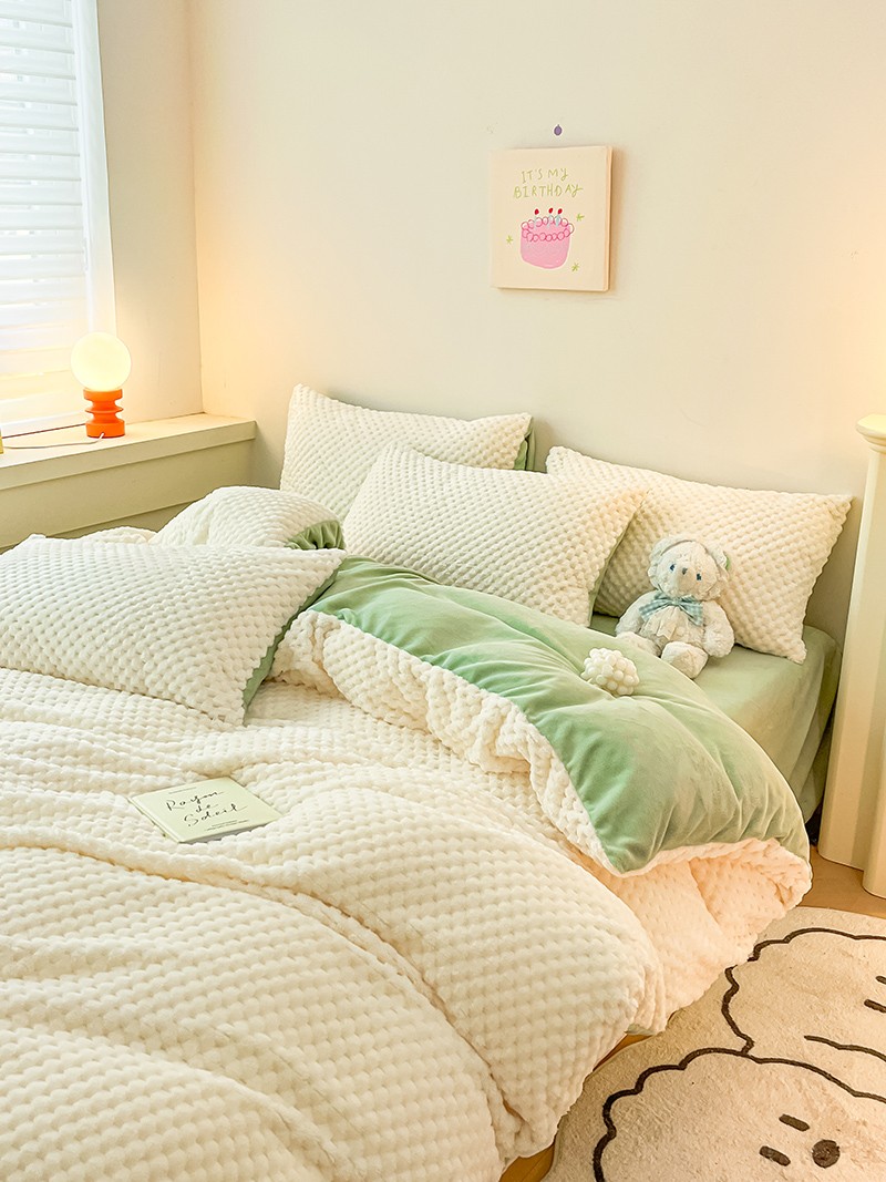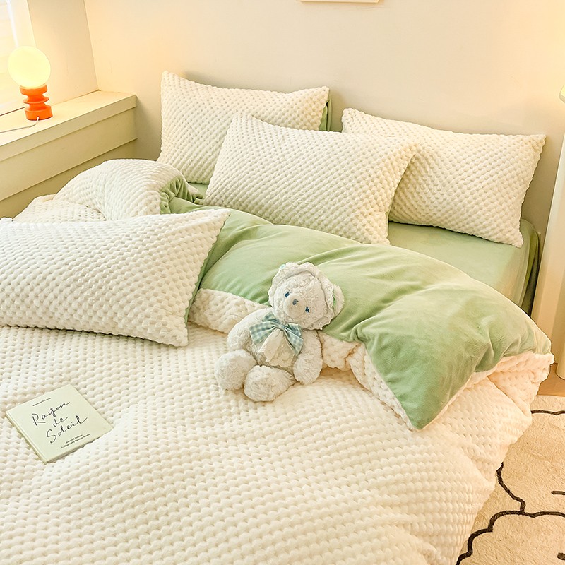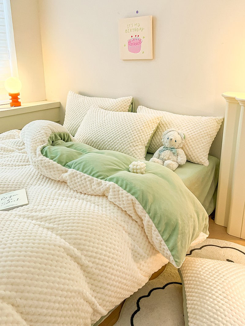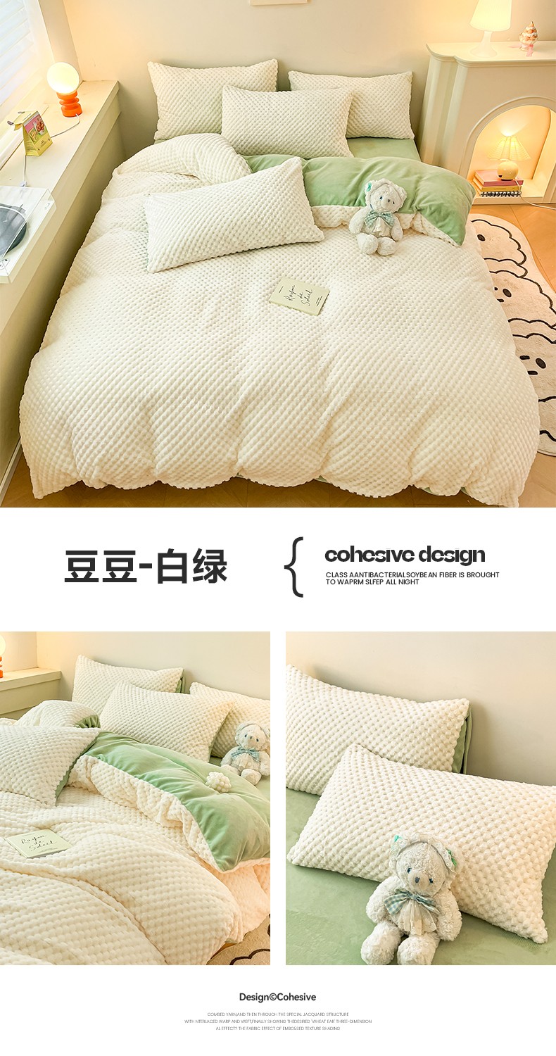 商品名称:澳梵家居 2023新款印花豆豆绒牛奶绒四件套 豆豆-白绿