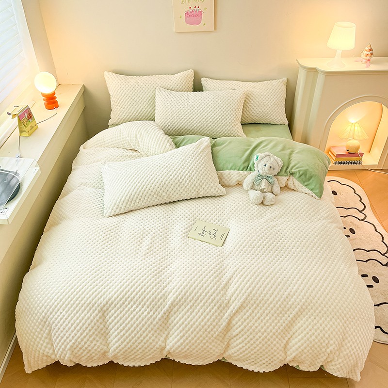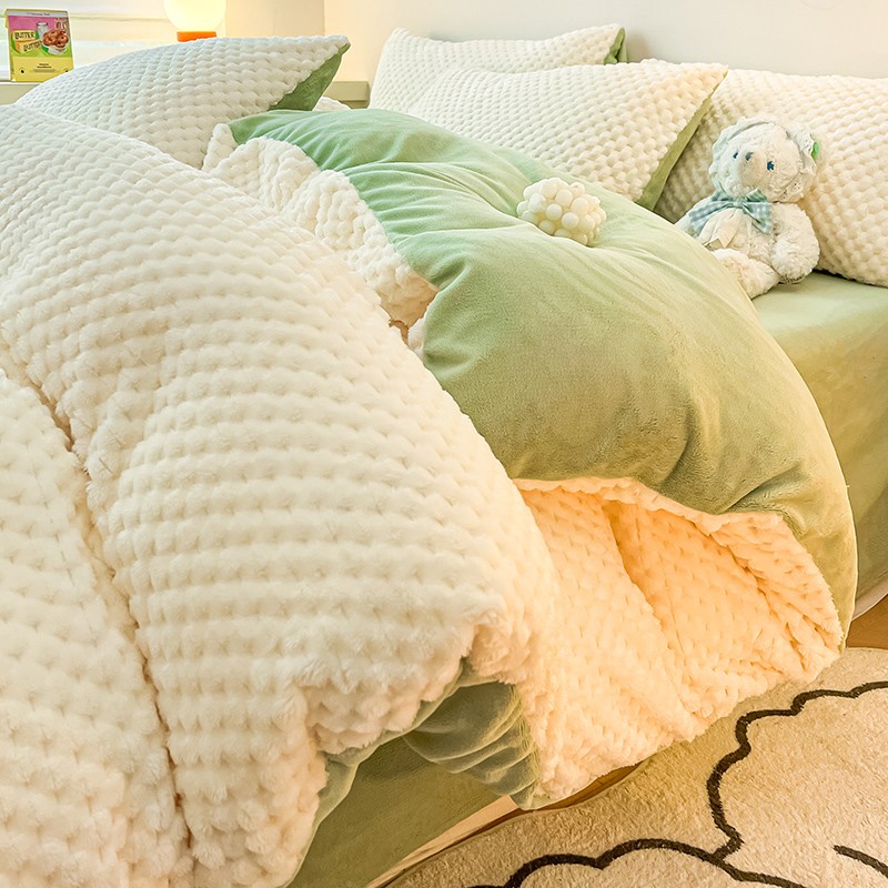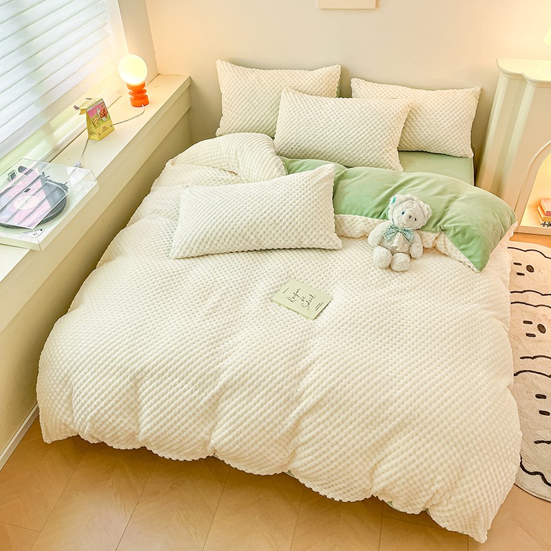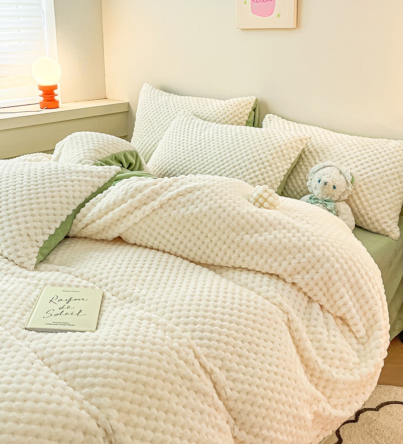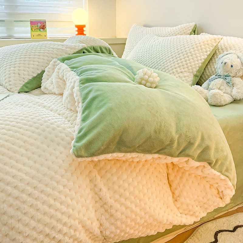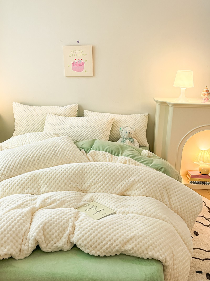 商品名称:澳梵家居 2023新款印花豆豆绒牛奶绒四件套 豆豆-白绿