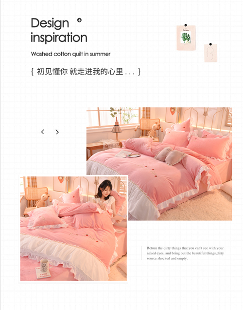 商品名称:2023新款公主风倾城牛奶绒四件套 倾城-粉色