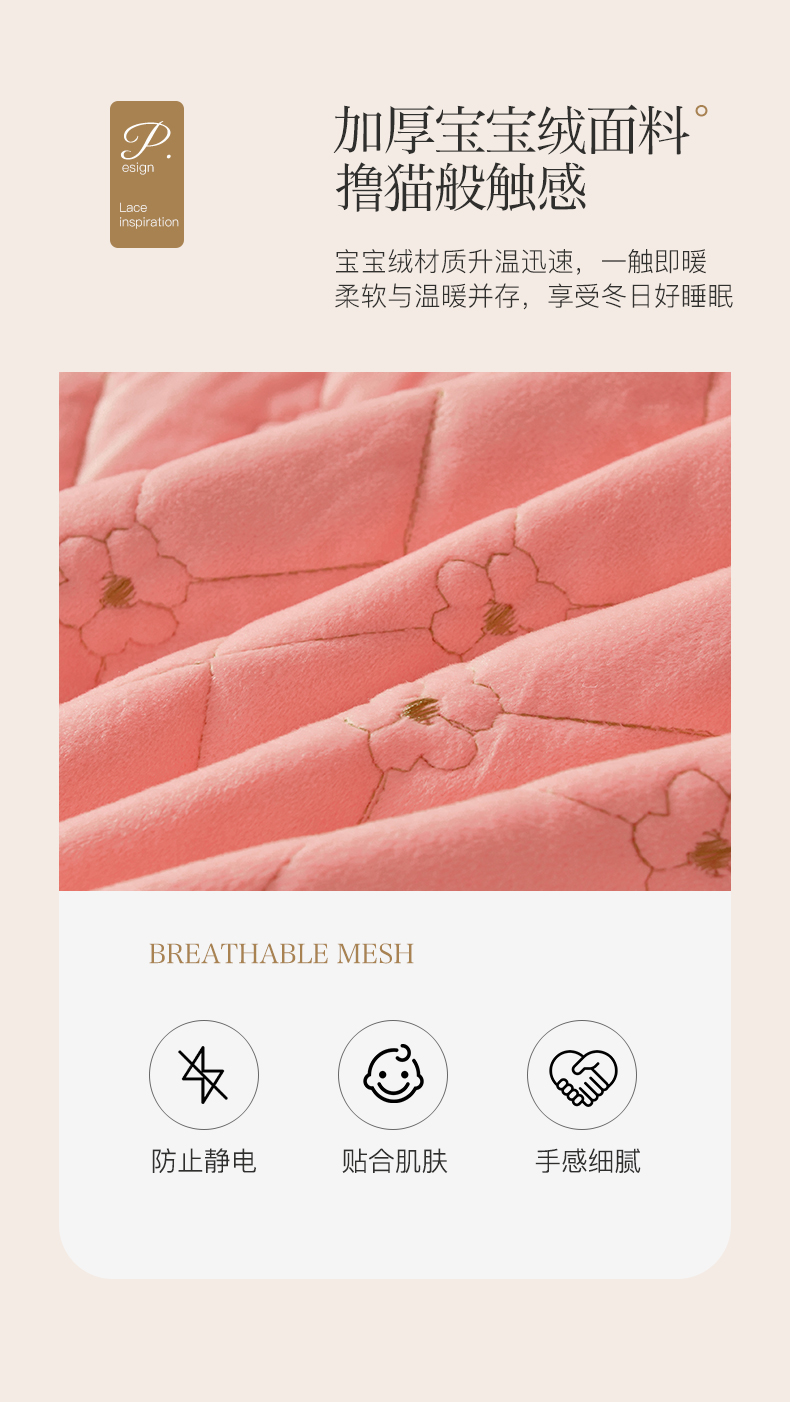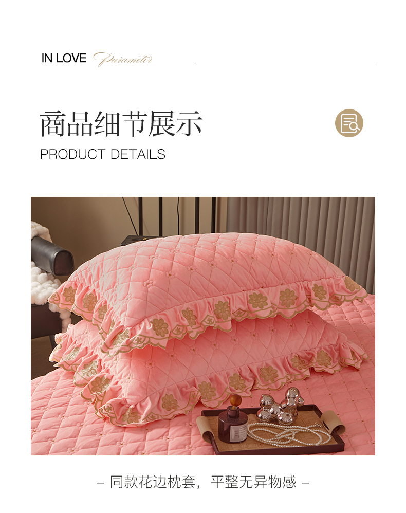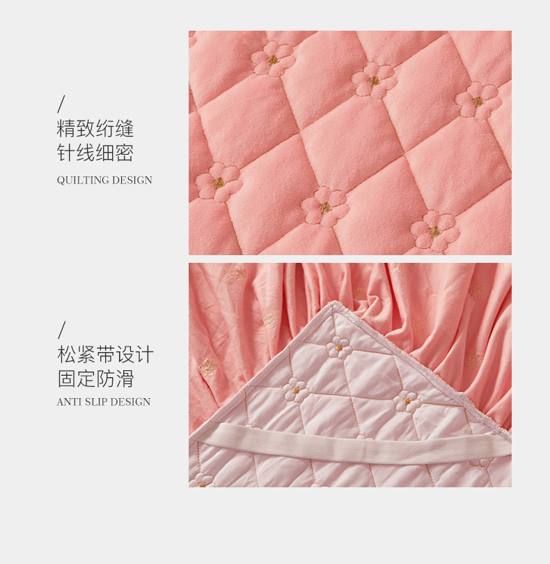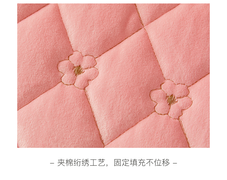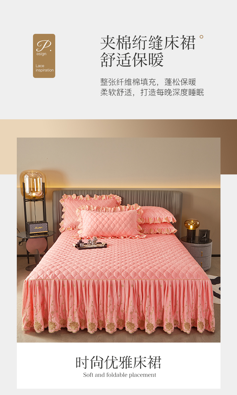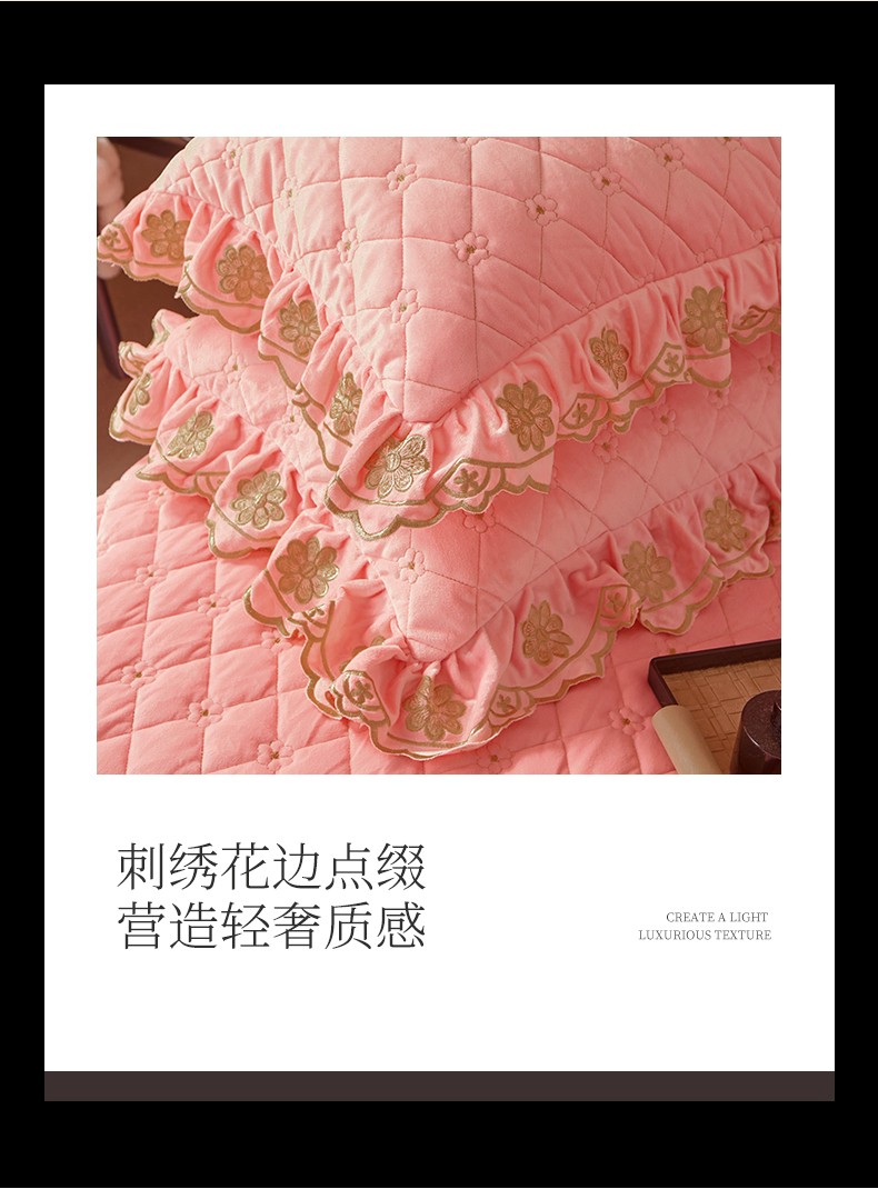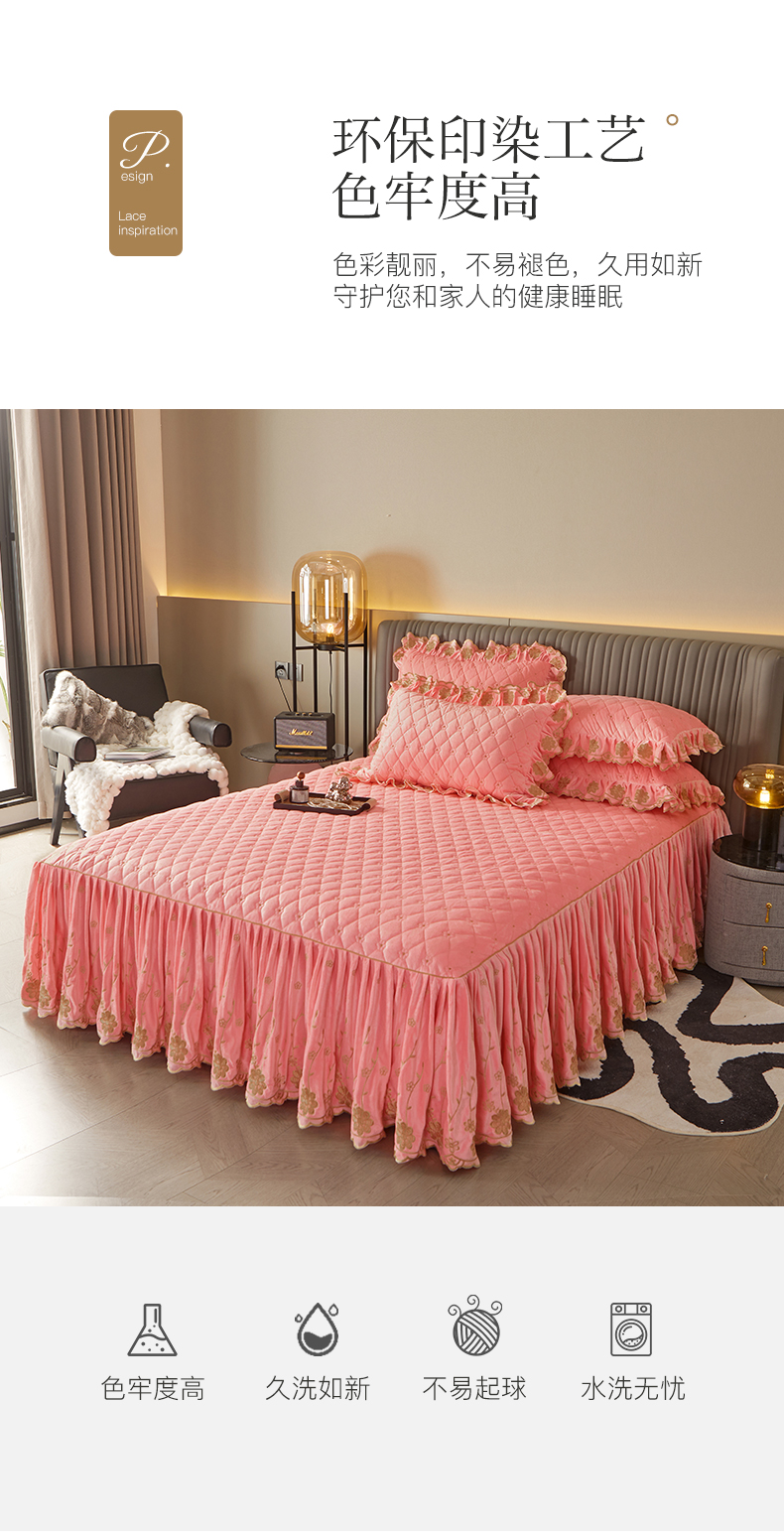 商品名称:罗艺轩 2024新款花季宝宝绒全套夹棉絎缝加厚系列床裙三件套 樱花粉