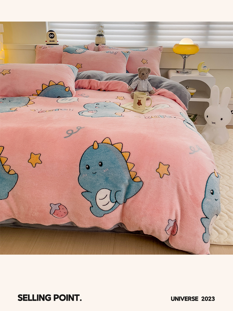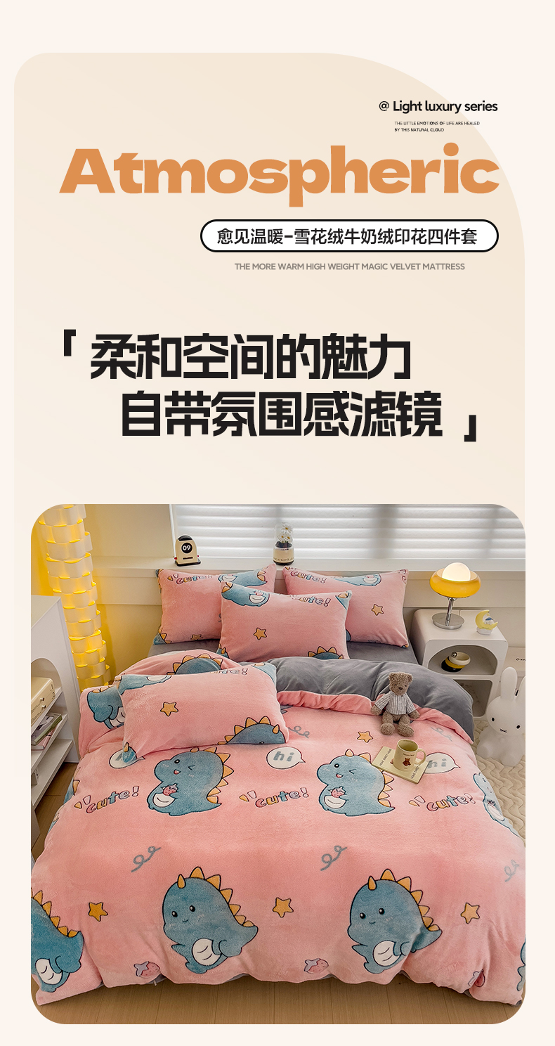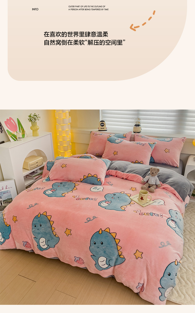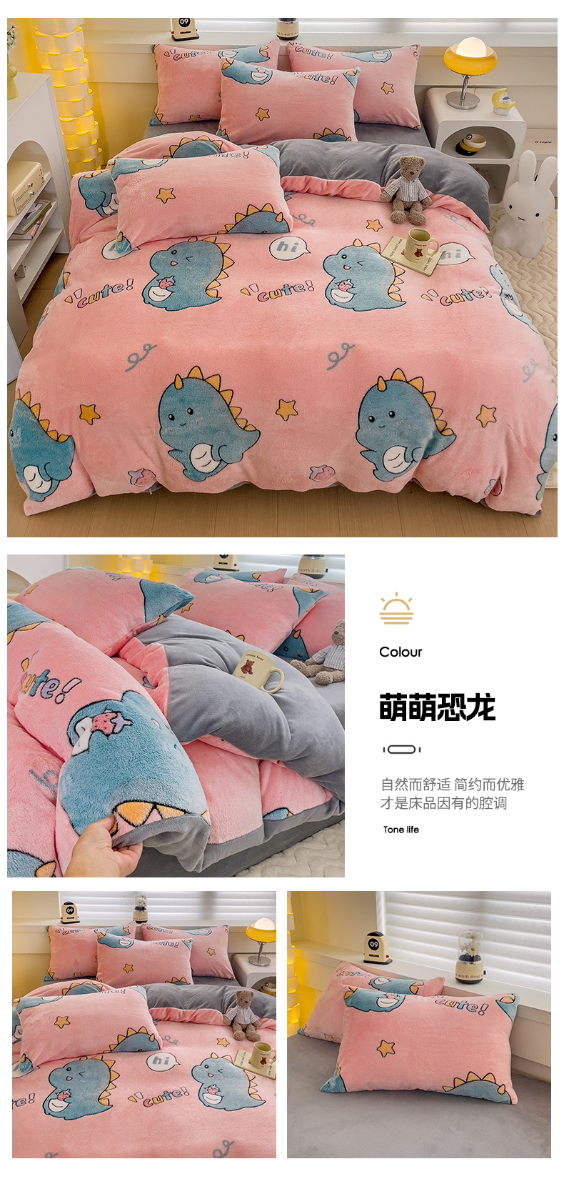 当前位置: 91家纺网 > 商品网购 > 床品套件 > 四件套 > 牛奶绒四件套 > 逸尚阁 2023新款雪花绒牛奶绒印花四件套(包含买家秀) 萌萌恐龙